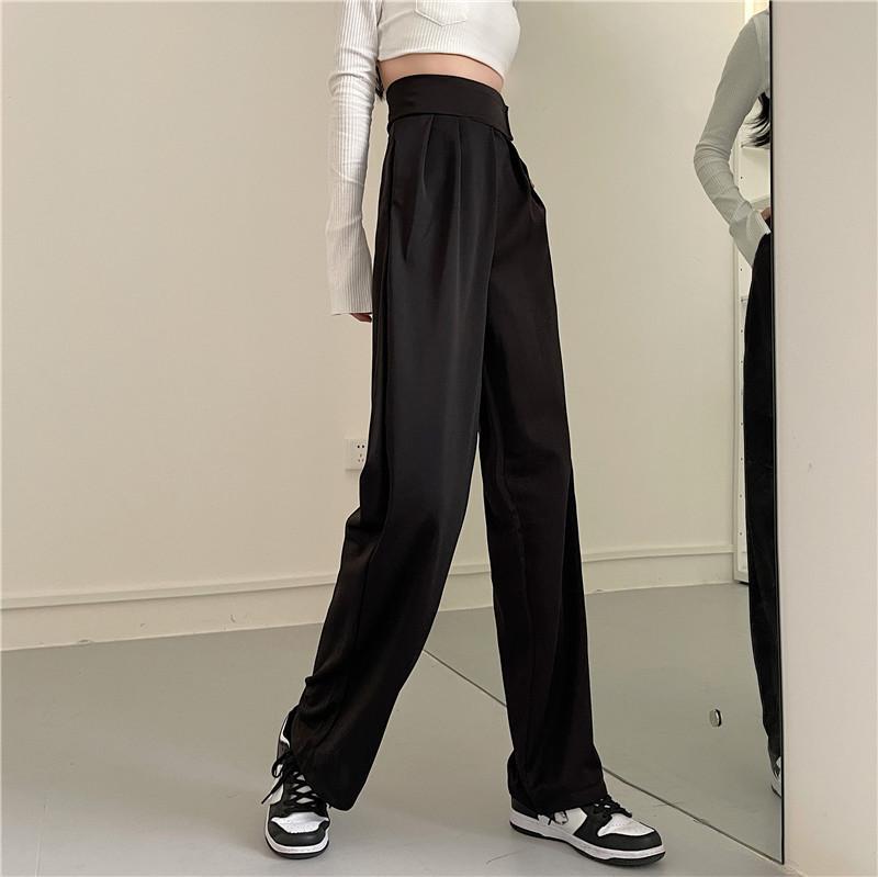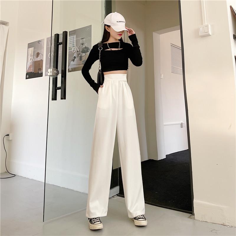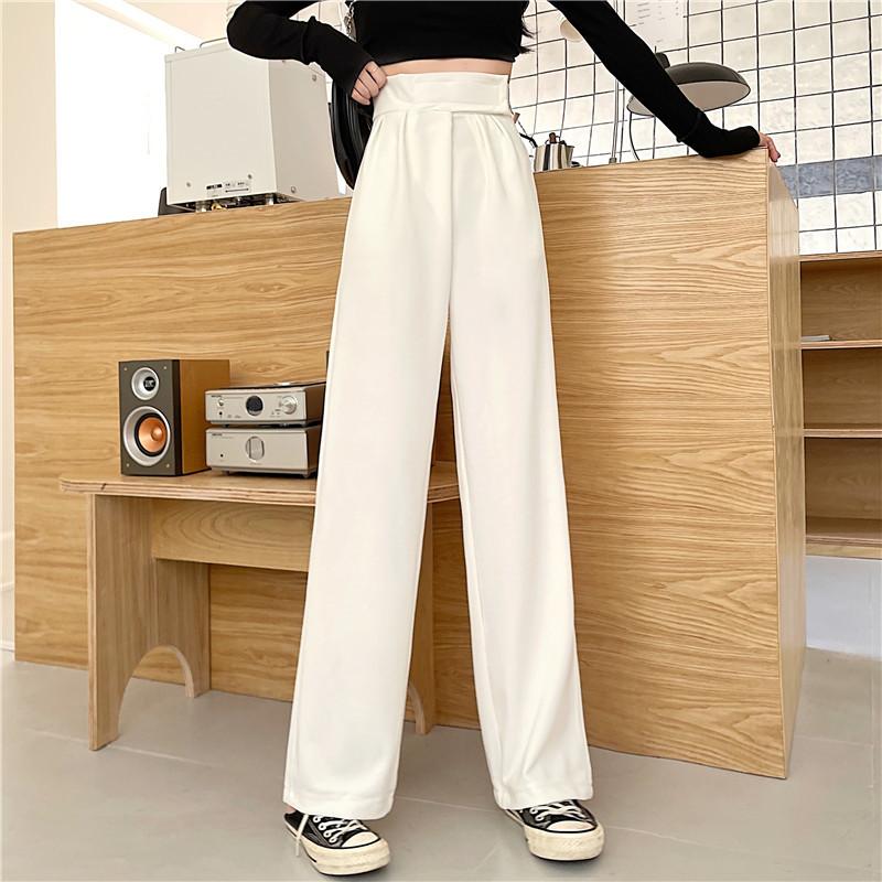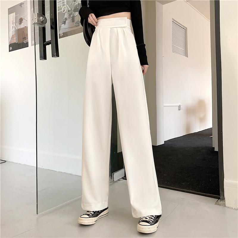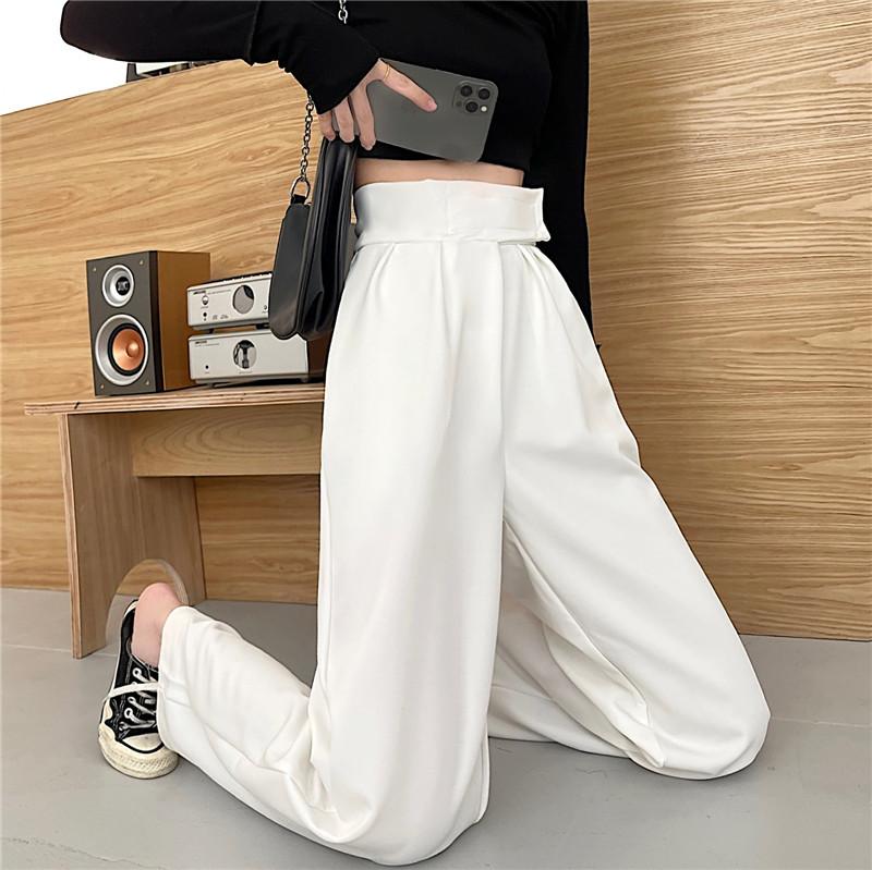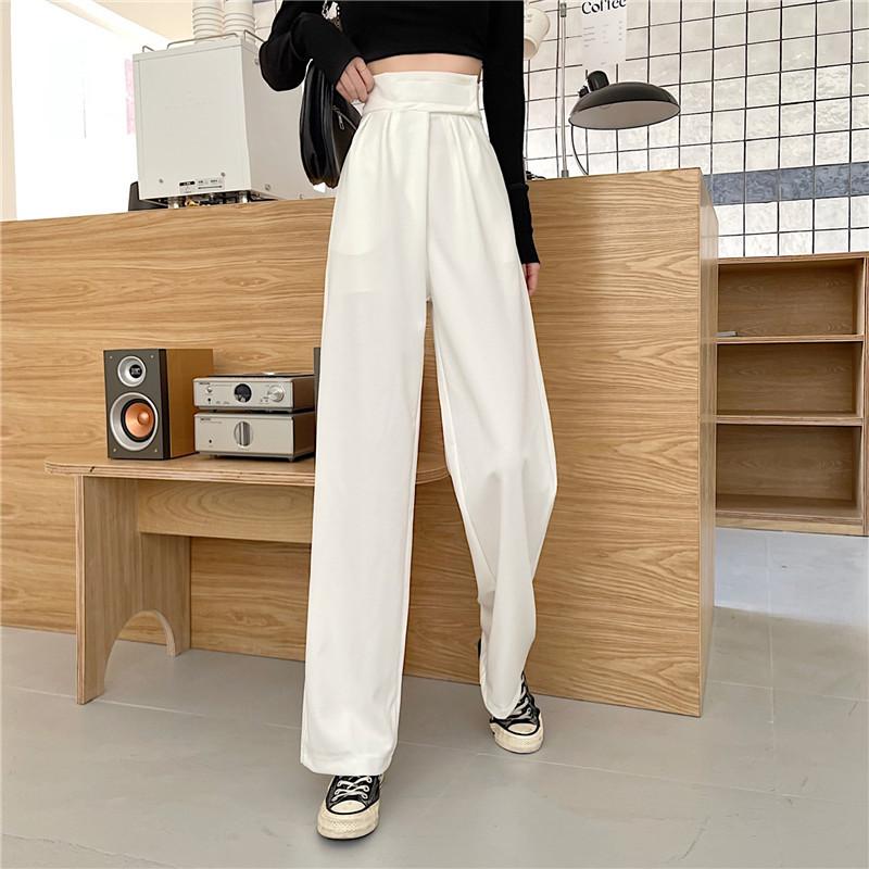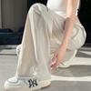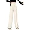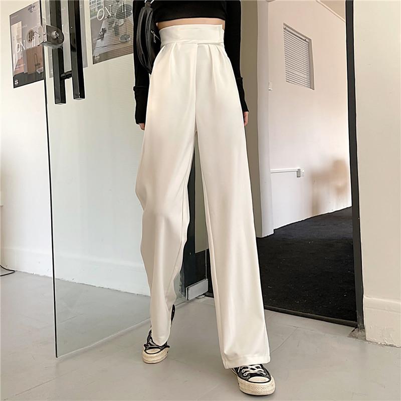 Pantalones de Velcro Estilo High Street para Mujer Cintura Alta Diseño Blanco Sentido Recto Tubo Suelto Seda Helada Pierna Ancha