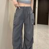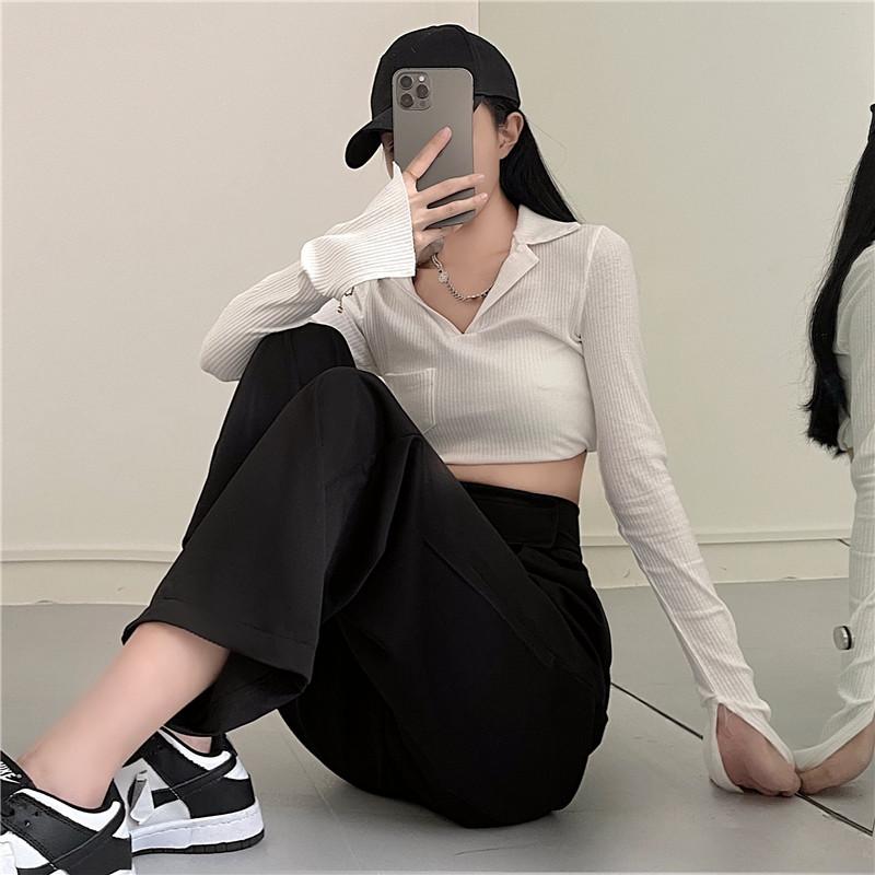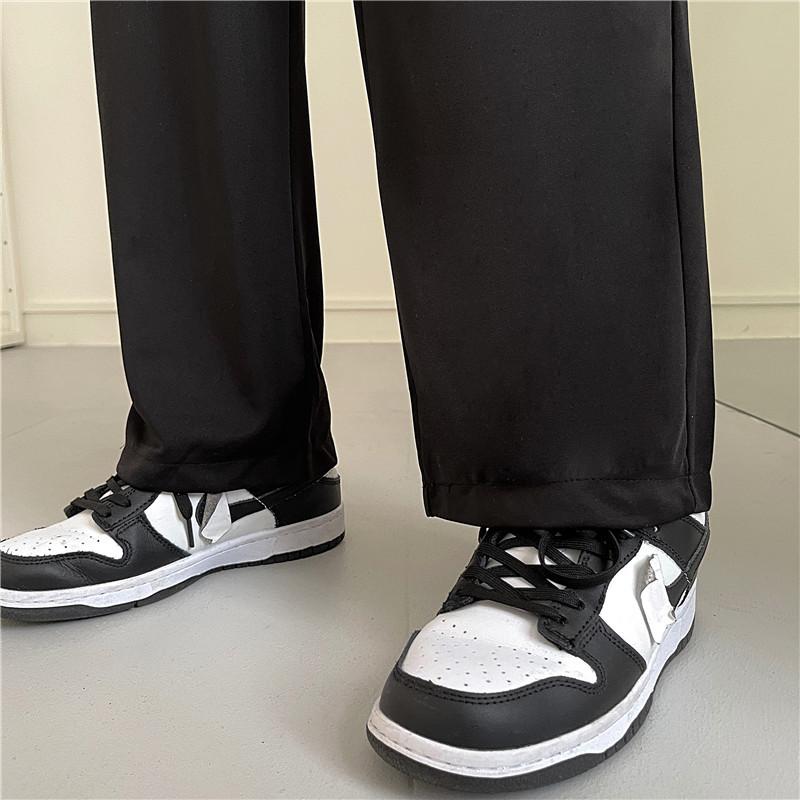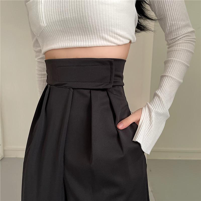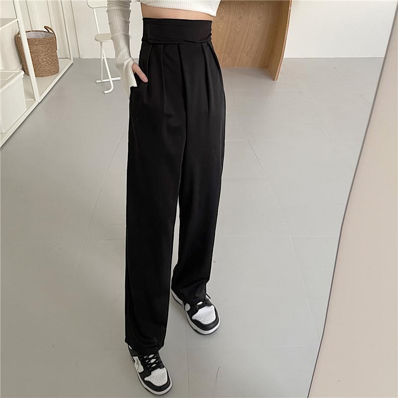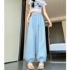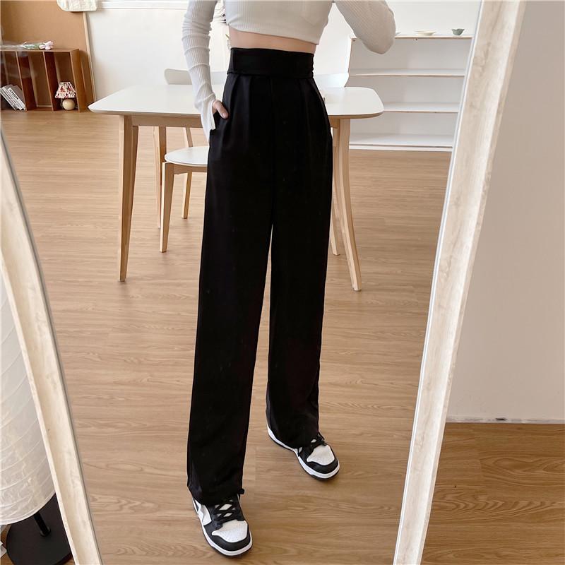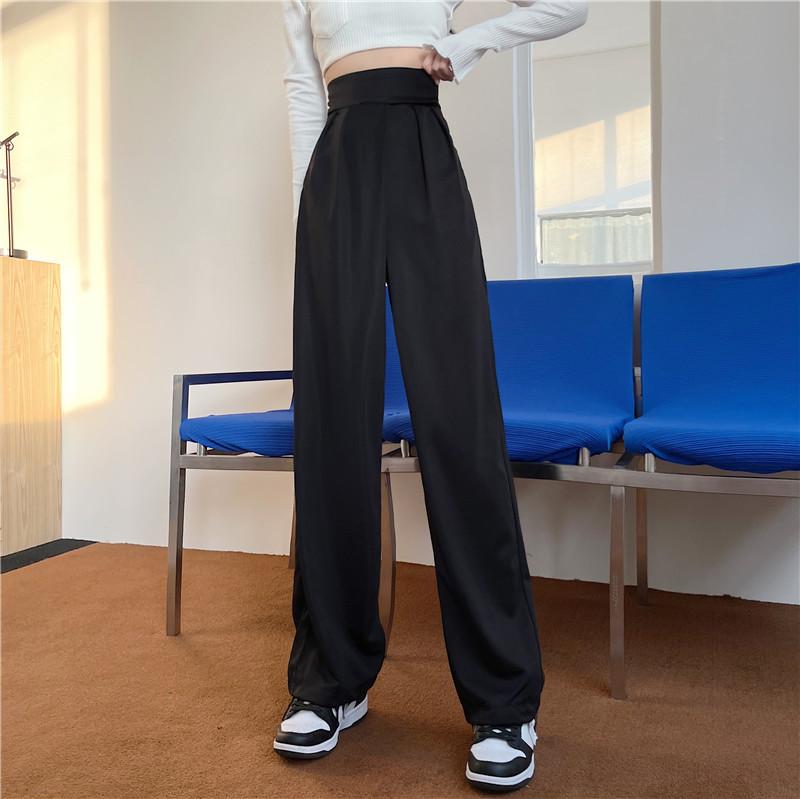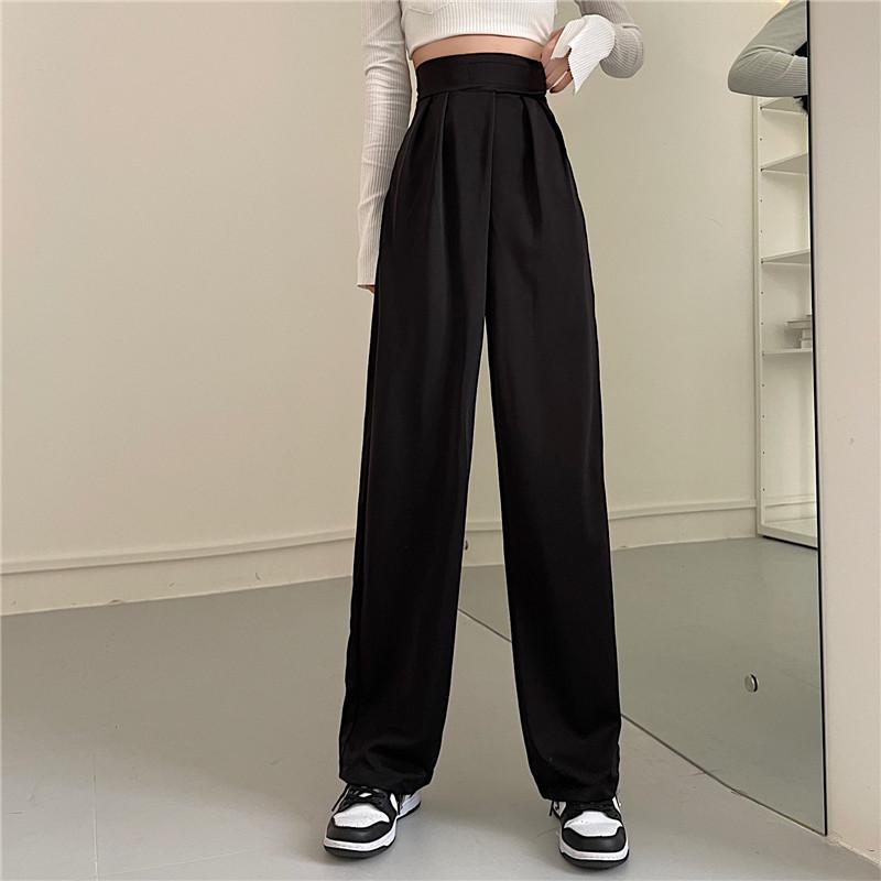 Pantalones de Velcro Estilo High Street para Mujer Cintura Alta Diseño Blanco Sentido Recto Tubo Suelto Seda Helada Pierna Ancha