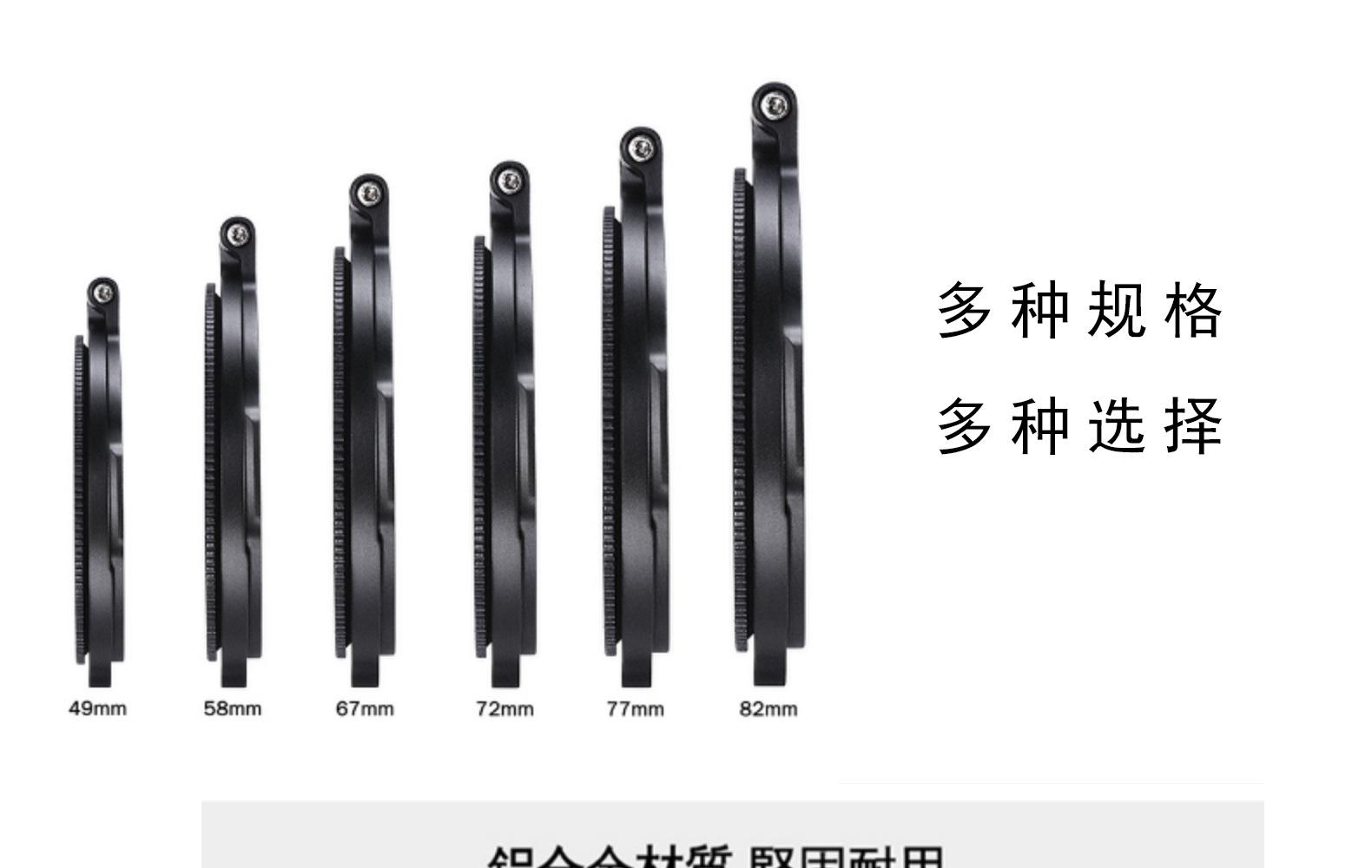 49mm, 58mm, 67mm, 72mm, 77mm, 82mm