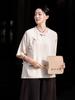 26 Ropa de Verano de Algodón y Lino para Mujer Nuevo Estilo Chino Retro Cuello Alto Delgado Botón Diagonal Top Vestido de Té Camisa de Lino para Mujer