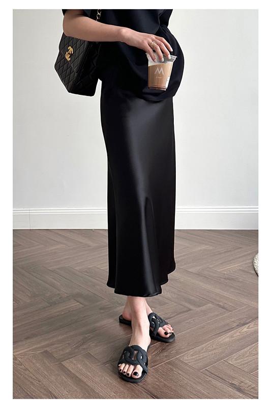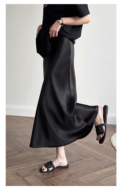 Falda de satén fina de cintura alta para mujer, novedad de verano 2024, corte en A, cola de pez, vestido largo a la cadera, a la moda