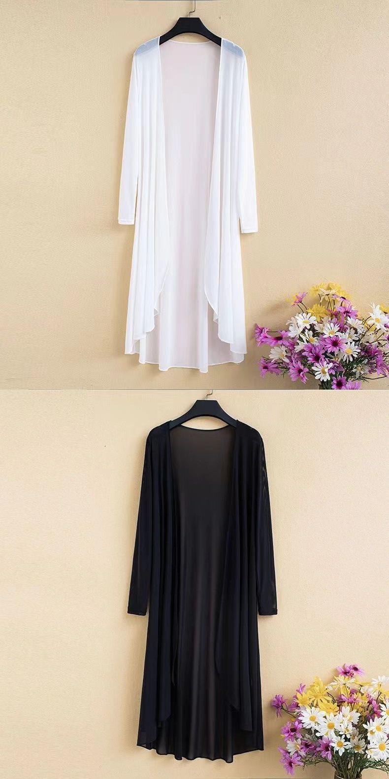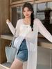 Chal blanco de verano nuevo para mujer, cárdigan de talla grande, protector solar, abrigo fino, transpirable, de largo medio