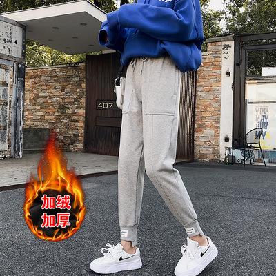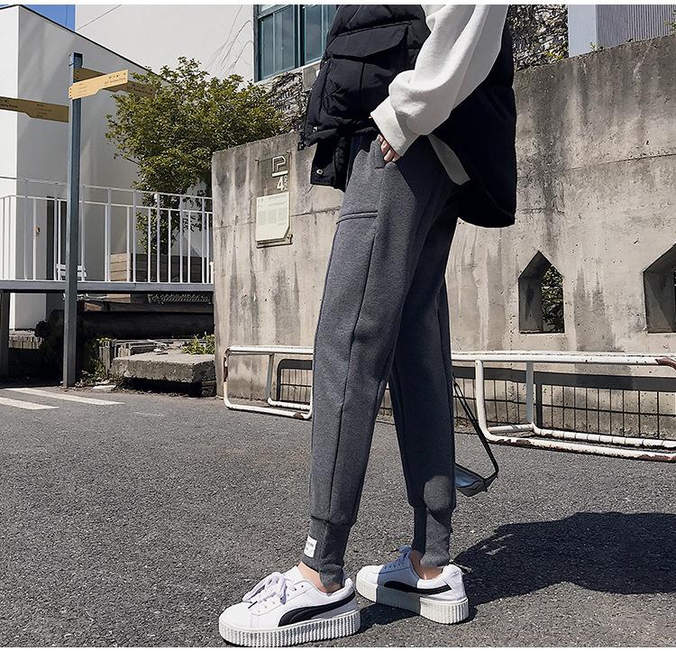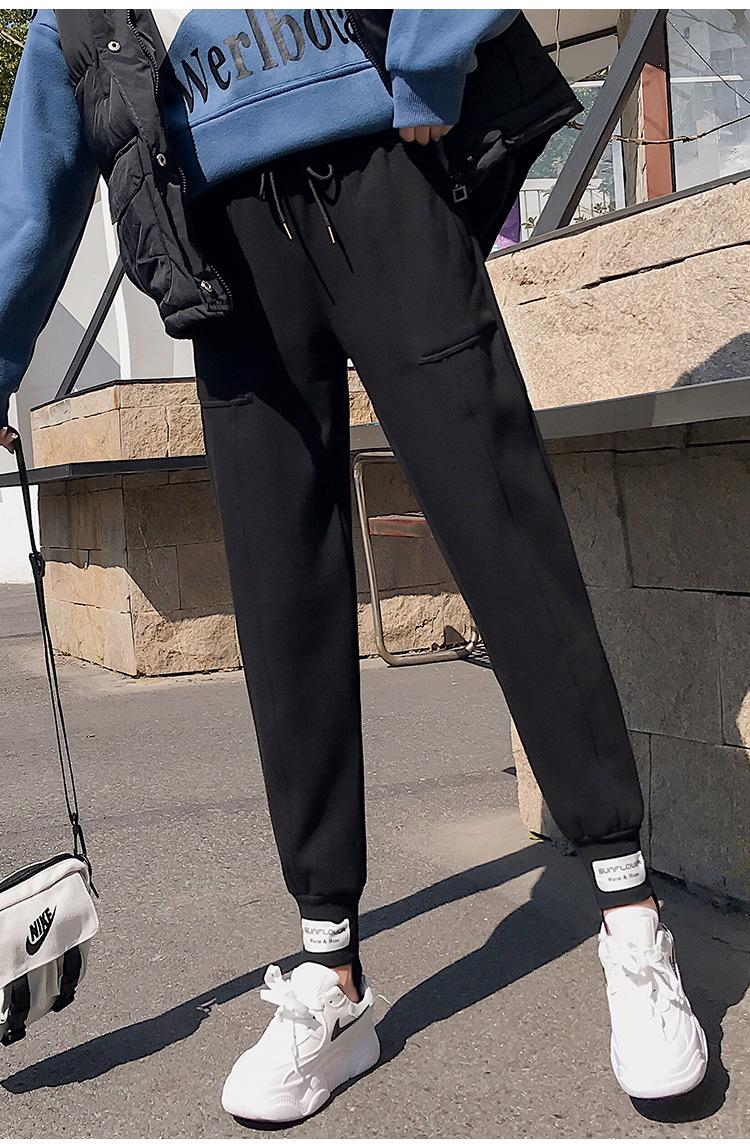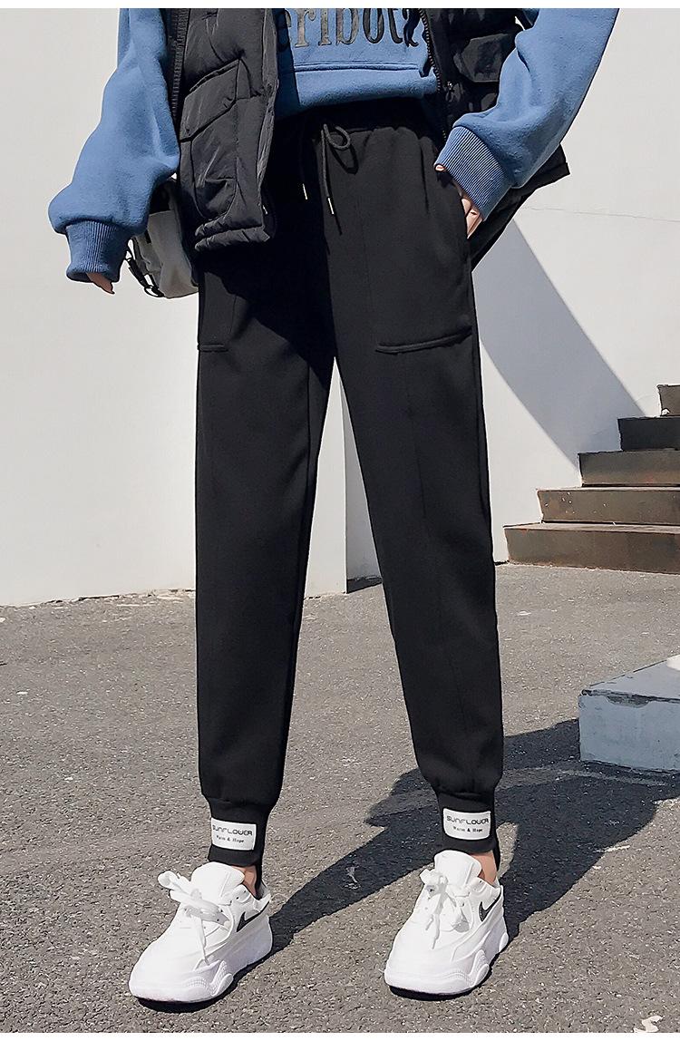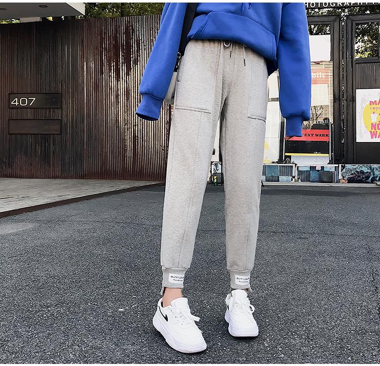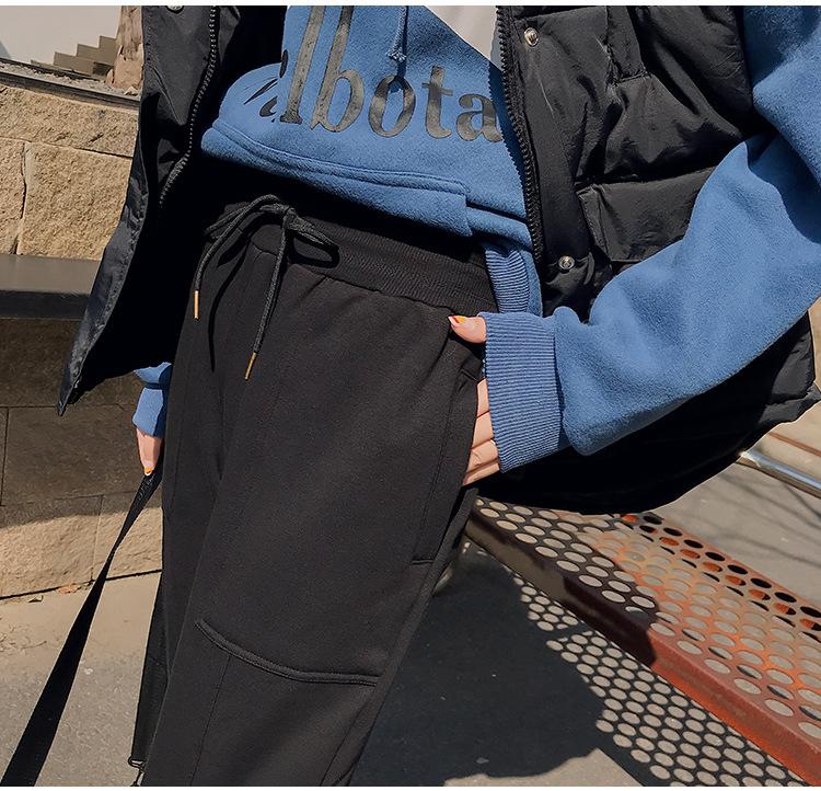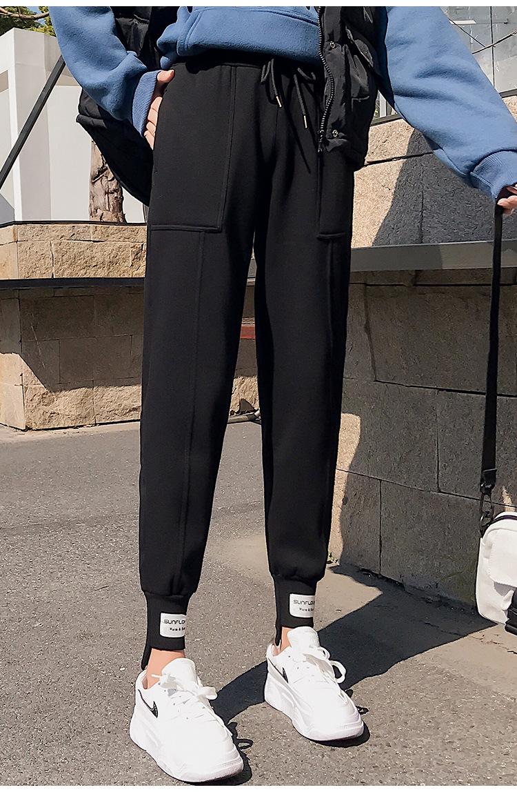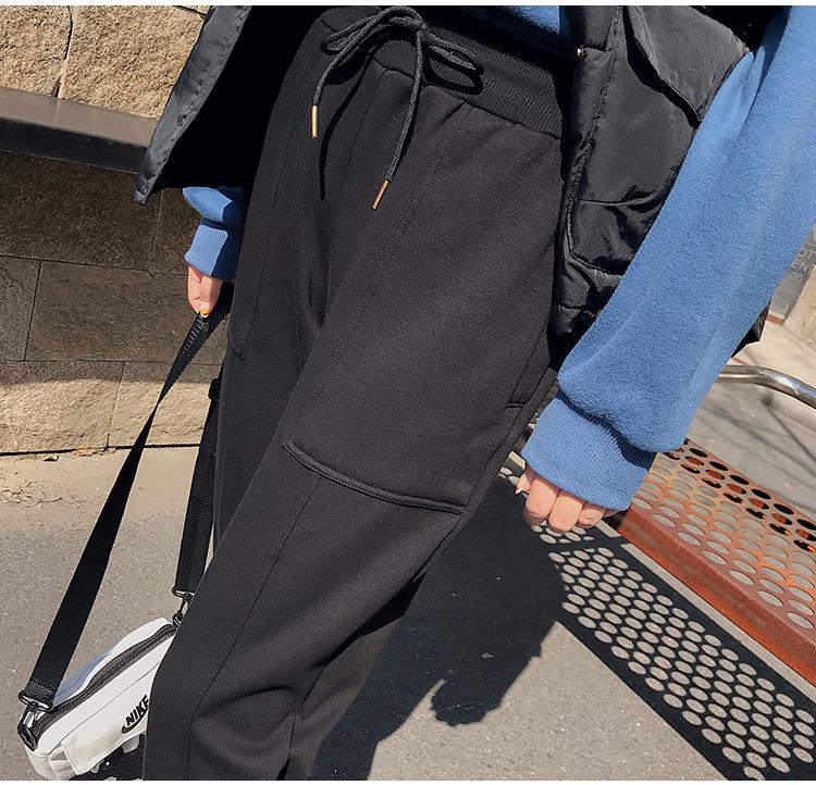 Pantalones deportivos Pantalones de mujer Holgados Otoño e Invierno 2019 Nuevo estilo coreano Celebridad de internet Pantalones Harlan Forrados con vellón Pie Casual Pantalones Wei