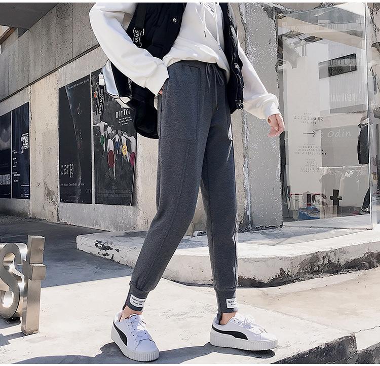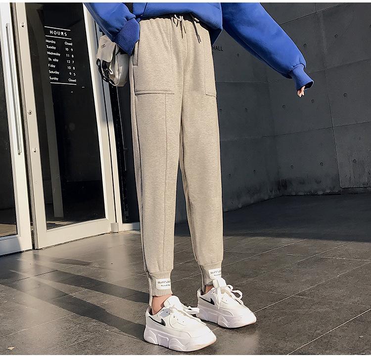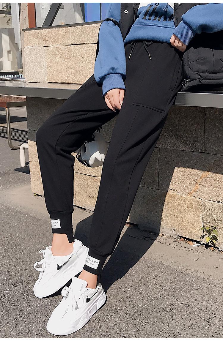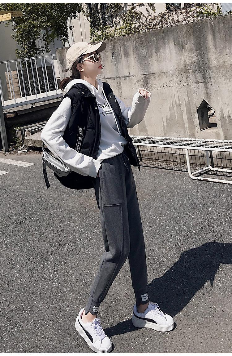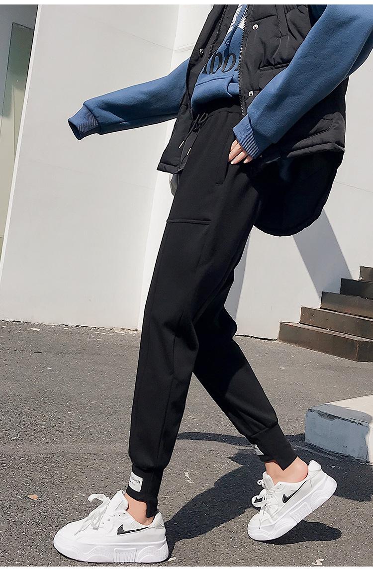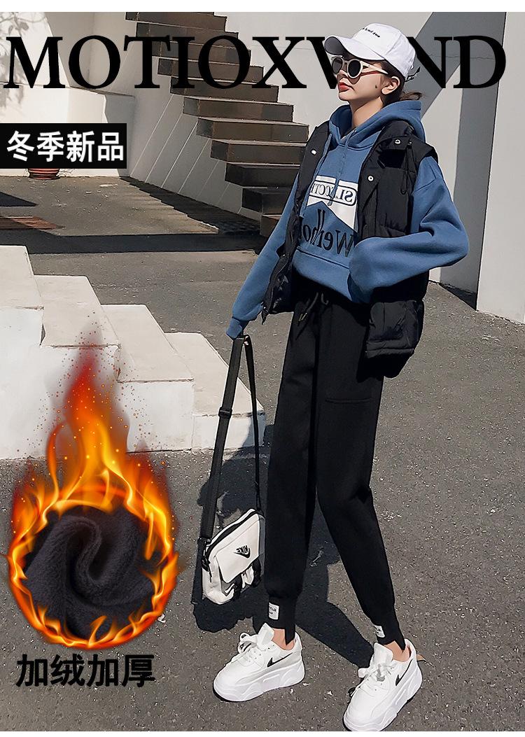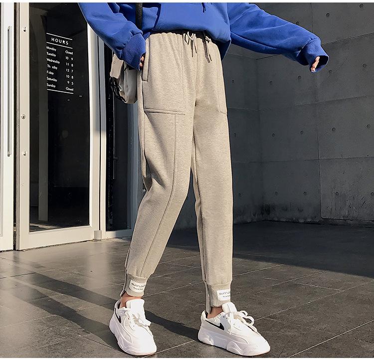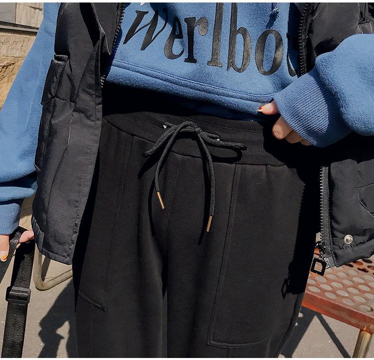 Pantalones deportivos Pantalones de mujer Holgados Otoño e Invierno 2019 Nuevo estilo coreano Celebridad de internet Pantalones Harlan Forrados con vellón Pie Casual Pantalones Wei
