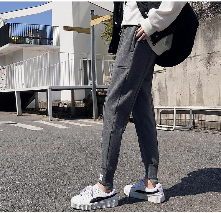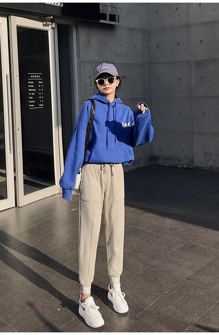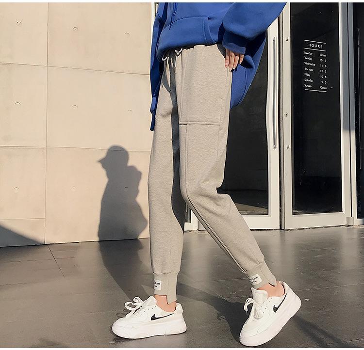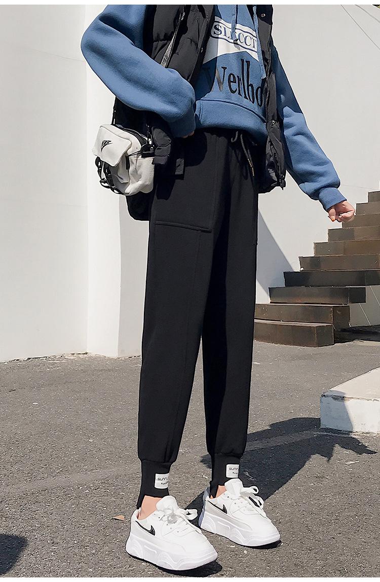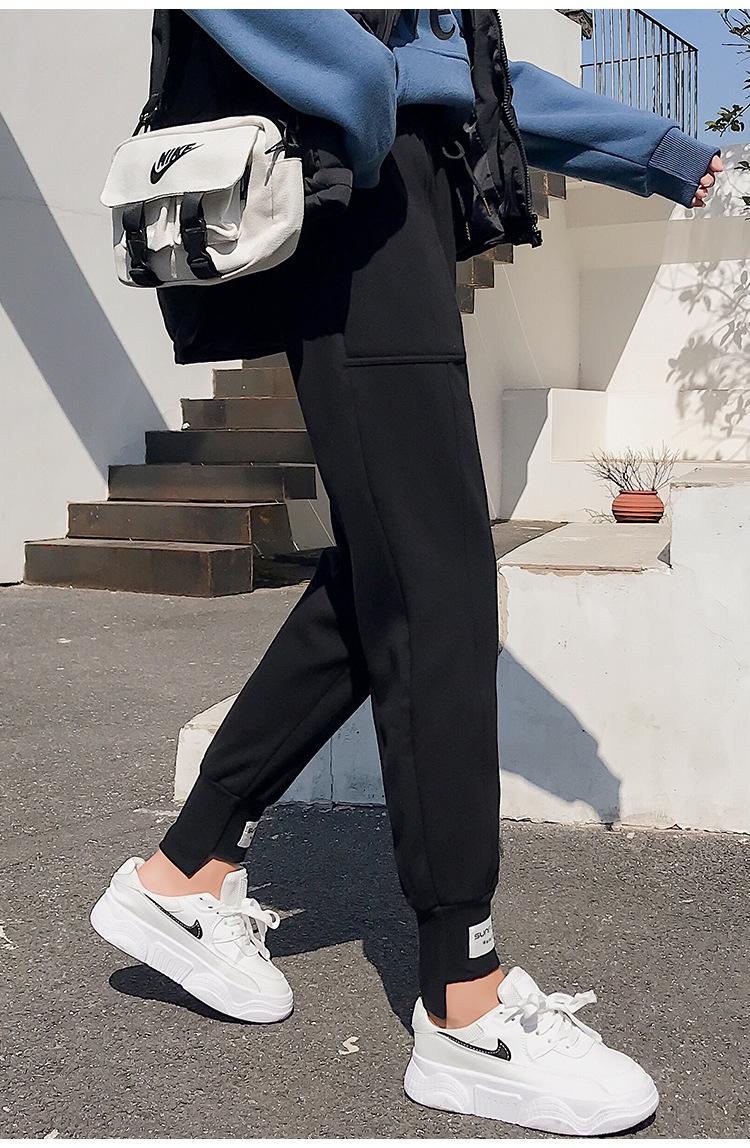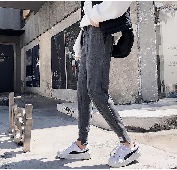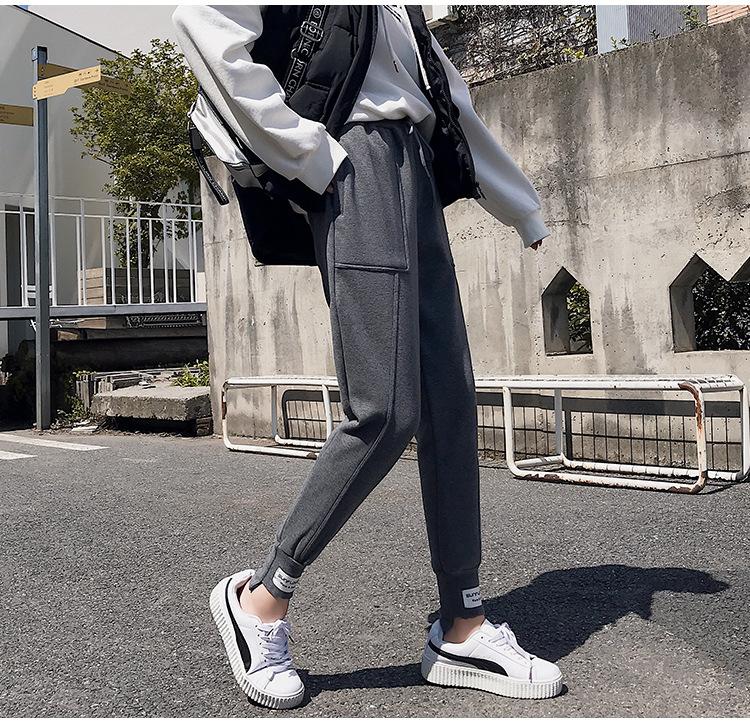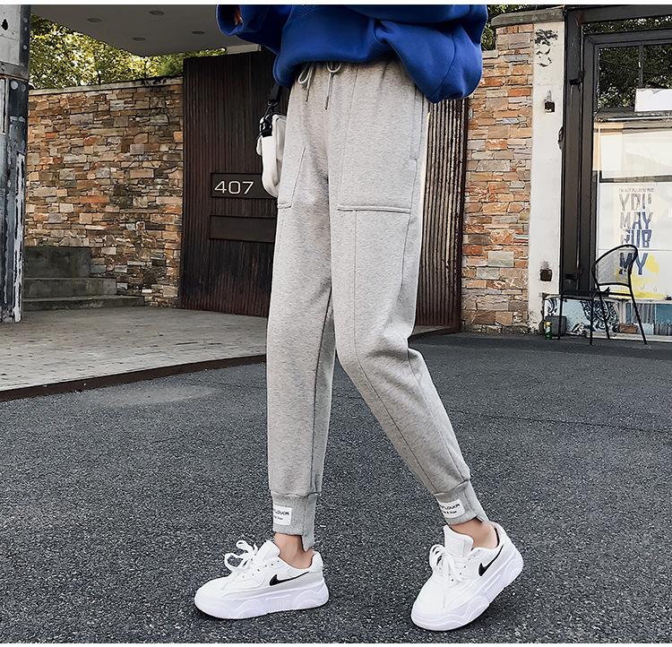 Pantalones deportivos Pantalones de mujer Holgados Otoño e Invierno 2019 Nuevo estilo coreano Celebridad de internet Pantalones Harlan Forrados con vellón Pie Casual Pantalones Wei