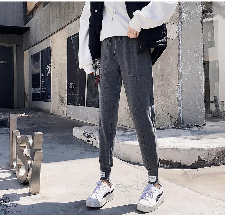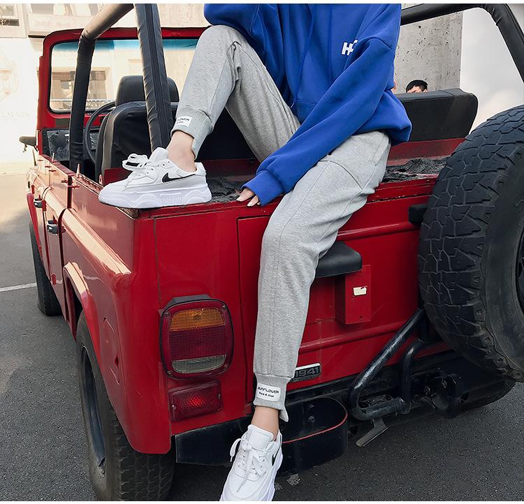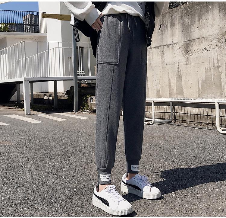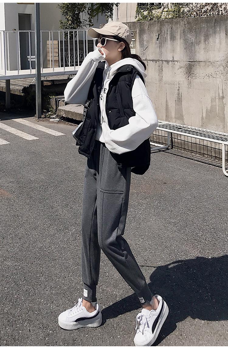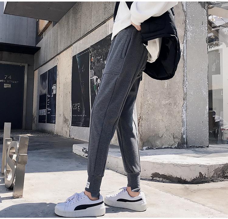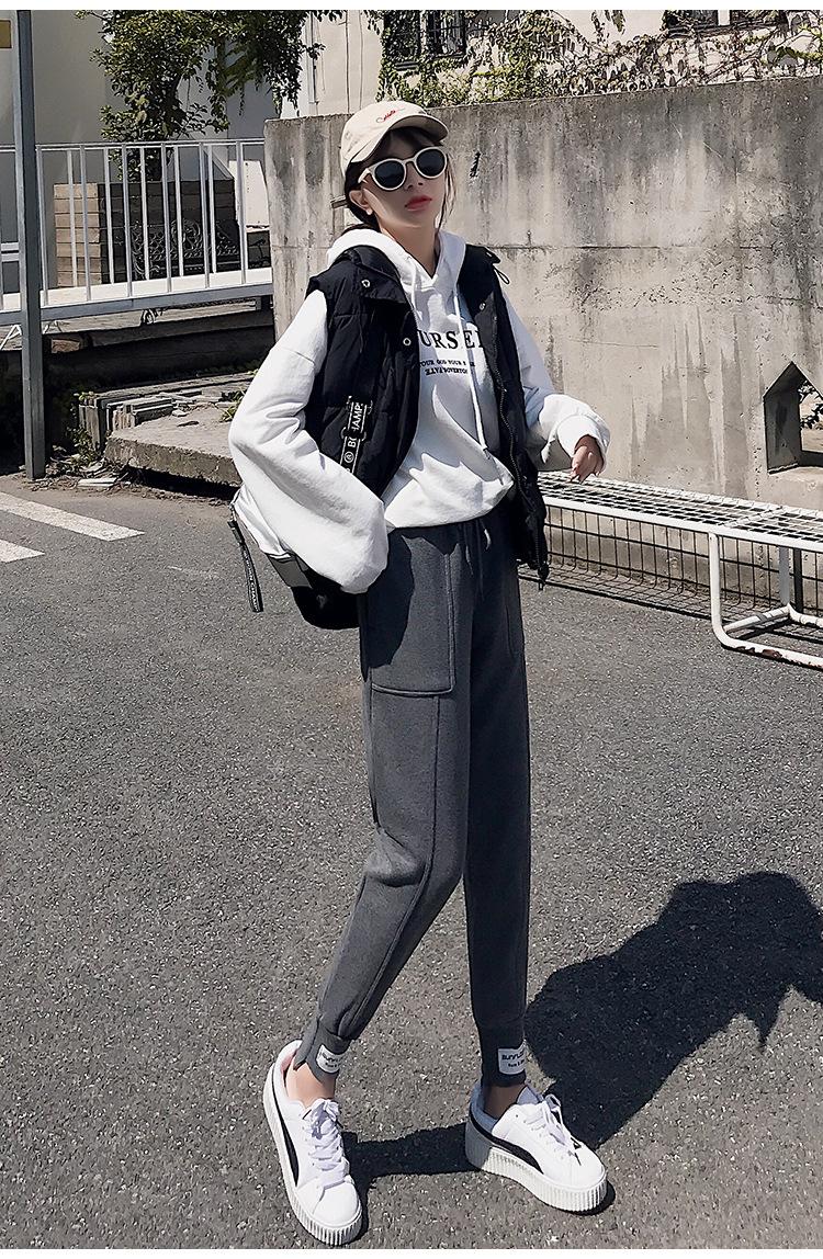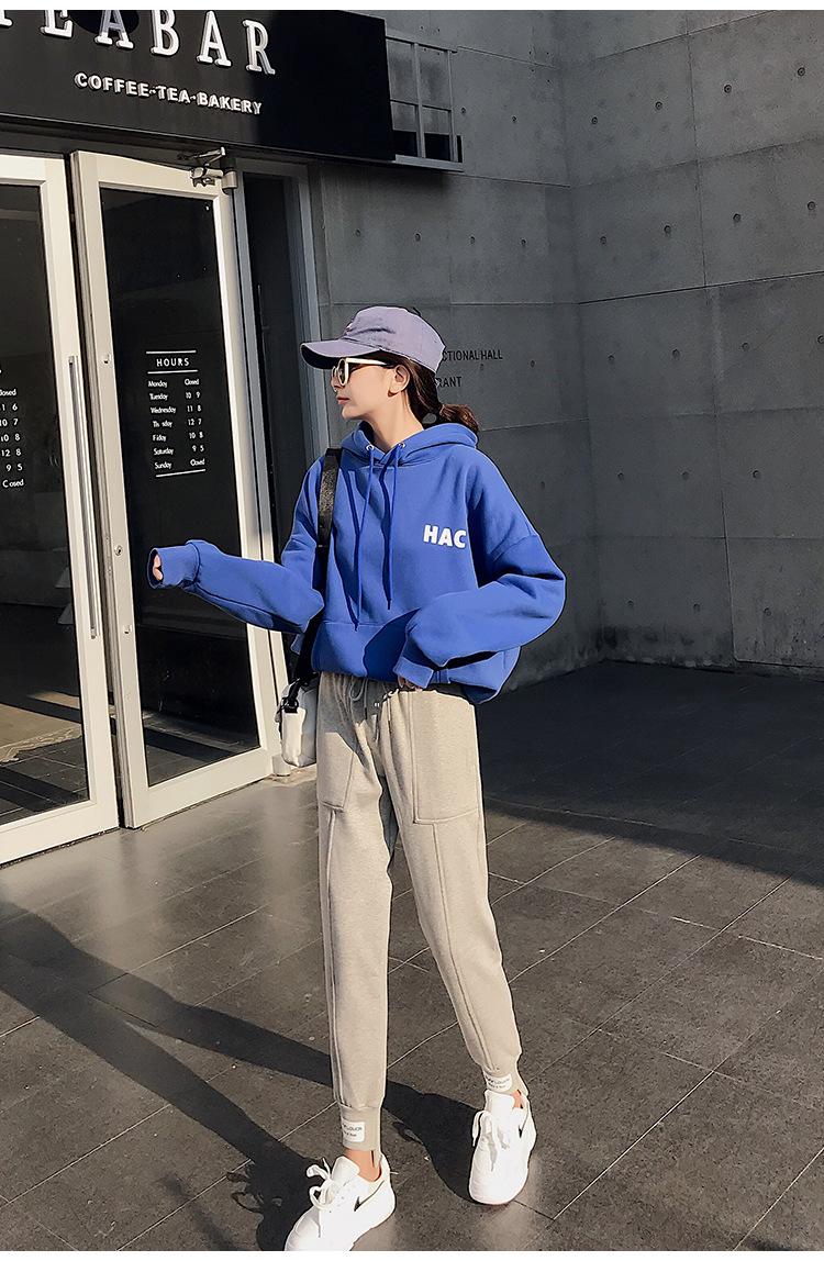 Pantalones deportivos Pantalones de mujer Holgados Otoño e Invierno 2019 Nuevo estilo coreano Celebridad de internet Pantalones Harlan Forrados con vellón Pie Casual Pantalones Wei