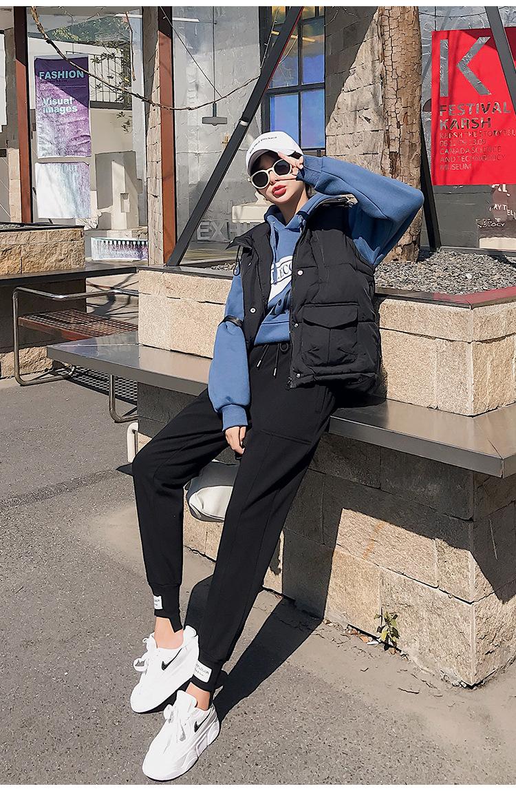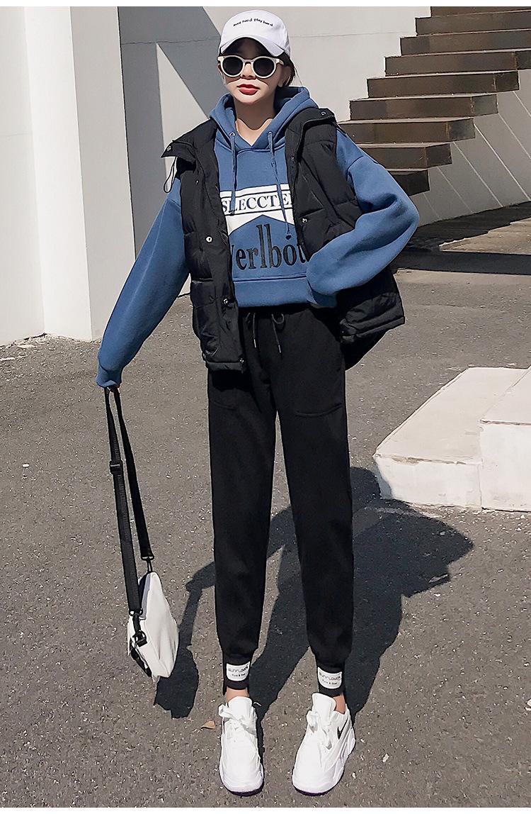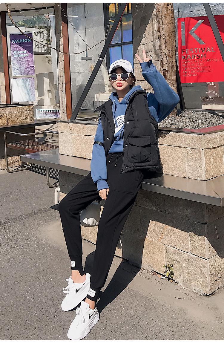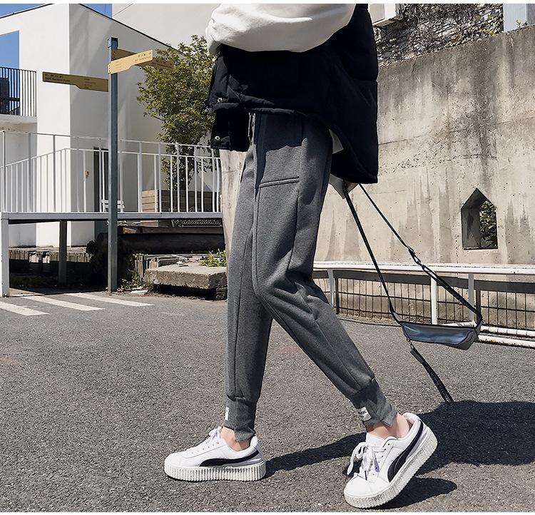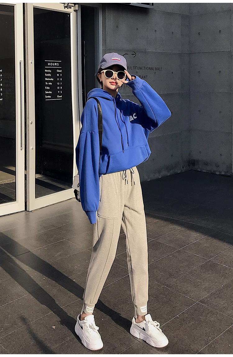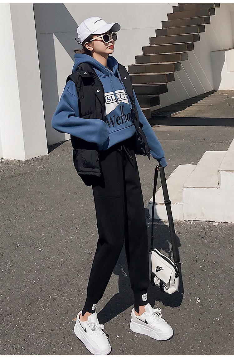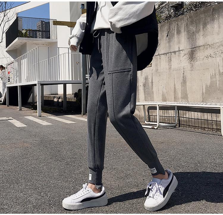 Pantalones deportivos Pantalones de mujer Holgados Otoño e Invierno 2019 Nuevo estilo coreano Celebridad de internet Pantalones Harlan Forrados con vellón Pie Casual Pantalones Wei
