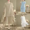 Falda Acampanada Literaria Lotte Verano 2025 Nuevo Cintura Suelta Talla Grande Algodón y Lino Vestido