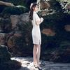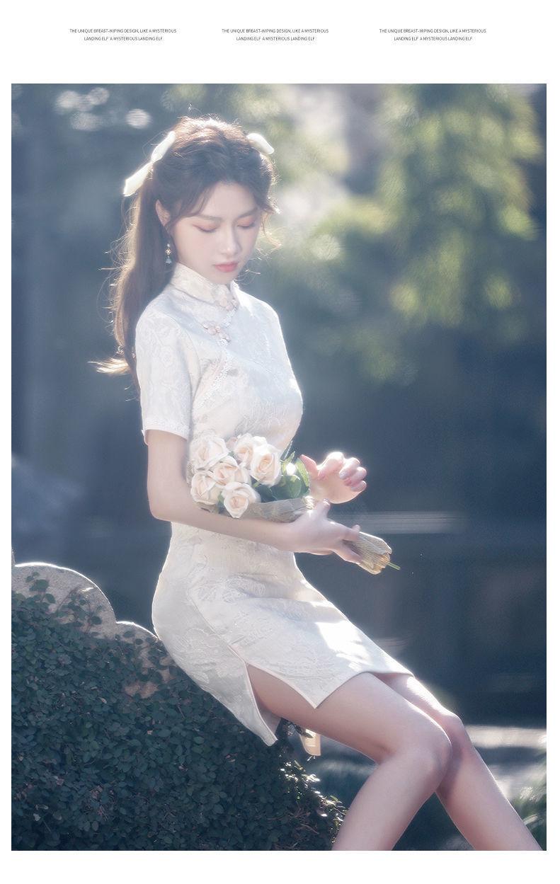 Vestido Blanco Nuevo Estilo Corto Estilo Verano Fresco Cheongsam Niña Joven