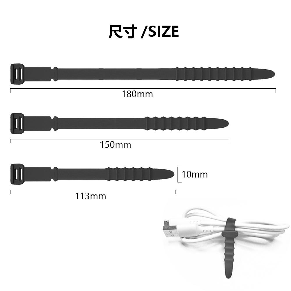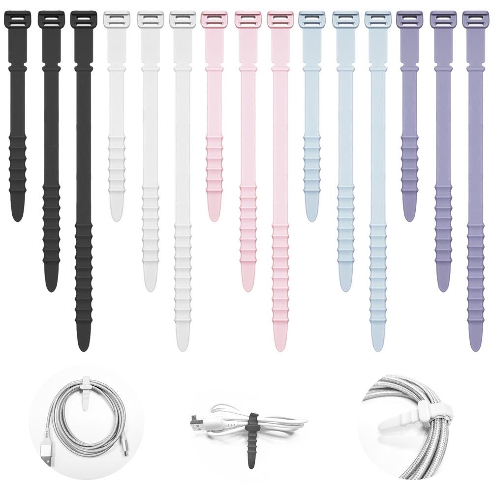 Organizador de bridas de silicona de tres tamaños, enrollador de cables, cable de datos para auriculares, correa de sujeción para cables [cinco colores espina de pescado]