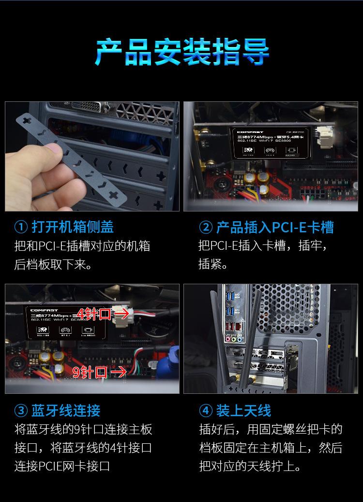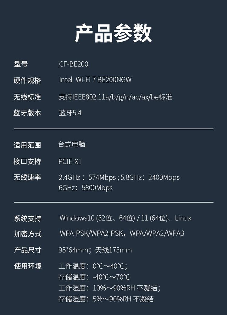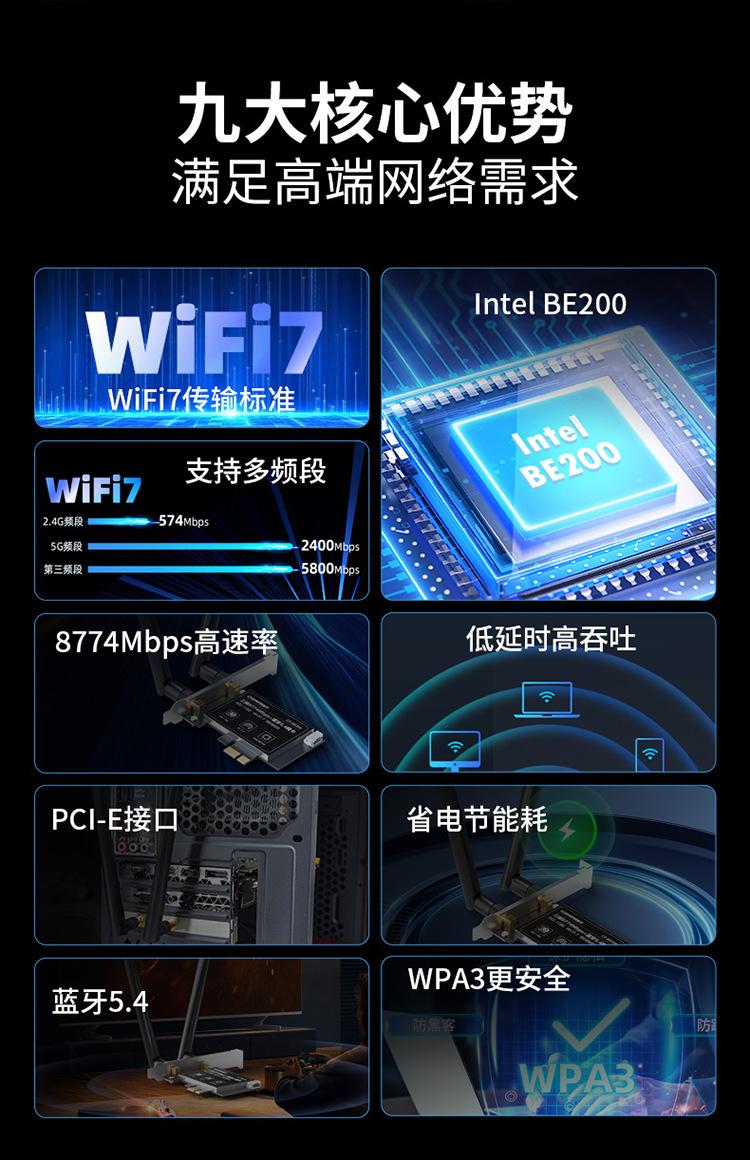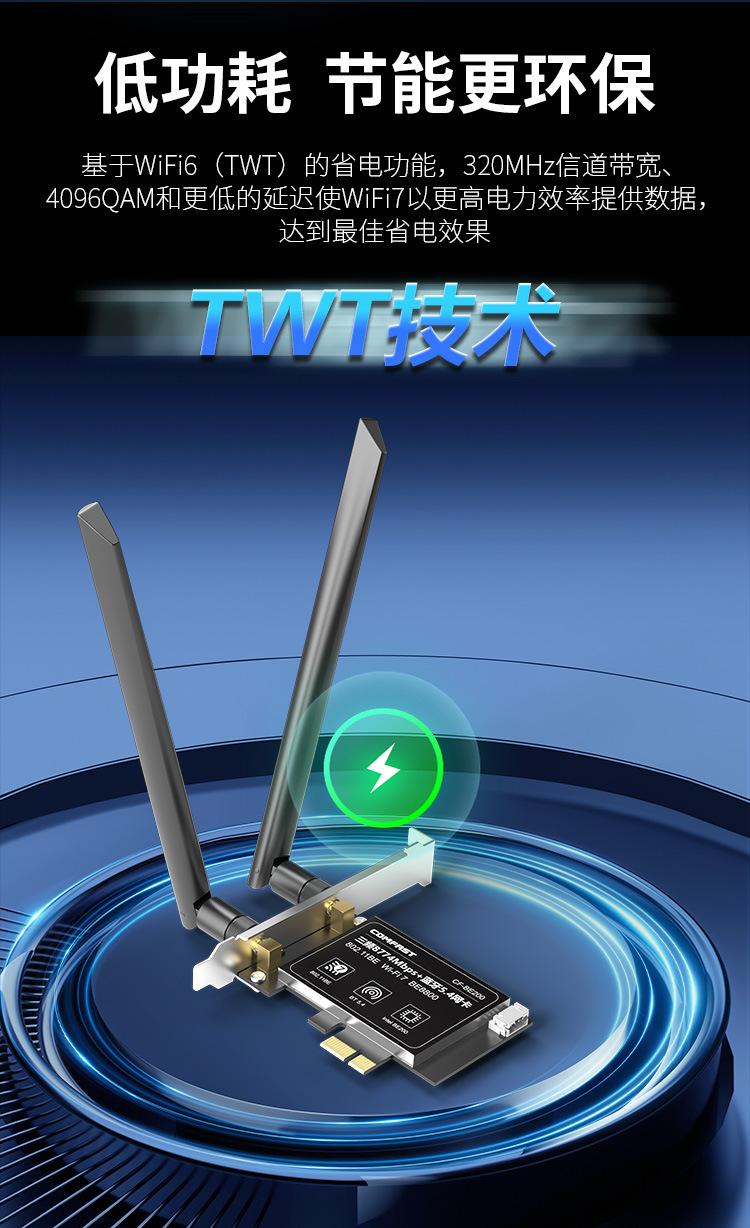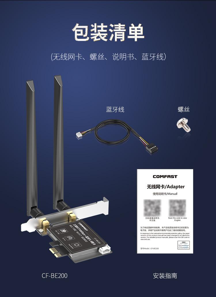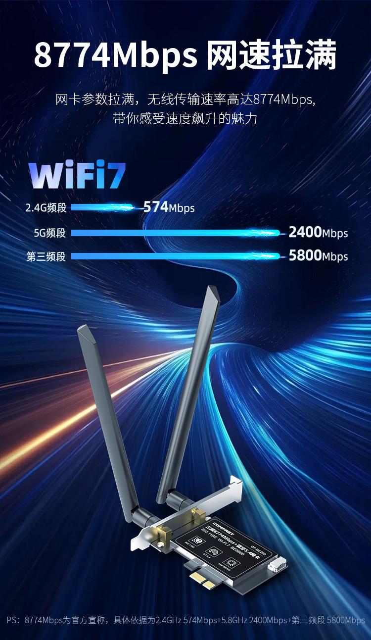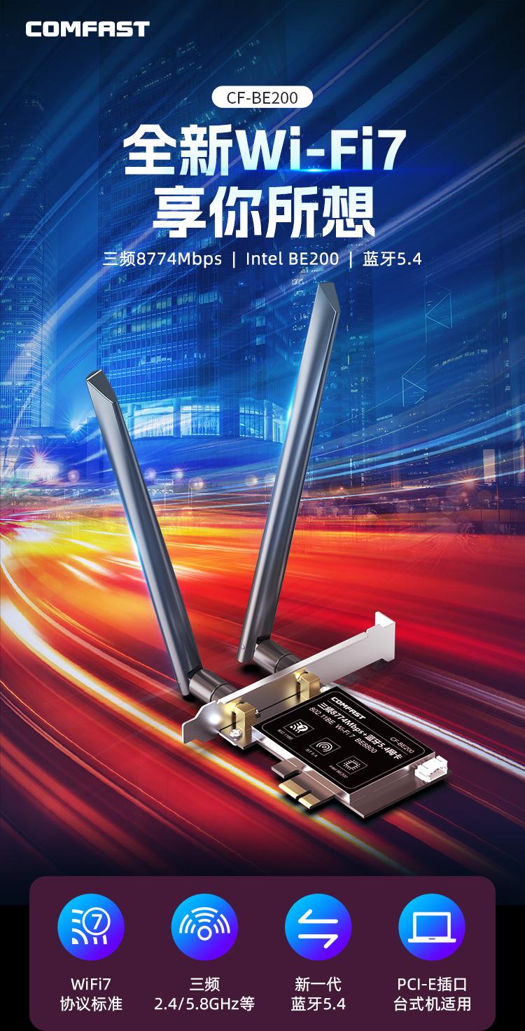 Comfast Cf-Be200 Tarjeta de Red Inalámbrica Tri-Banda Wifi7 E-Sports 8774m Receptor Wifi para Computadora de Escritorio