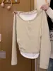Top individual de fondo falso de dos piezas en color contrastante para mujer Primavera y Otoño Nuevo estilo coreano Diseño ajustado Camiseta casual de manga larga