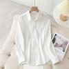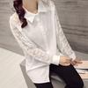 Camisa Polo Nueva Primavera Leche de Papaya Estilo Coreano Elegante Manga Raglán Manga Nueve Puntos Top Trendy con Puntilla