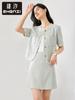 Zhenqi Nuevo Traje de Moda para Mujer Manga Corta Estilo Chanel Cinta Abrigo Corto Traje de Falda DN815