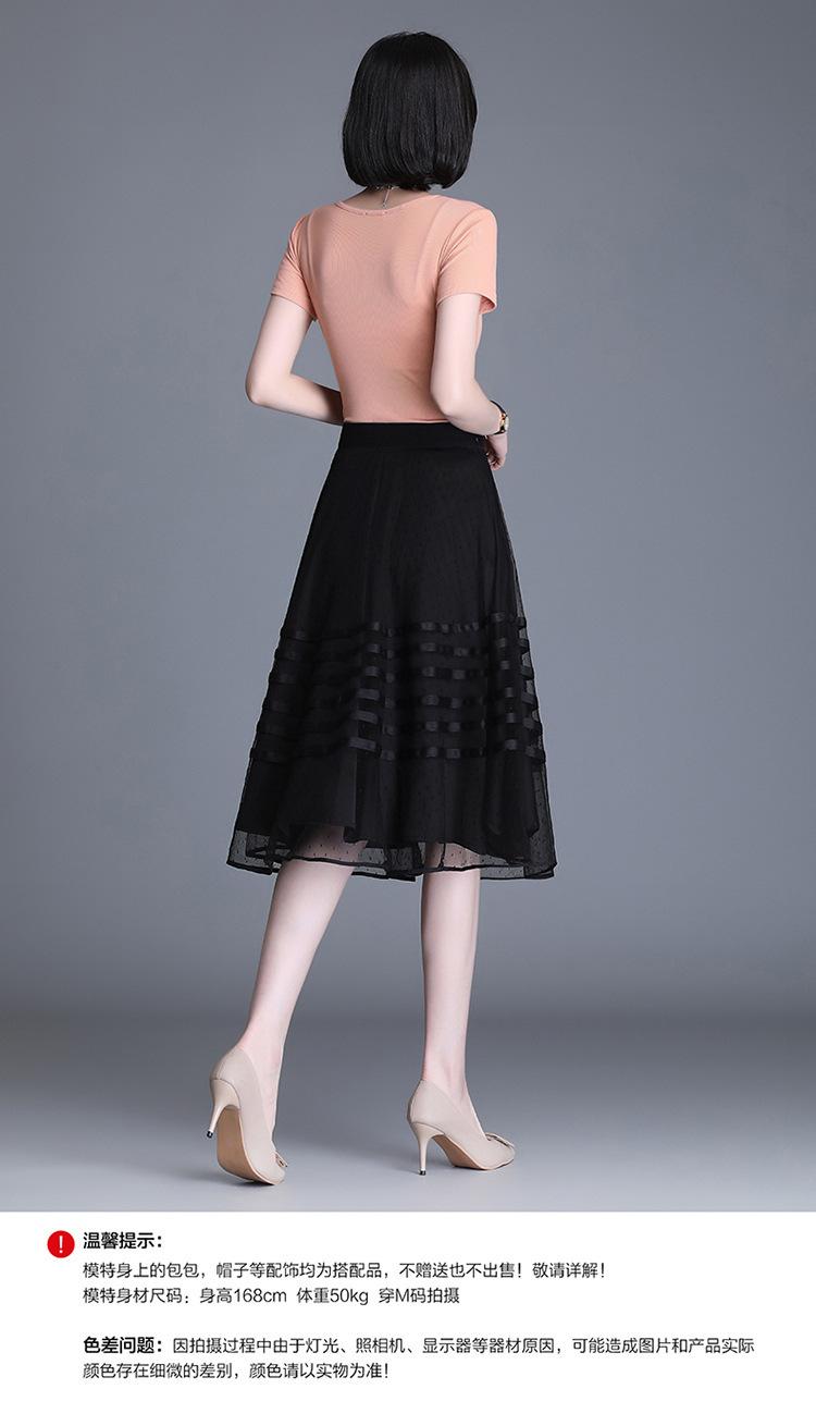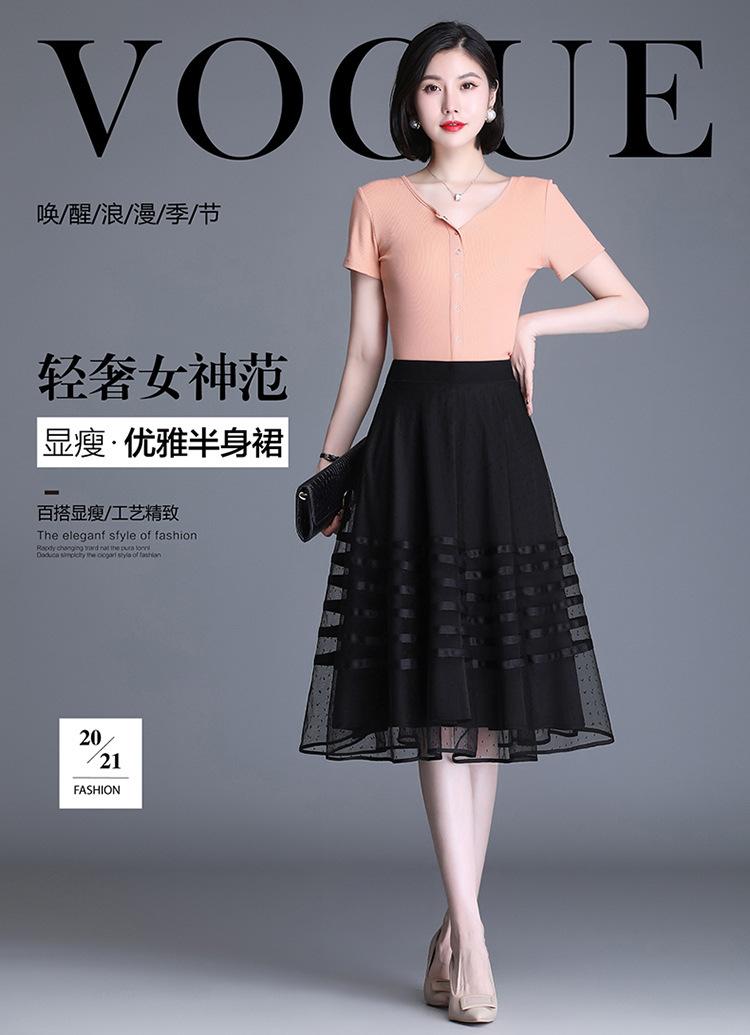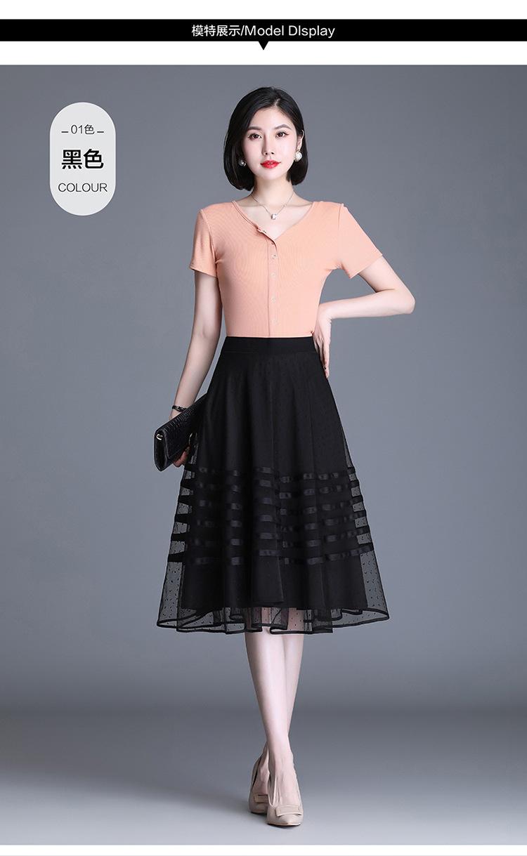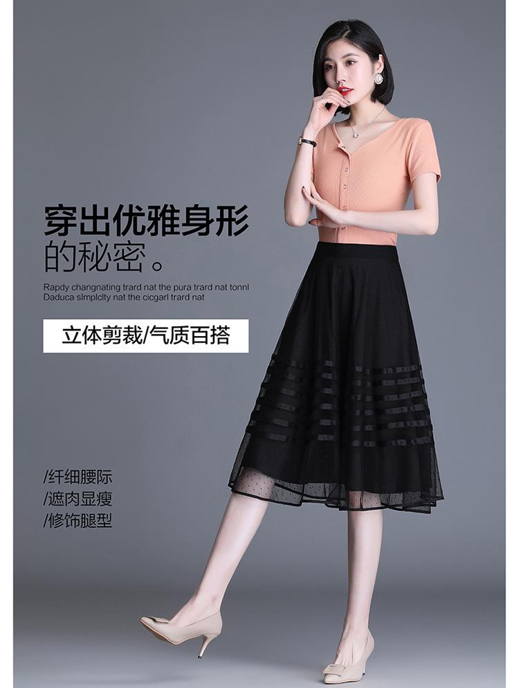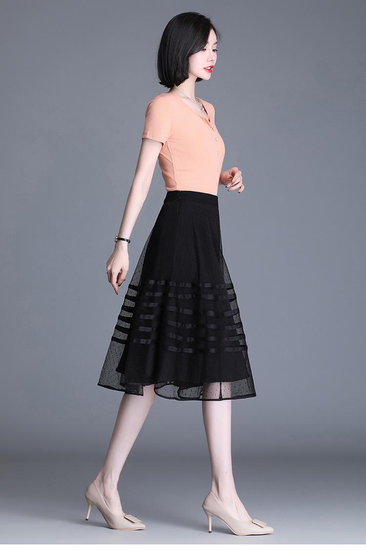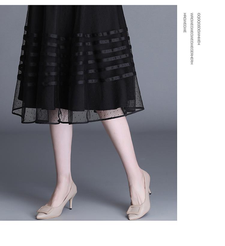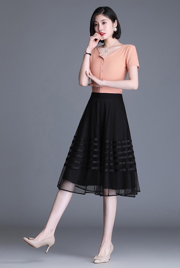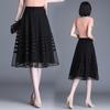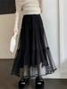Falda de Malla de Moda para Mujer 2025 Verano Nueva Estilo Coreano Línea A Falda Mullida Midi Negra Elegante Falda Plisada