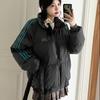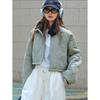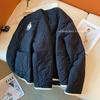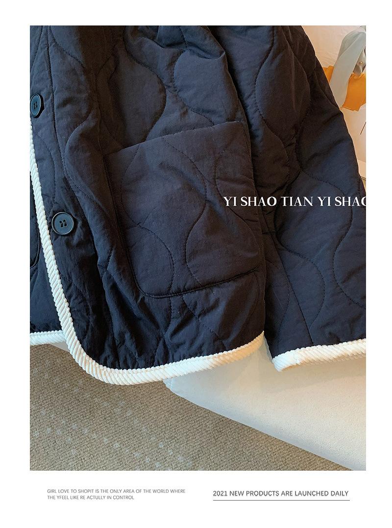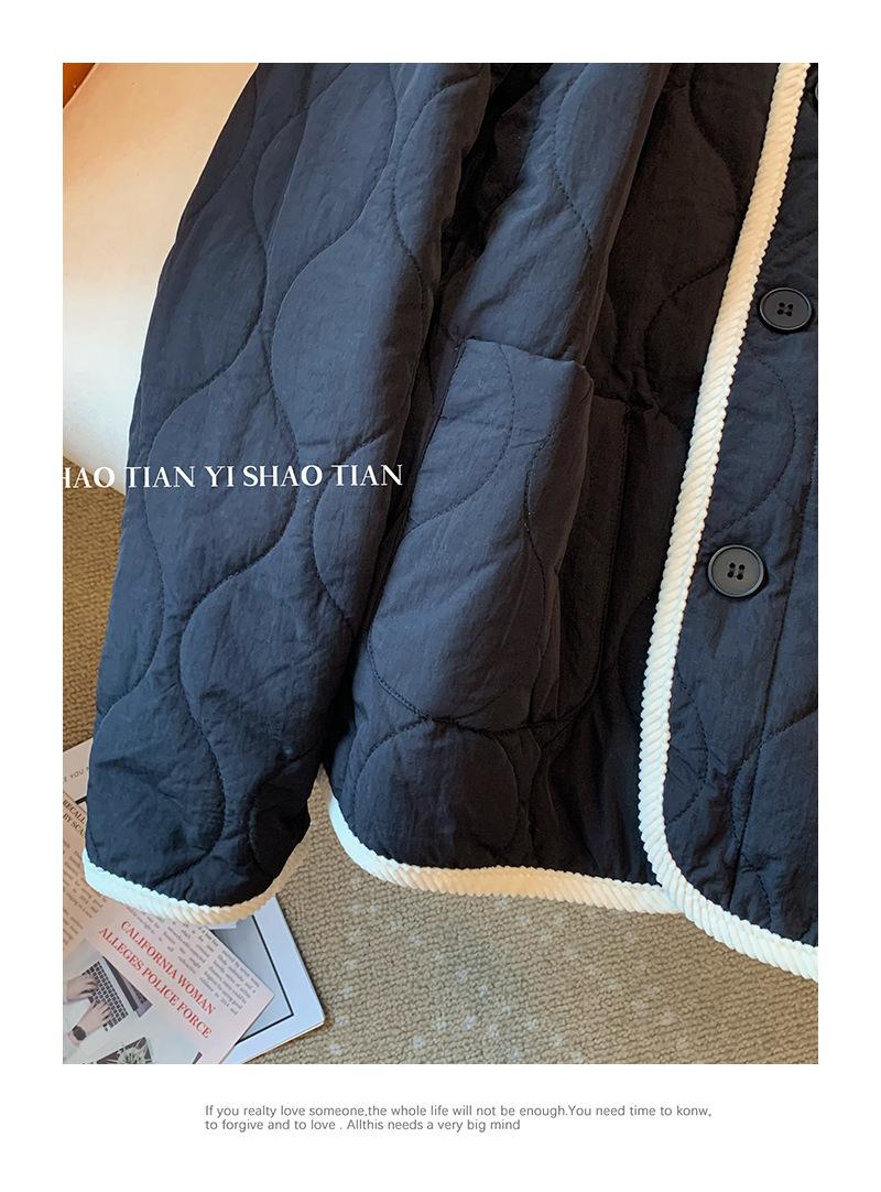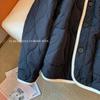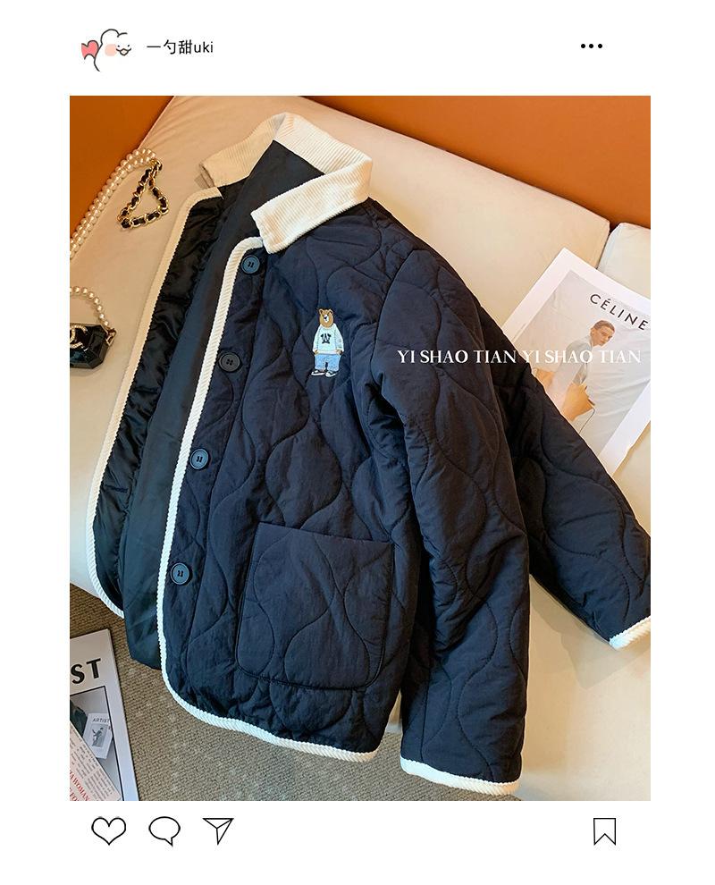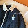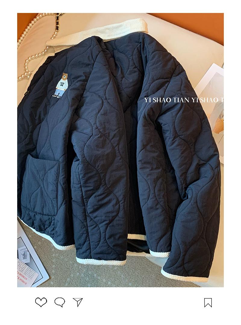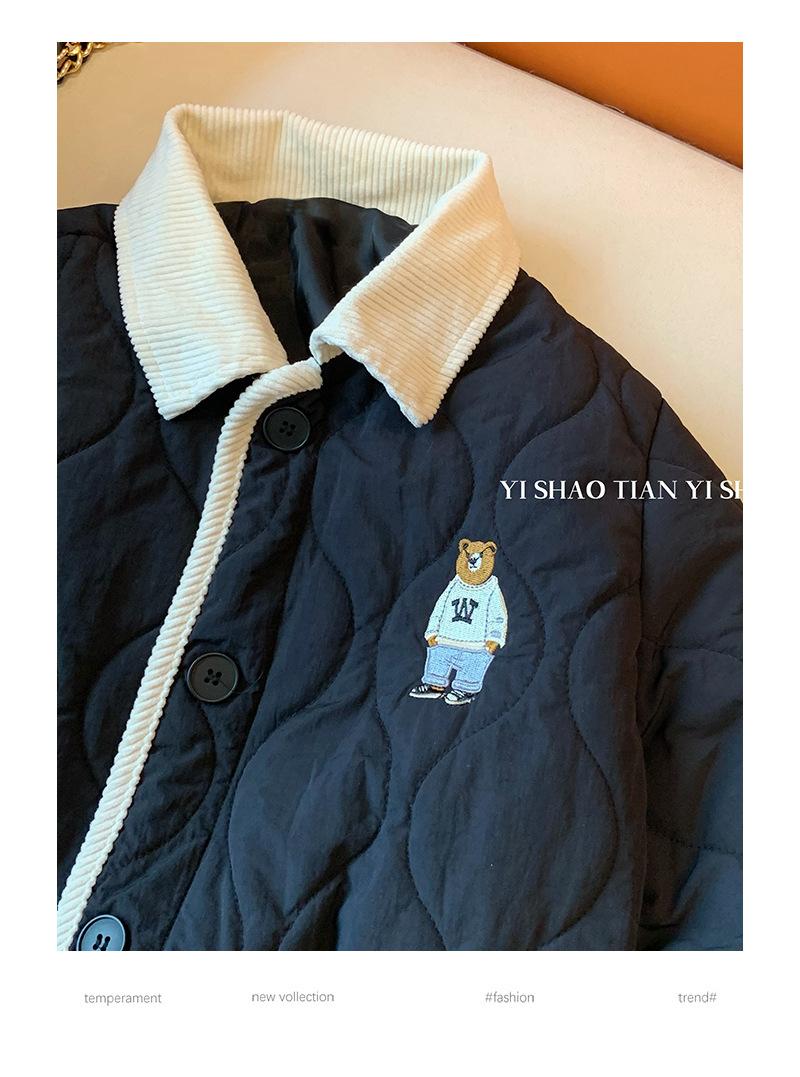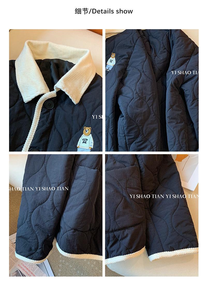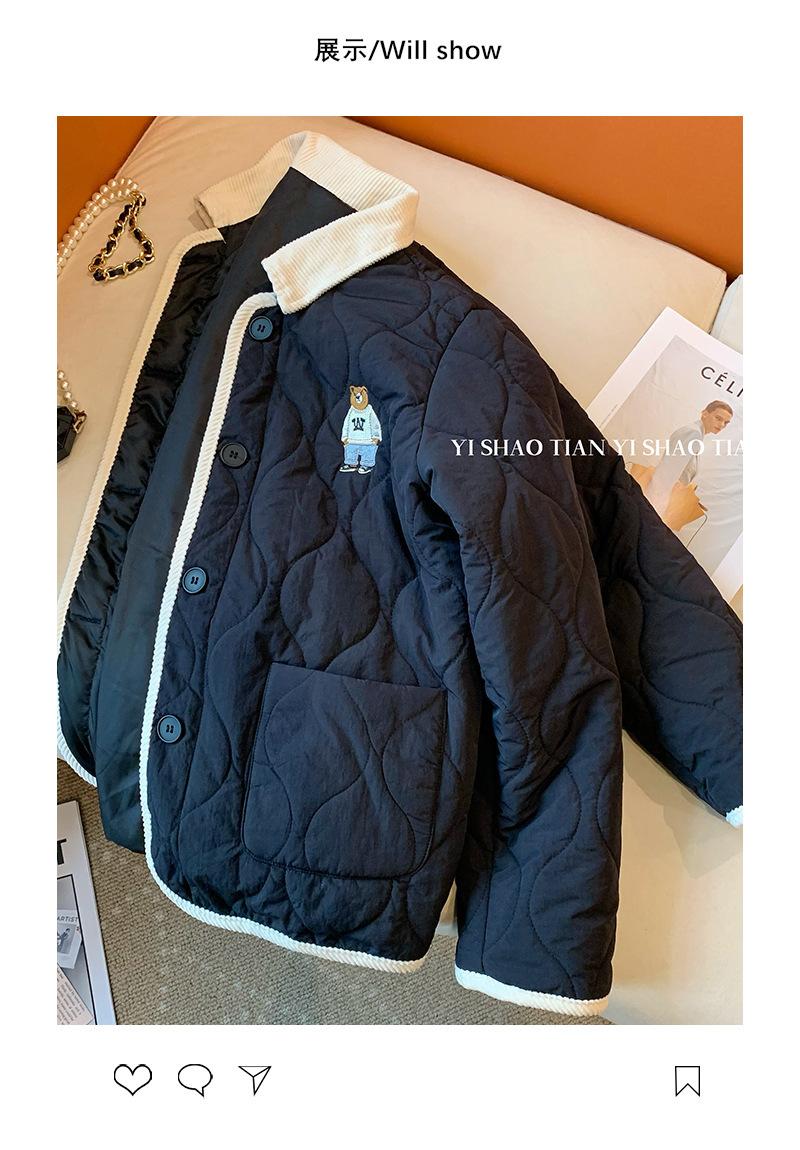 Chaqueta de algodón con solapa y costuras en color contrastante y bordado de oso para mujer, nuevo diseño único acolchado de diamantes para otoño e invierno 2022