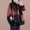 Abrigo acolchado de algodón con solapa de costuras en color contrastante y oso bordado para mujer 2022 otoño e invierno Nuevo diseño chic rombo Cuadros abrigo acolchado