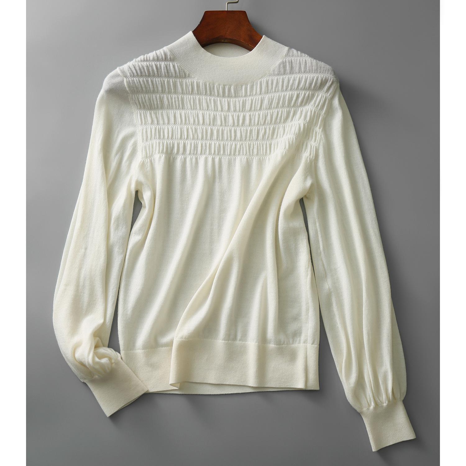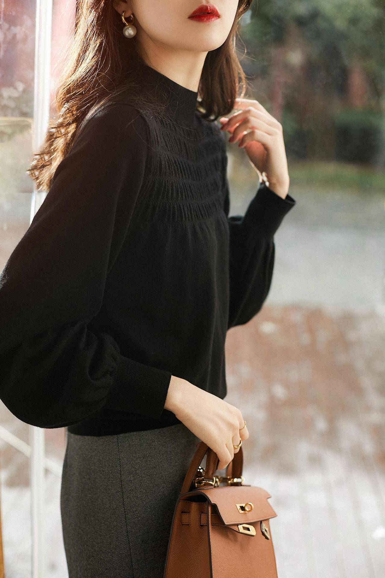 | elementos de moda | Cuello alto simulado, pliegues delanteros, mangas abullonadas, puños/bajo acanalados | ||||||||