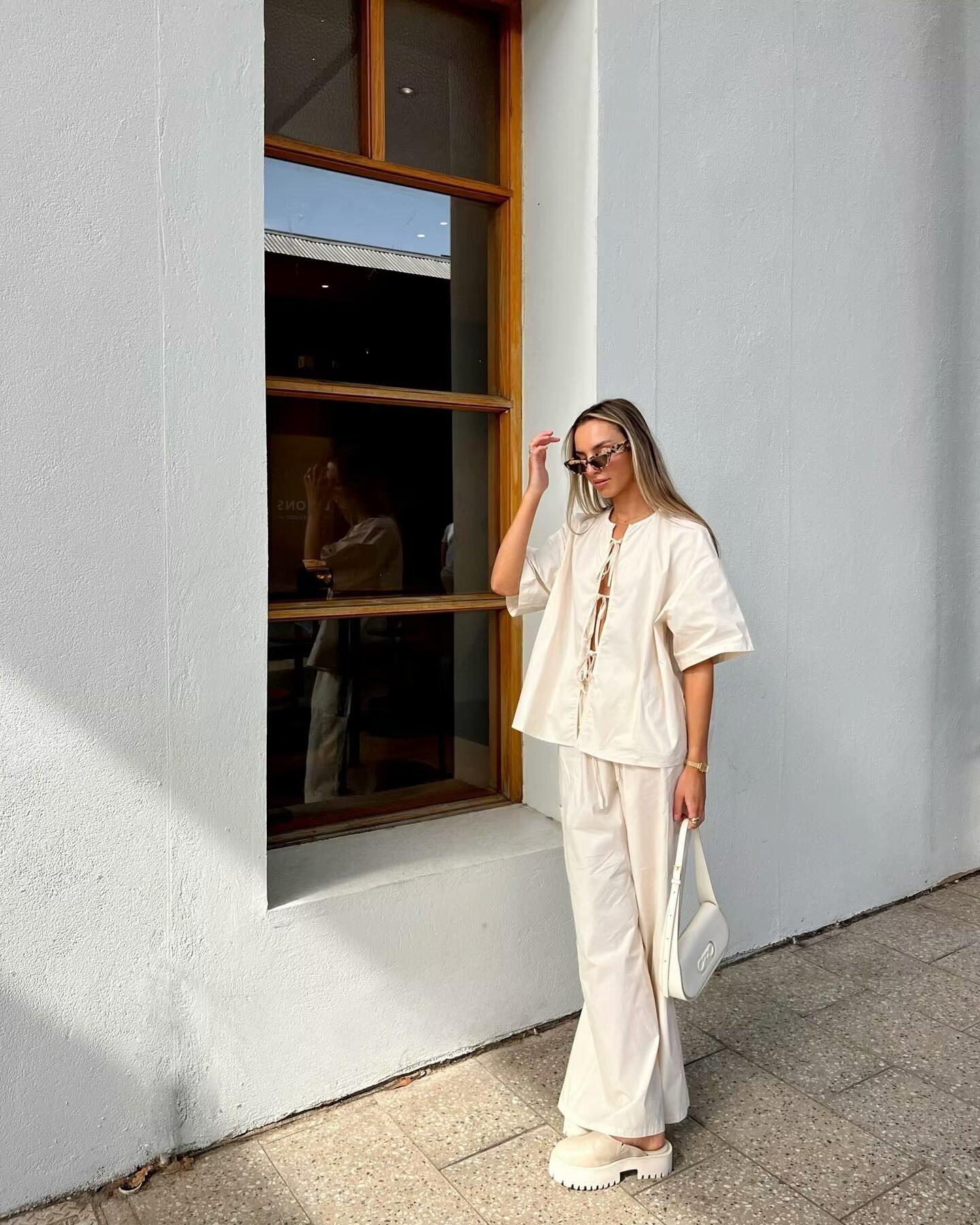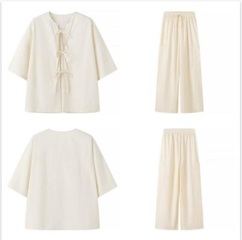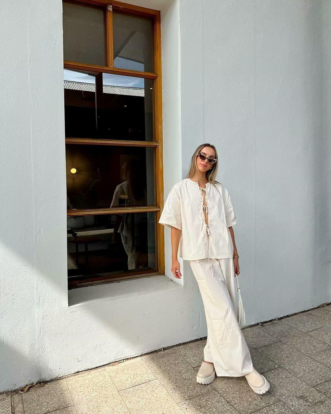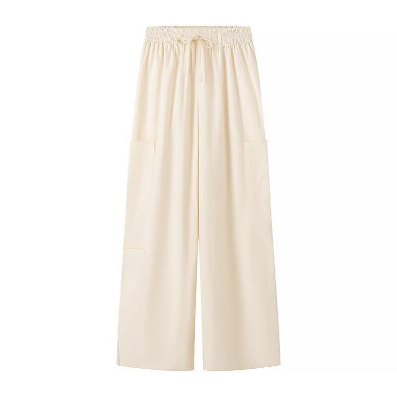 2024 Verano Nuevo Moda Europea y Americana Transfronteriza para Mujer Top con Cordones + Set de Pantalones de Pierna Ancha w091 1963