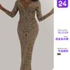 Novedad Otoño e Invierno 2025 Exportación Ropa Europea y Americana Ajustada Cuello en V Bronceado Manga Larga Ajustado Sexy Falda Larga Vestido de Noche