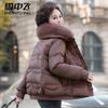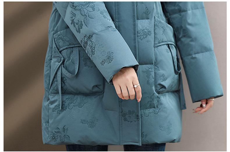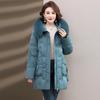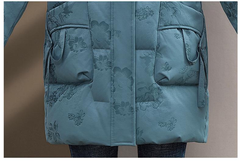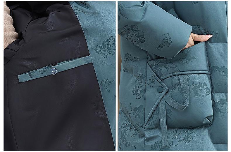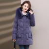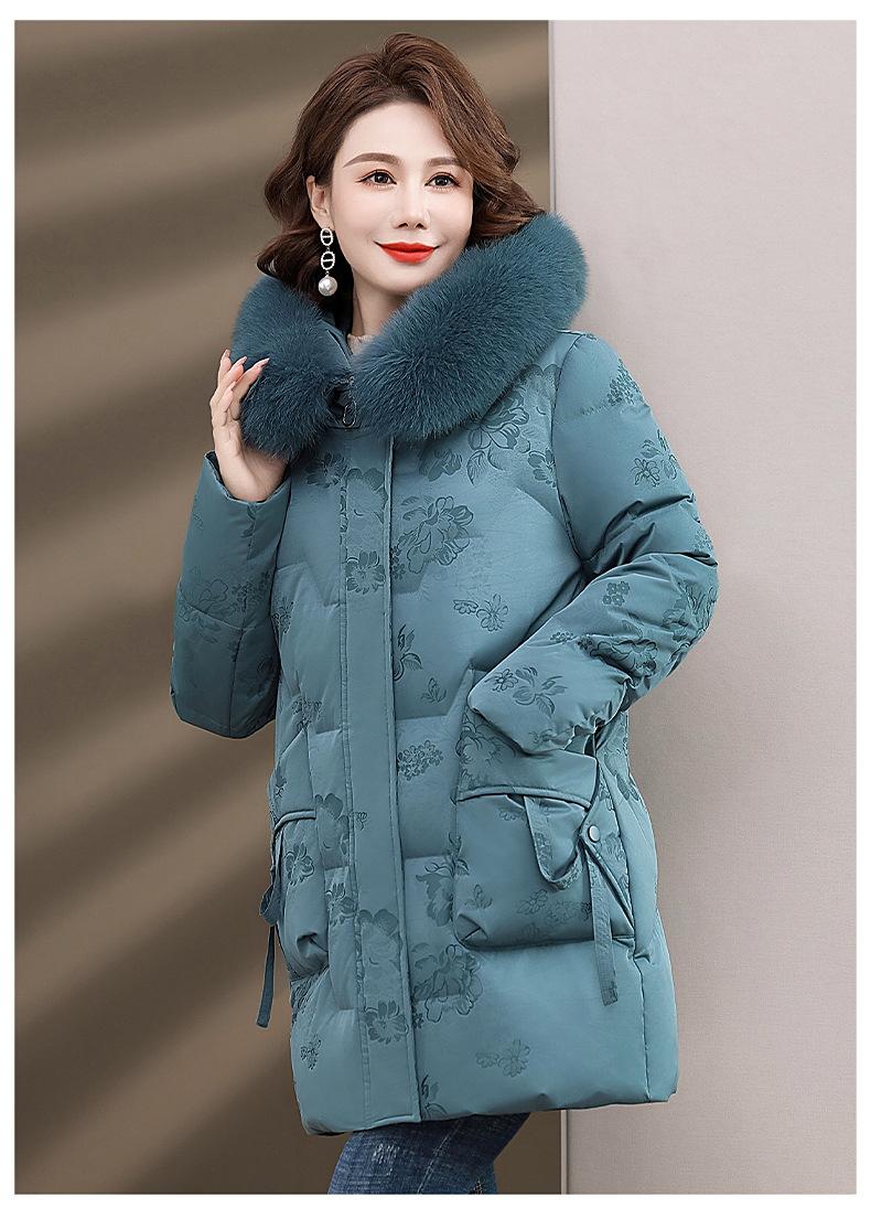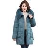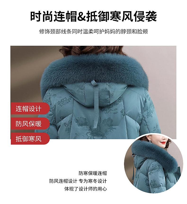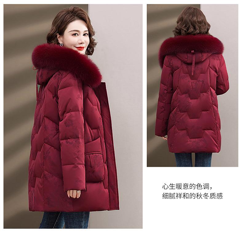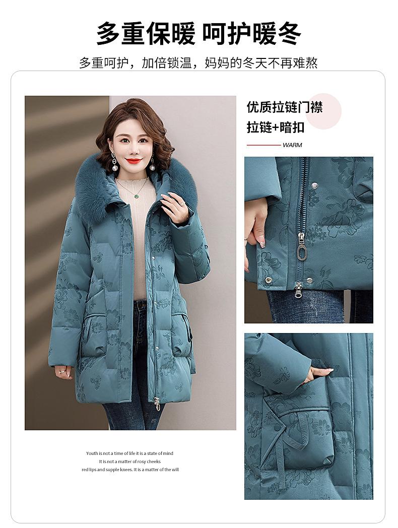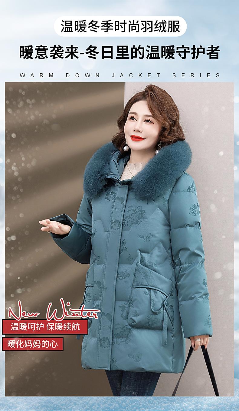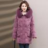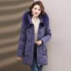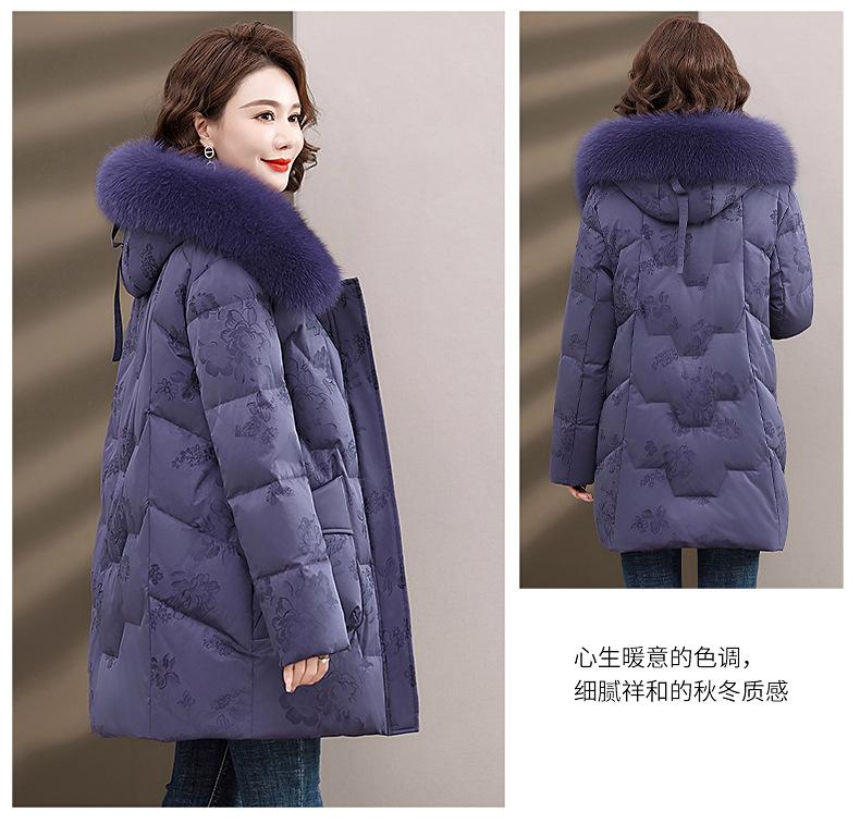 Chaqueta de plumón esponjosa mediana-larga de invierno para madre Cuello de piel de zorro real Cortavientos estilo occidental Ropa para mujeres de mediana edad y ancianas Plumón de pato blanco