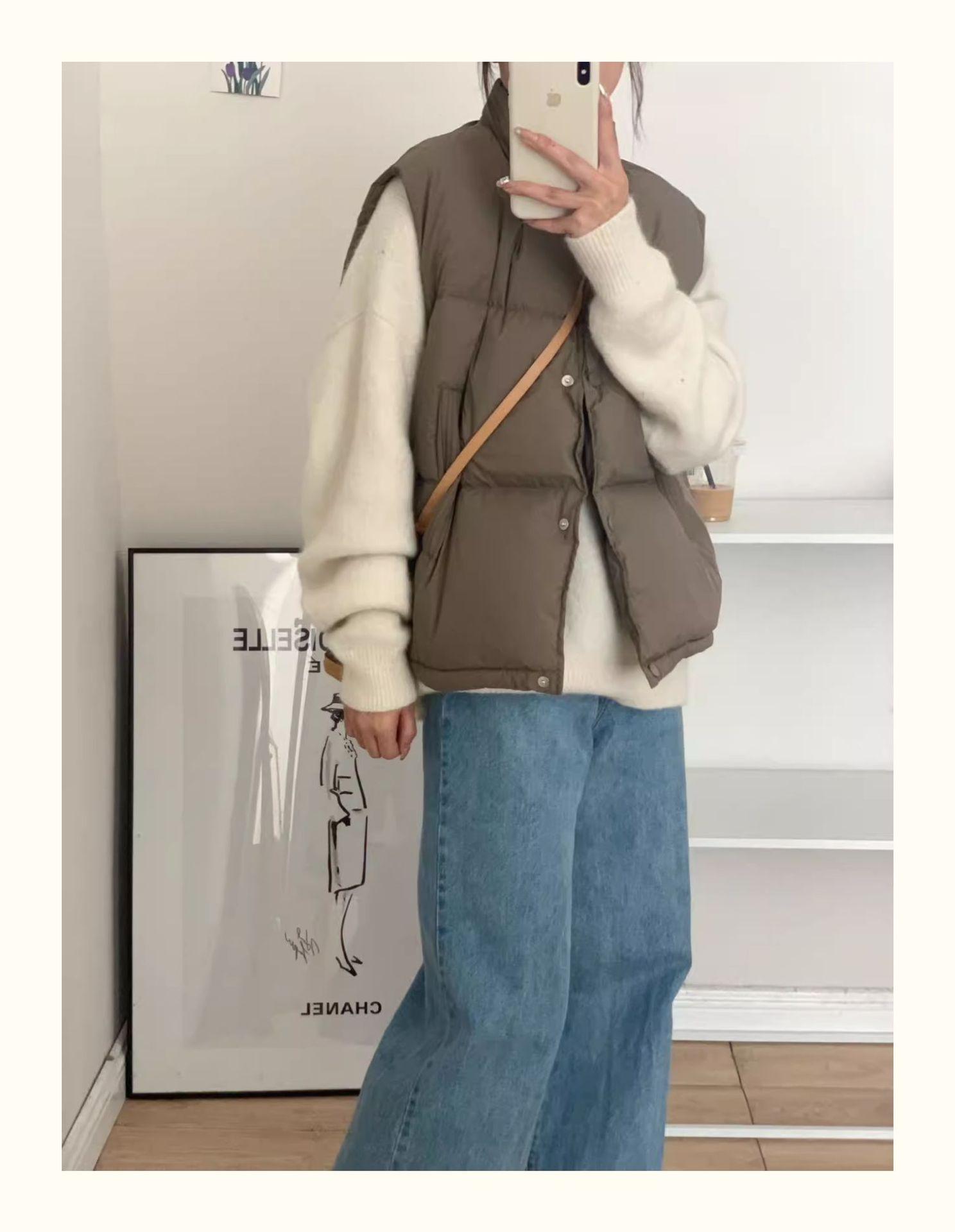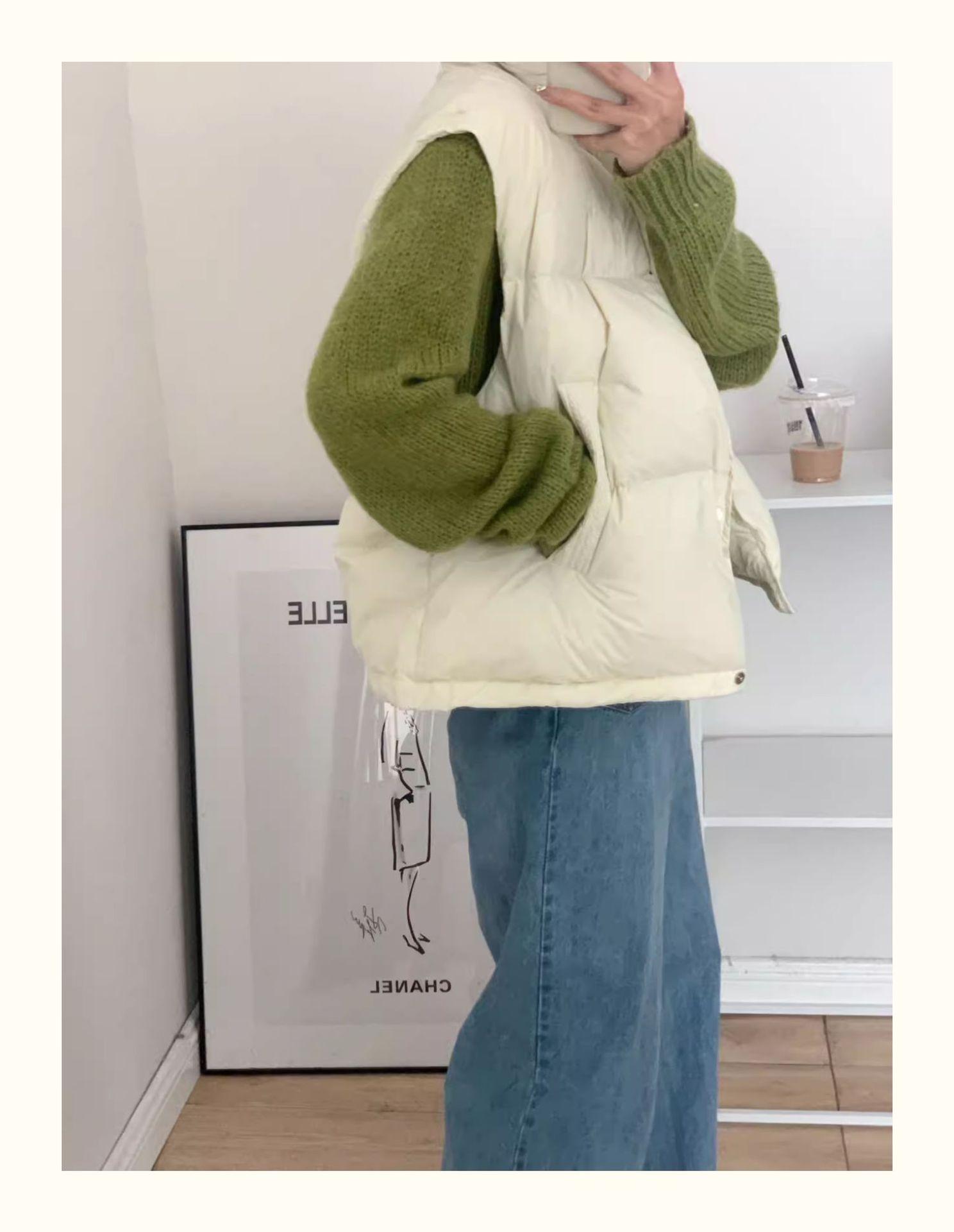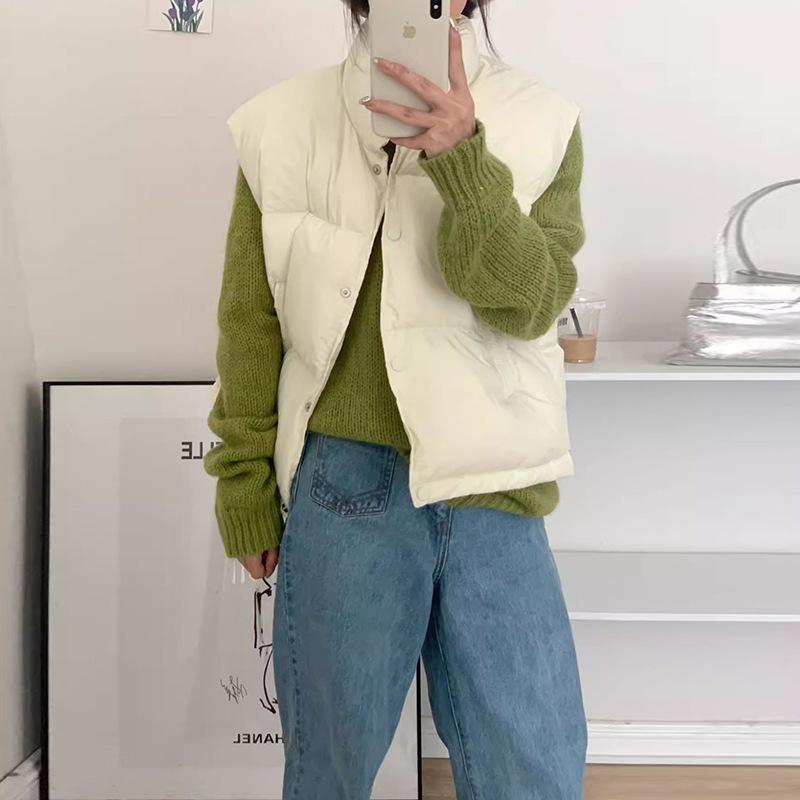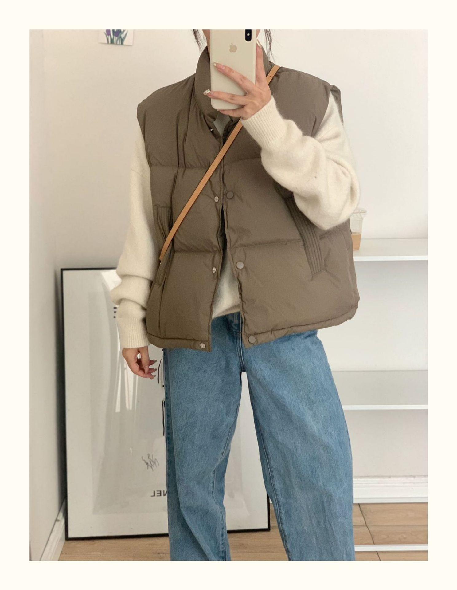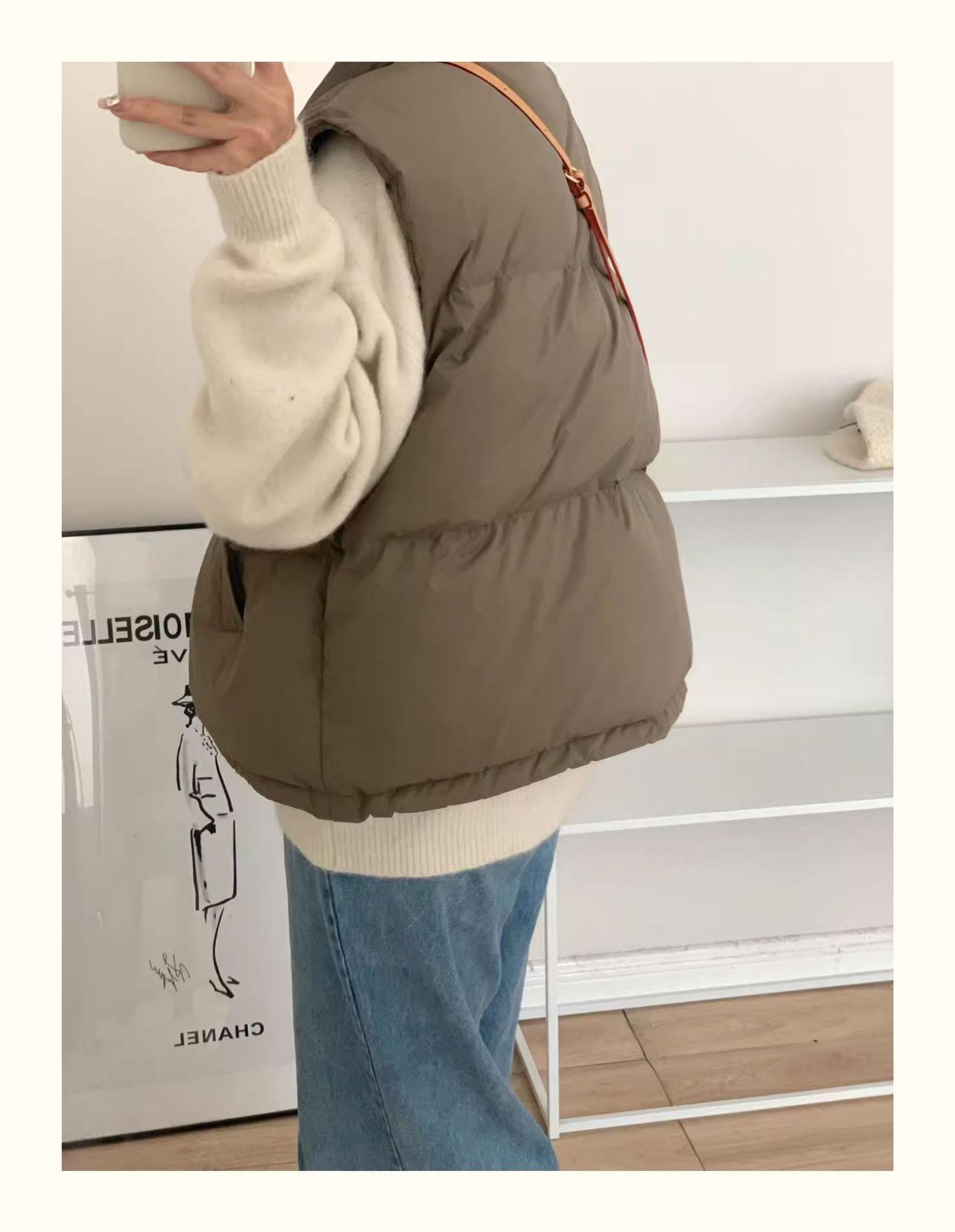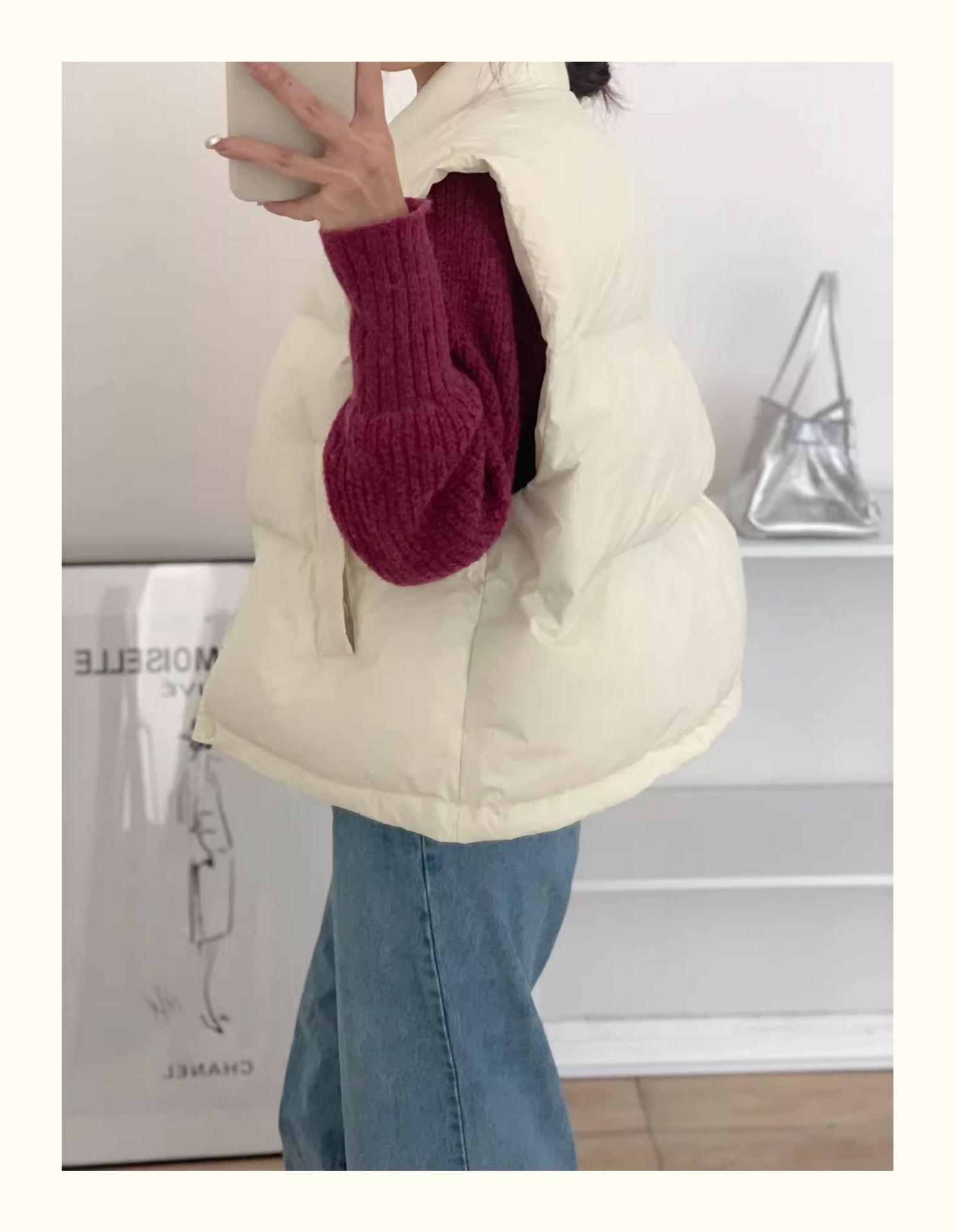 Chaleco de plumón estilo coreano para mujer Invierno Nueva moda Cuello alto Cálido Ropa exterior Chaleco dulce pequeño