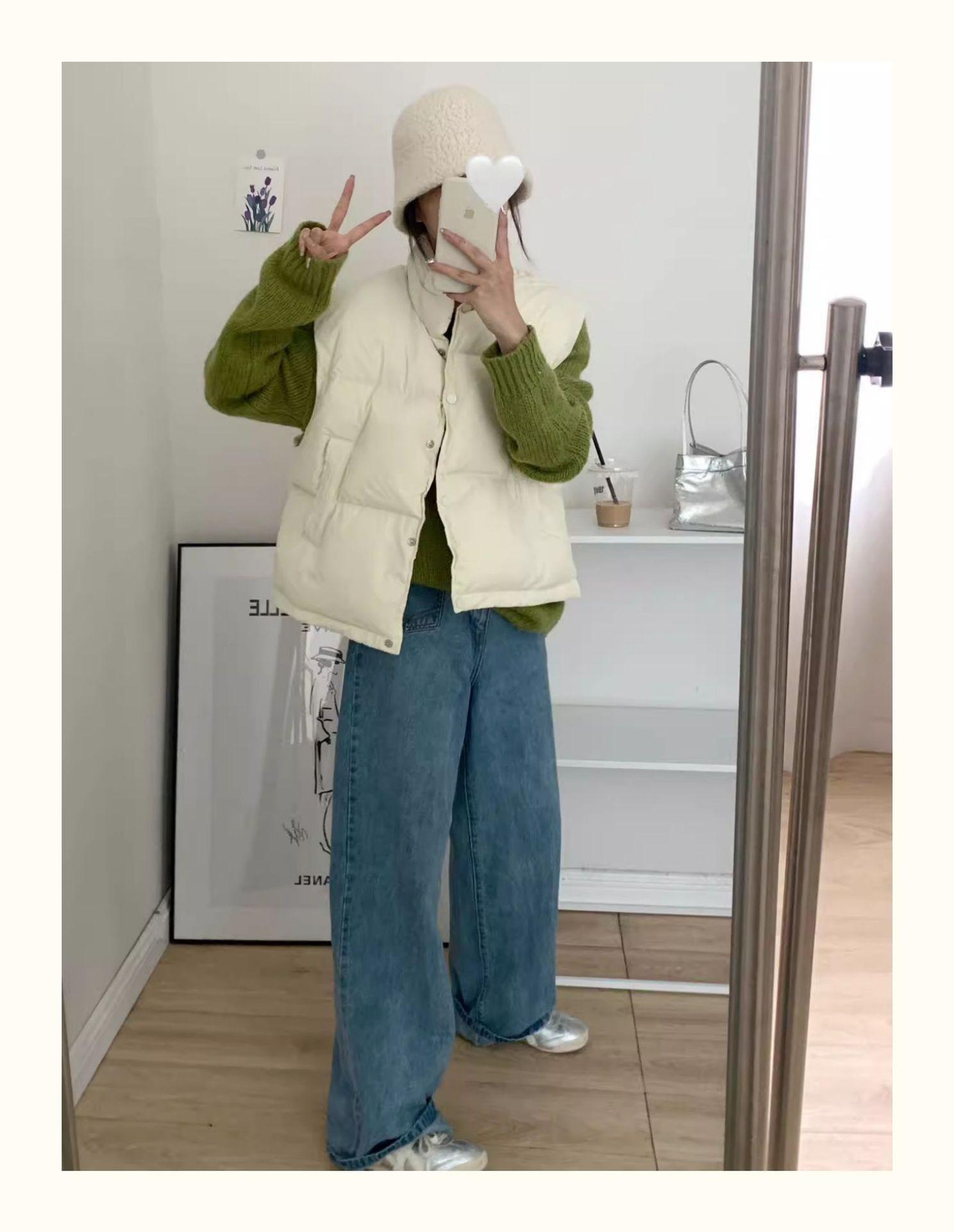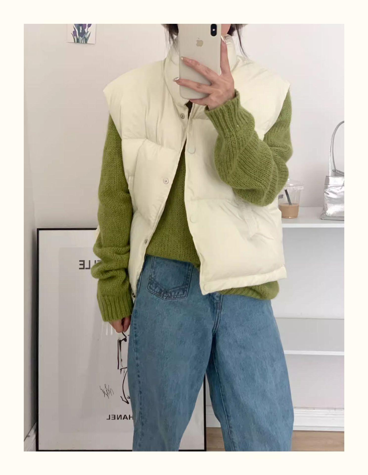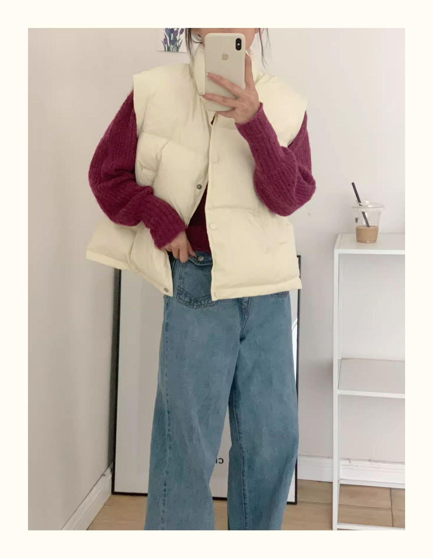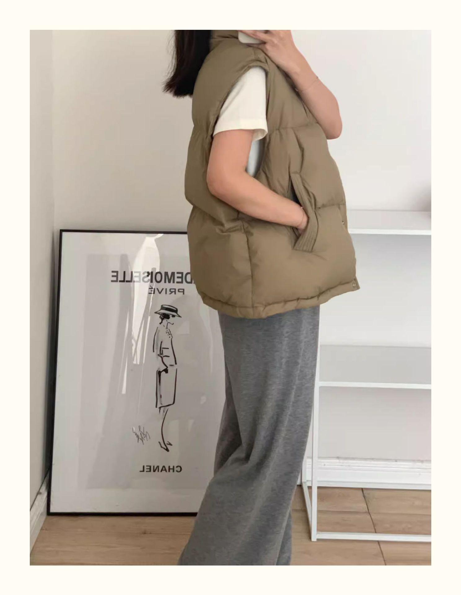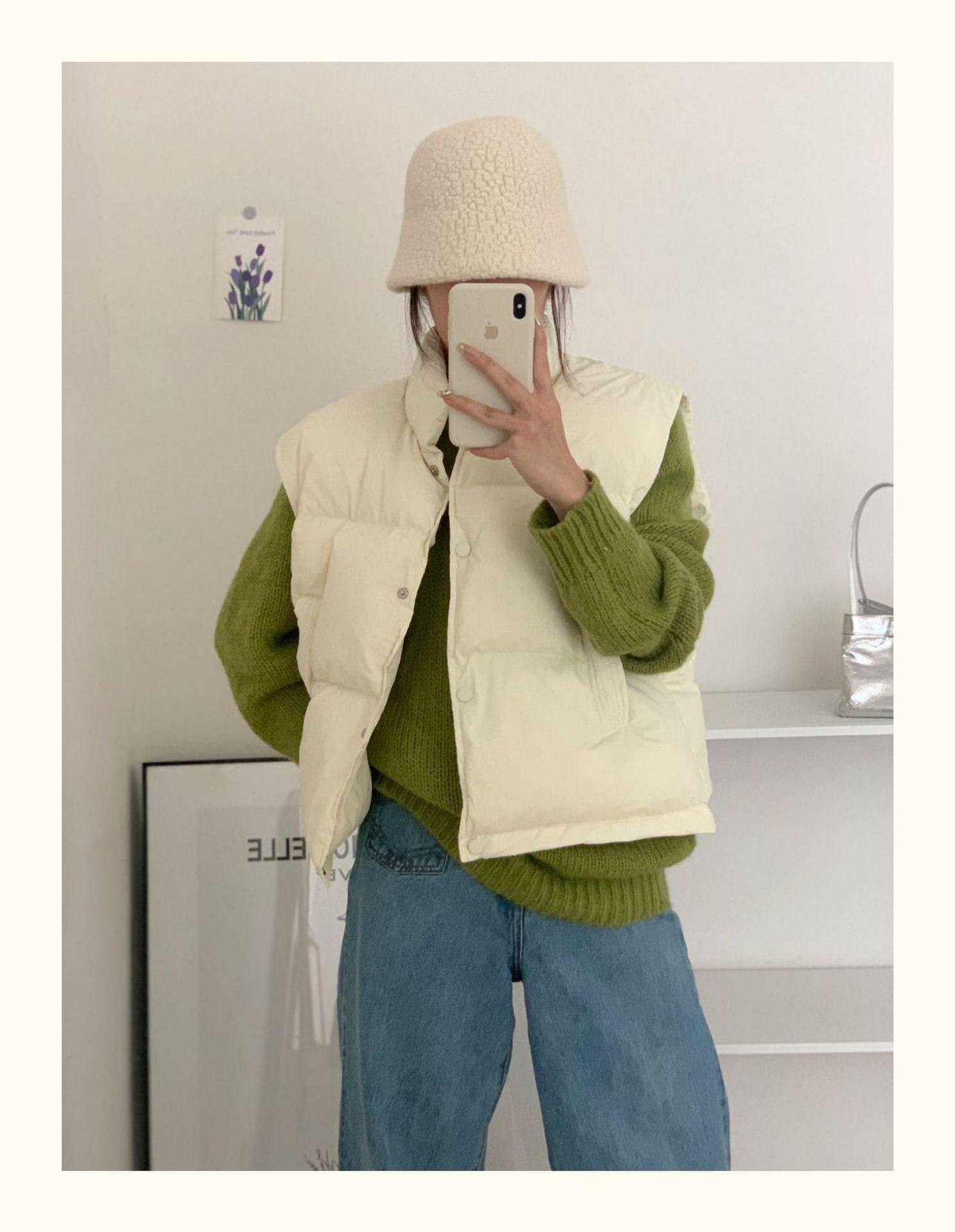 Chaleco de plumón estilo coreano para mujer Invierno Nueva moda Cuello alto Cálido Ropa exterior Chaleco dulce pequeño