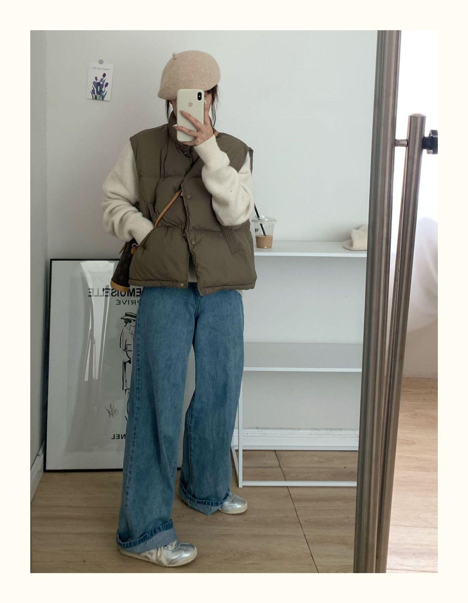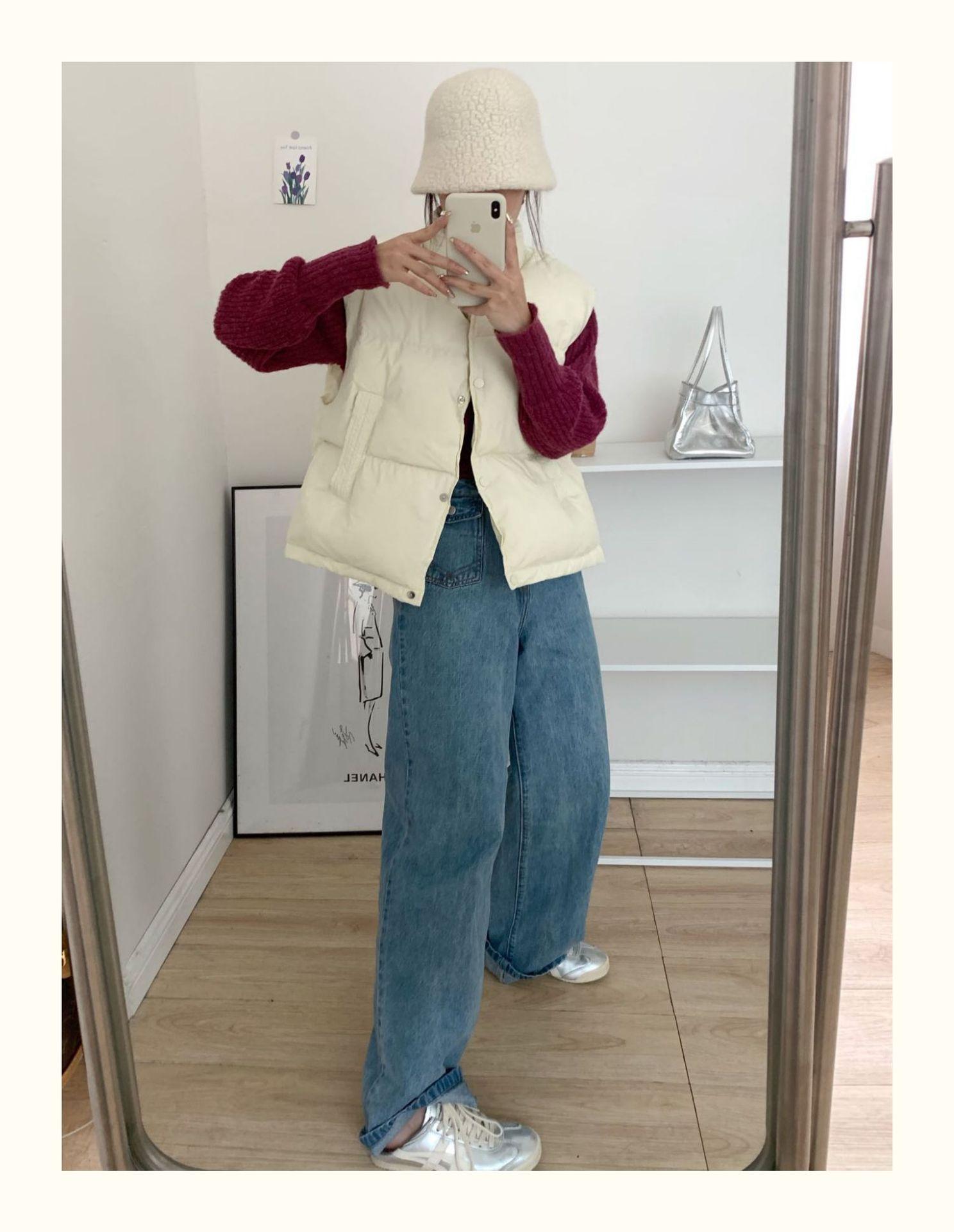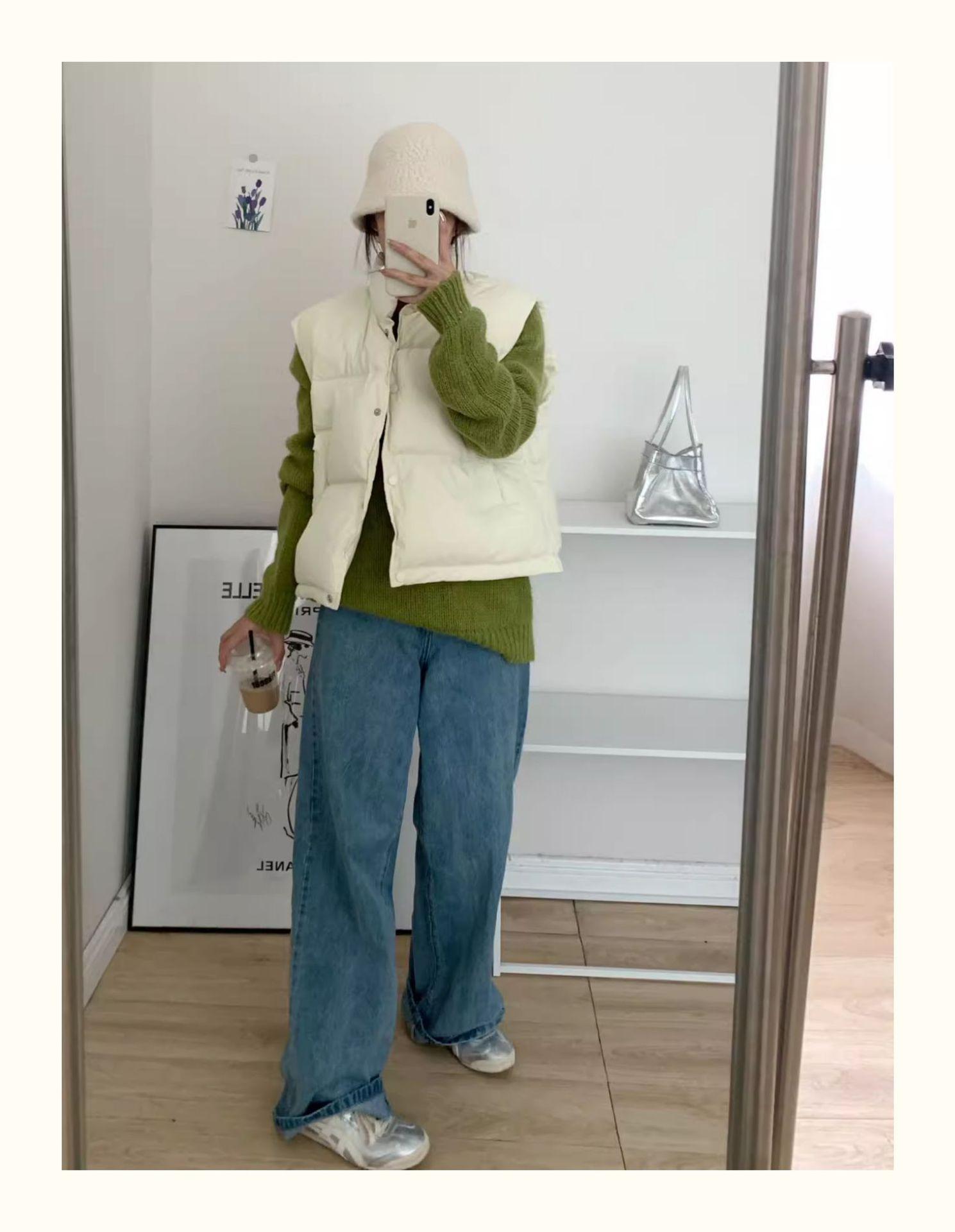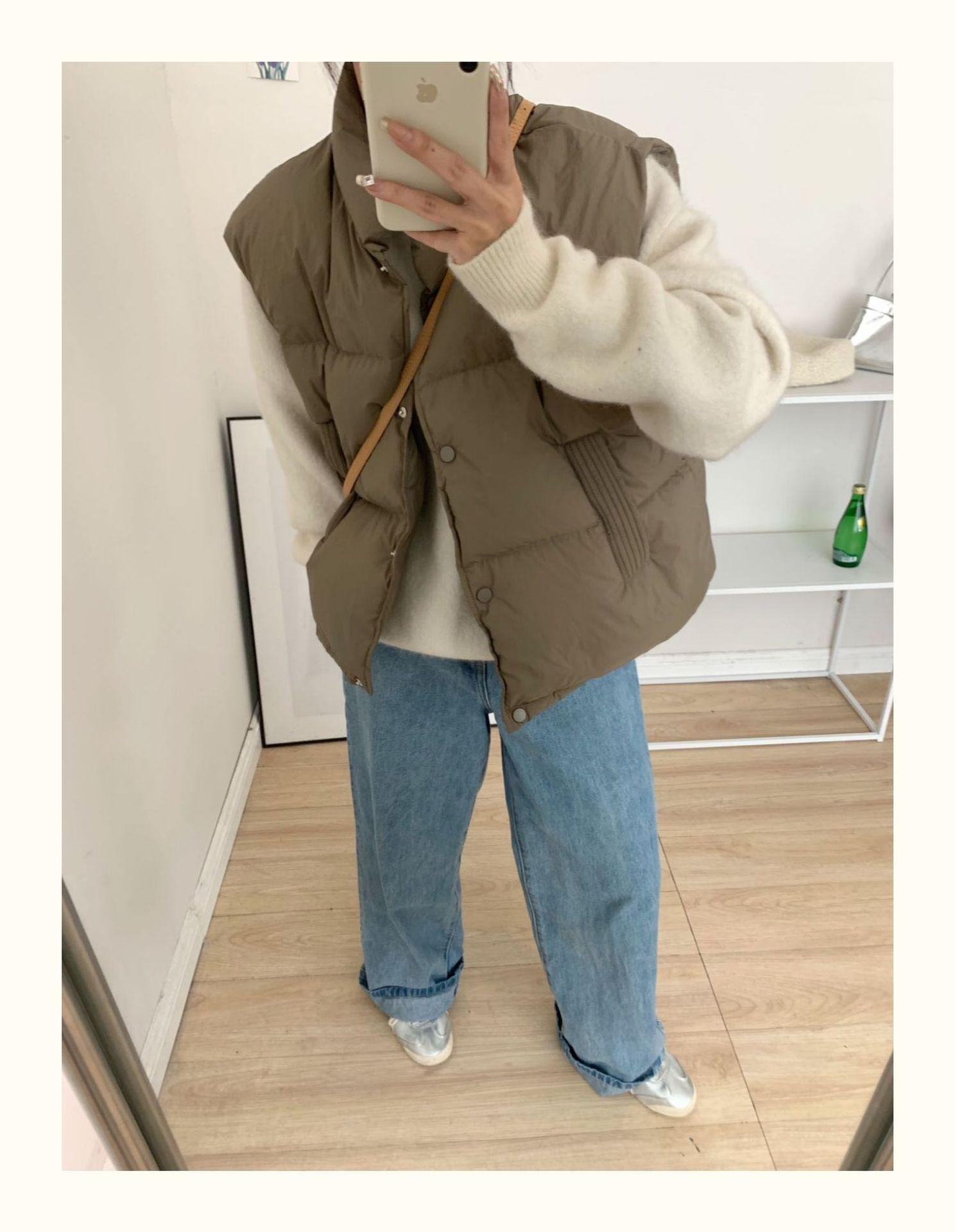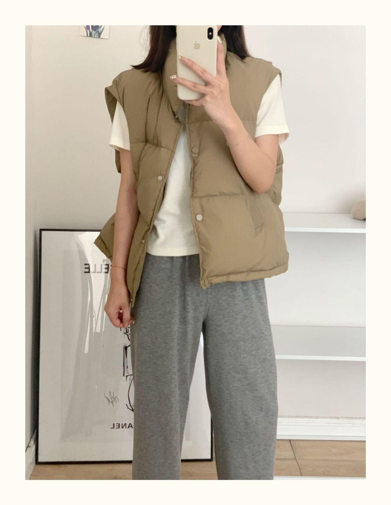 Chaleco de plumón estilo coreano para mujer Invierno Nueva moda Cuello alto Cálido Ropa exterior Chaleco dulce pequeño