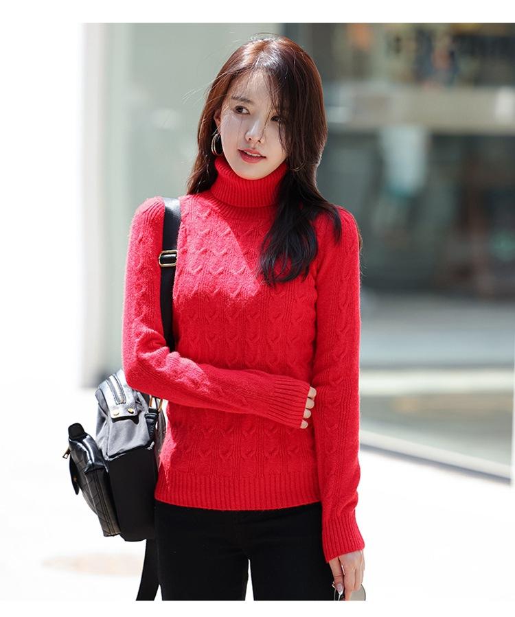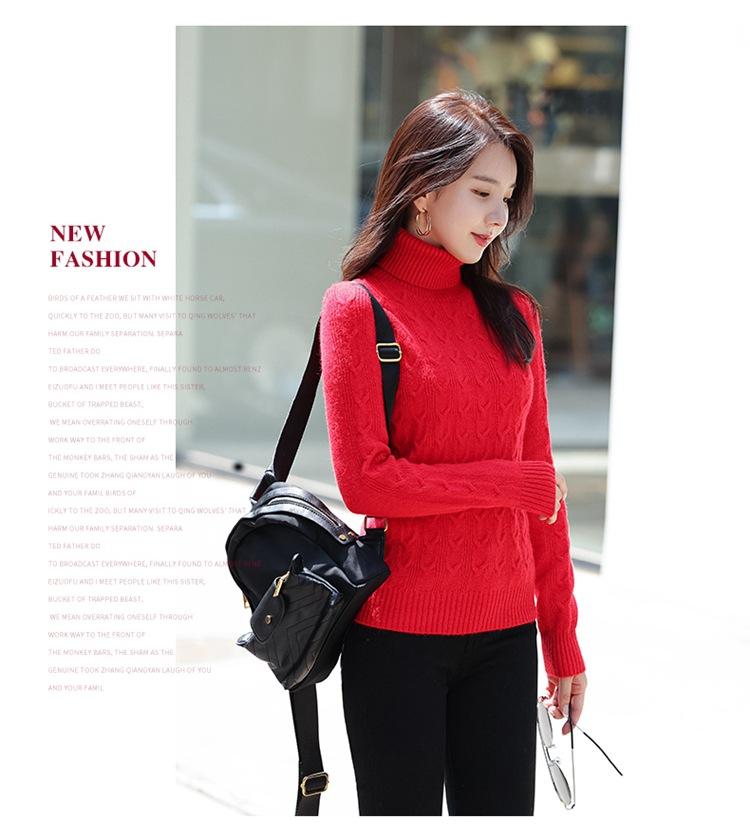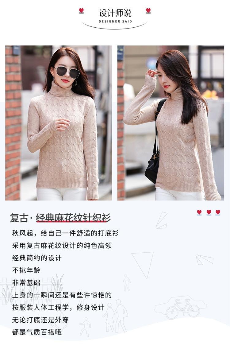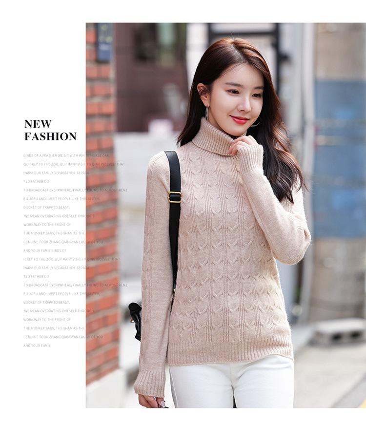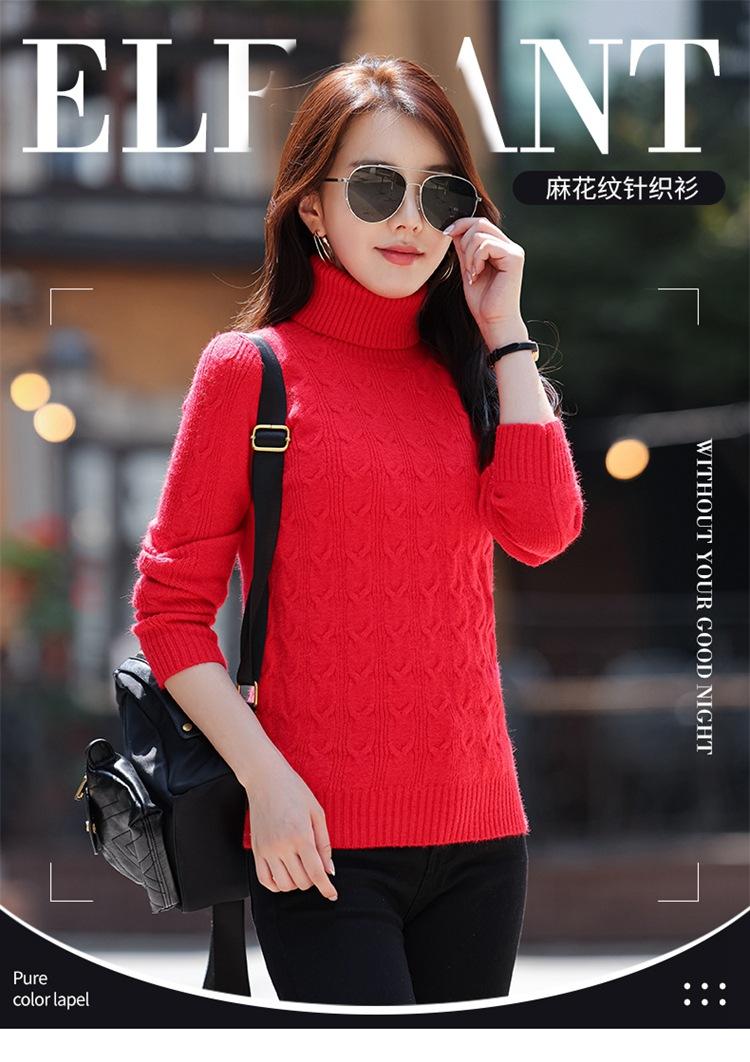 Gran Venta 2025 Primavera Cuello Alto Patrón Cáñamo Jersey Cálido y Engrosado Estilo Coreano Slim Ropa de Punto para Fondo 3136-1