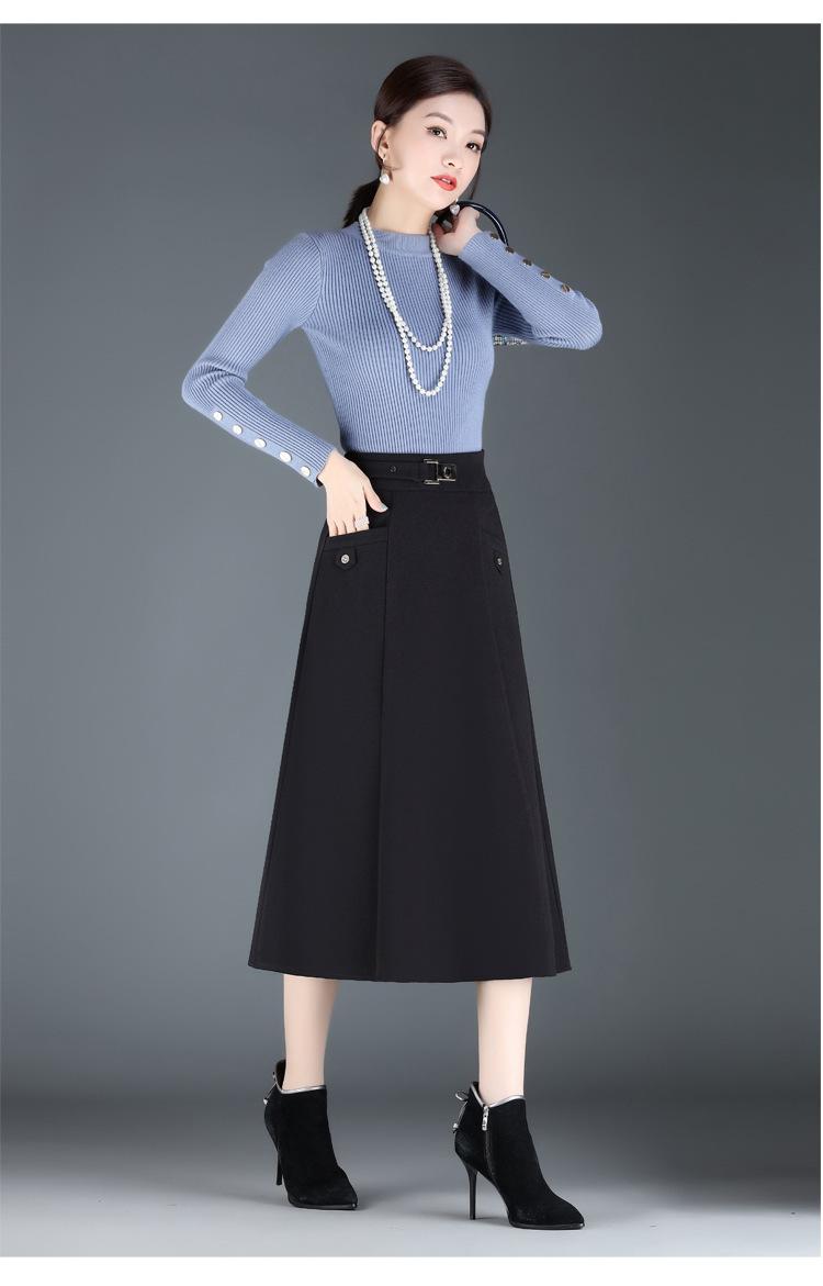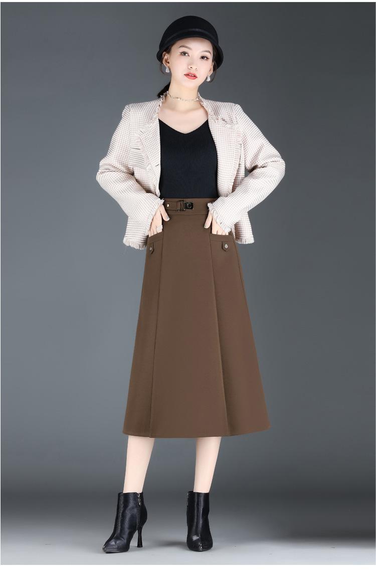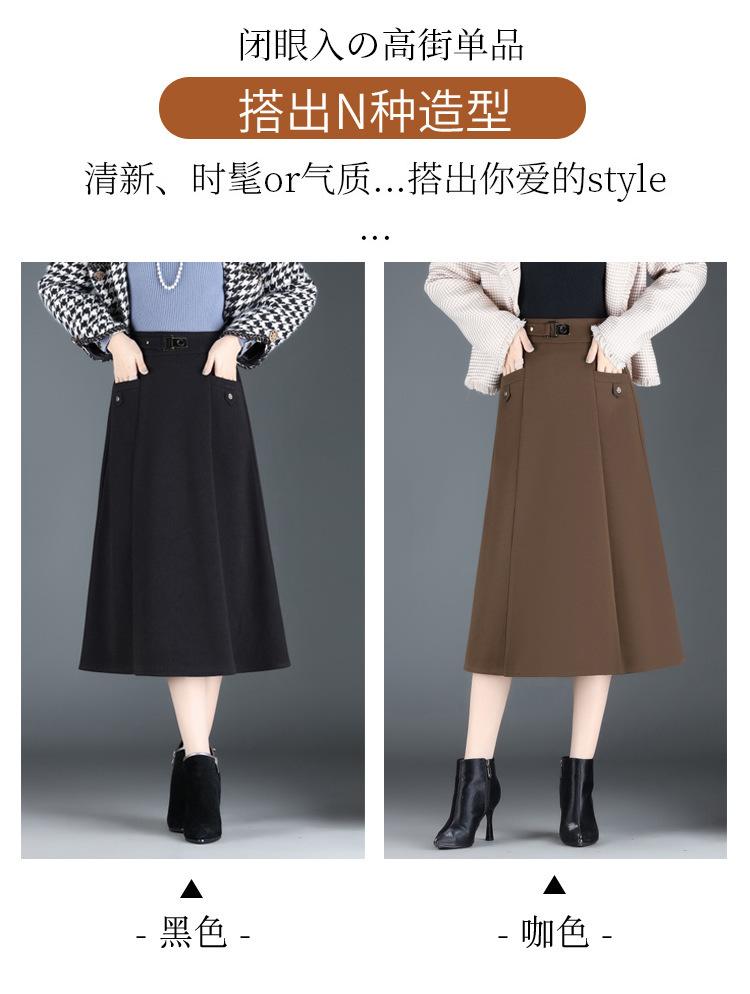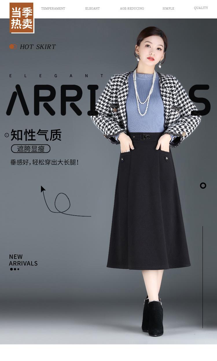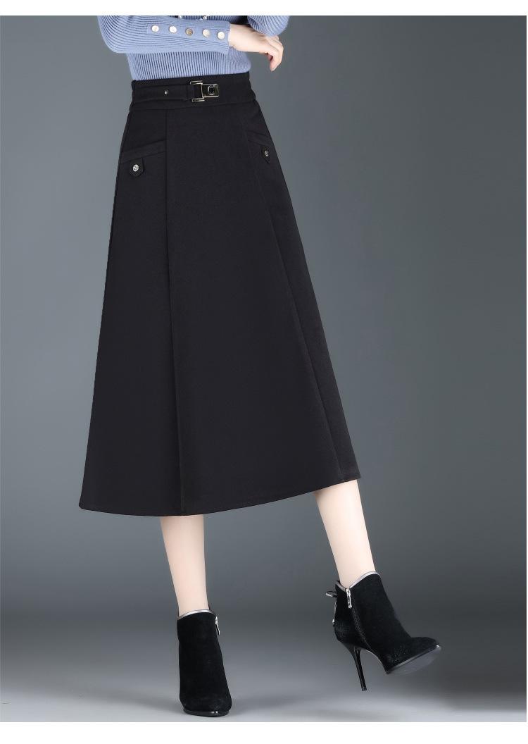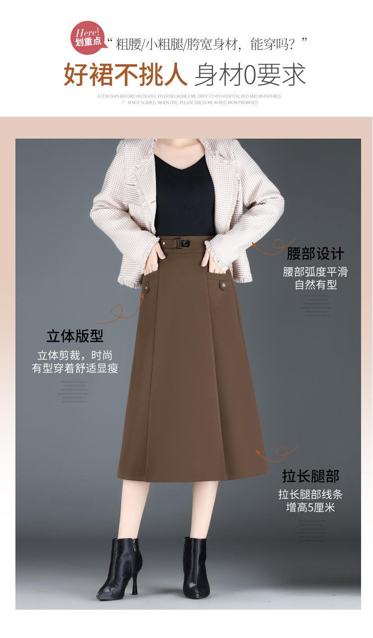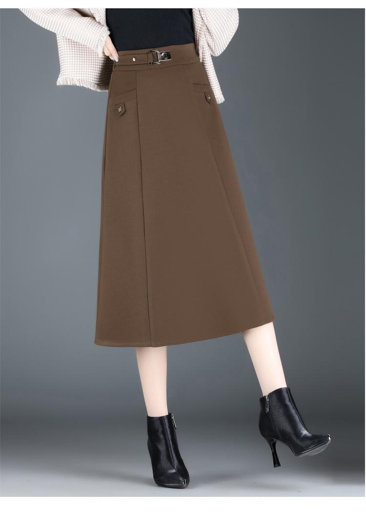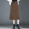 Elegante Falda A de Lana para Mujer para Otoño e Invierno 2025, Nueva, de Cintura Alta, con Corte Adelgazante, Empalmada, Plisada, de Largo Medio