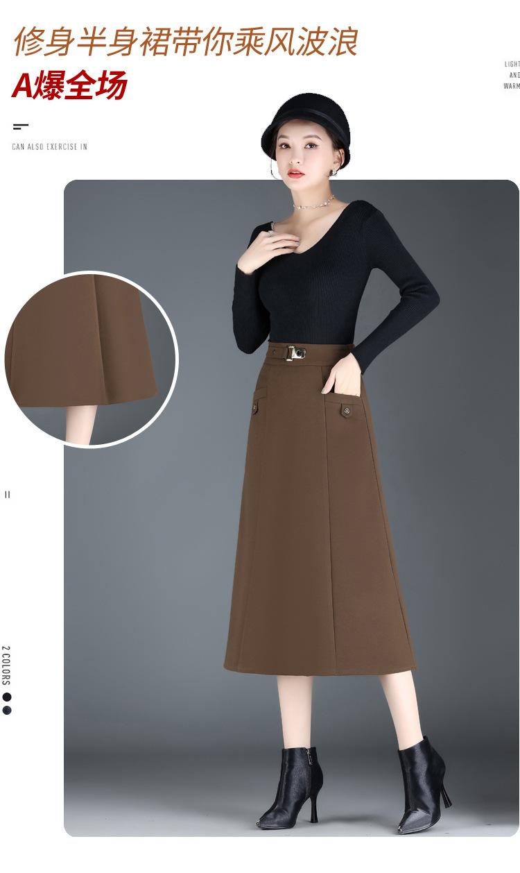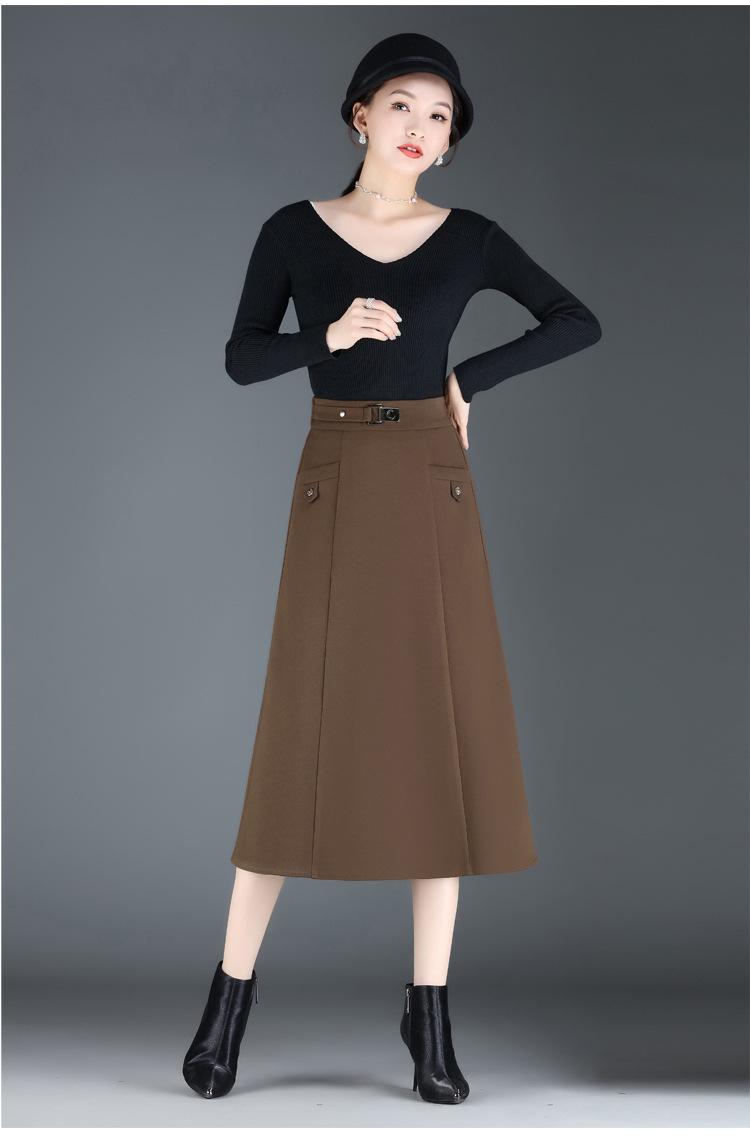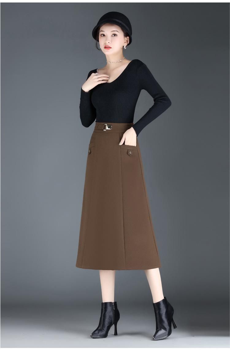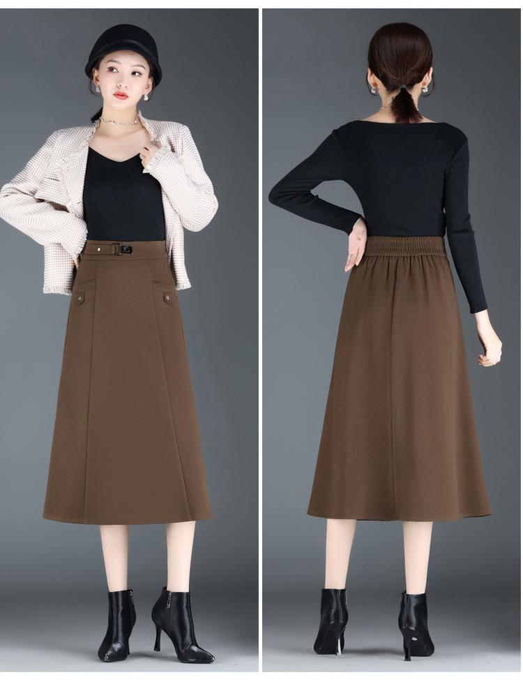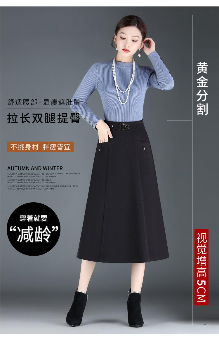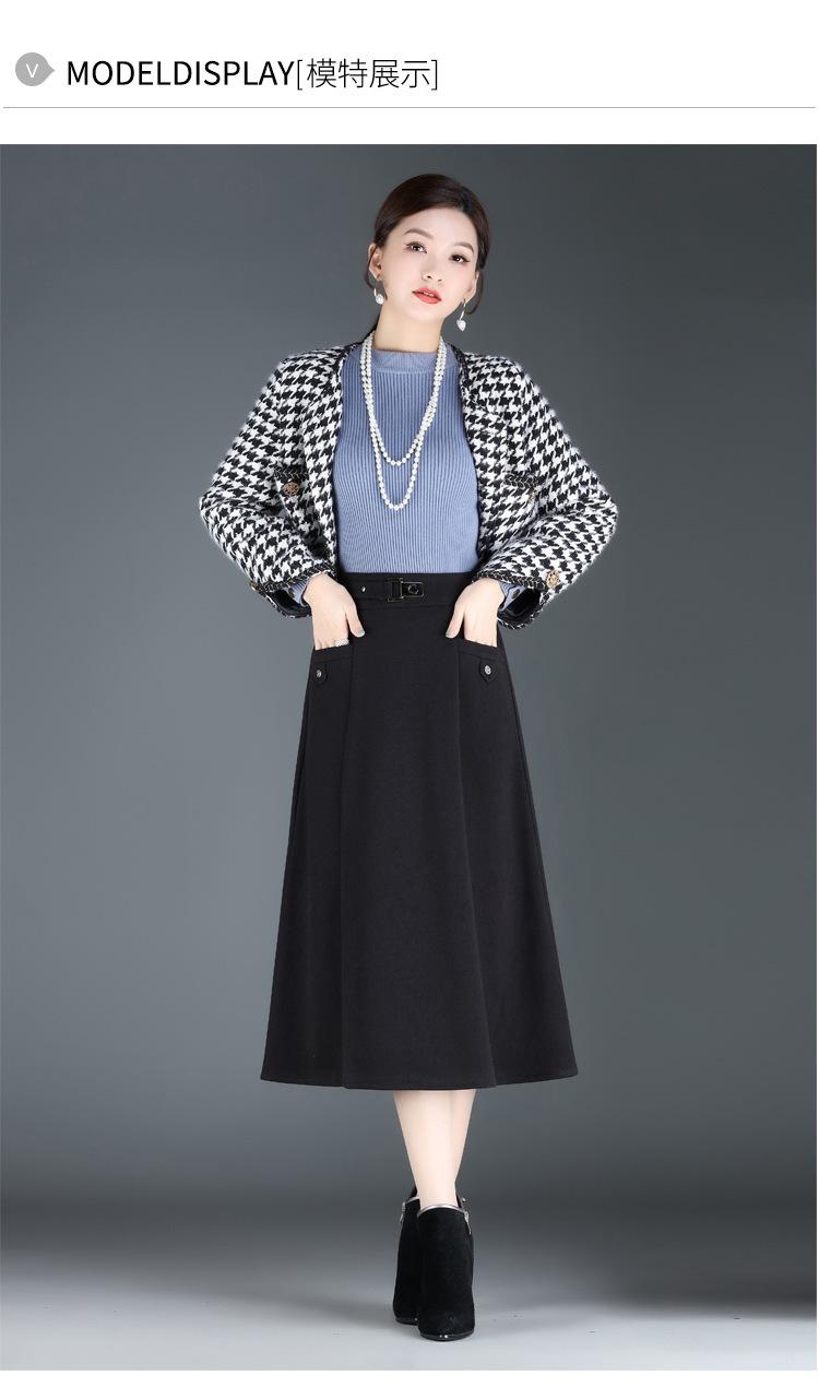 Elegante Falda A de Lana para Mujer para Otoño e Invierno 2025, Nueva, de Cintura Alta, con Corte Adelgazante, Empalmada, Plisada, de Largo Medio