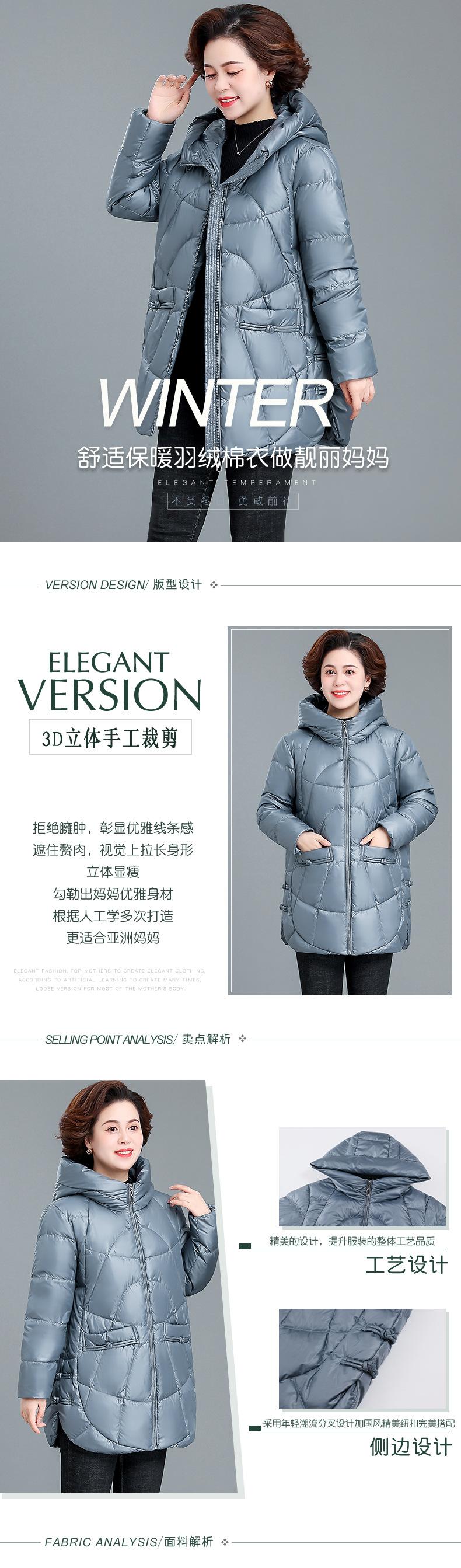 Abrigo acolchado de algodón de plumón de invierno para madres, abrigo acolchado de algodón de longitud media para otoño e invierno para mujeres de mediana edad y mayores, abrigo acolchado de algodón de estilo occidental de talla grande de 50 años.
