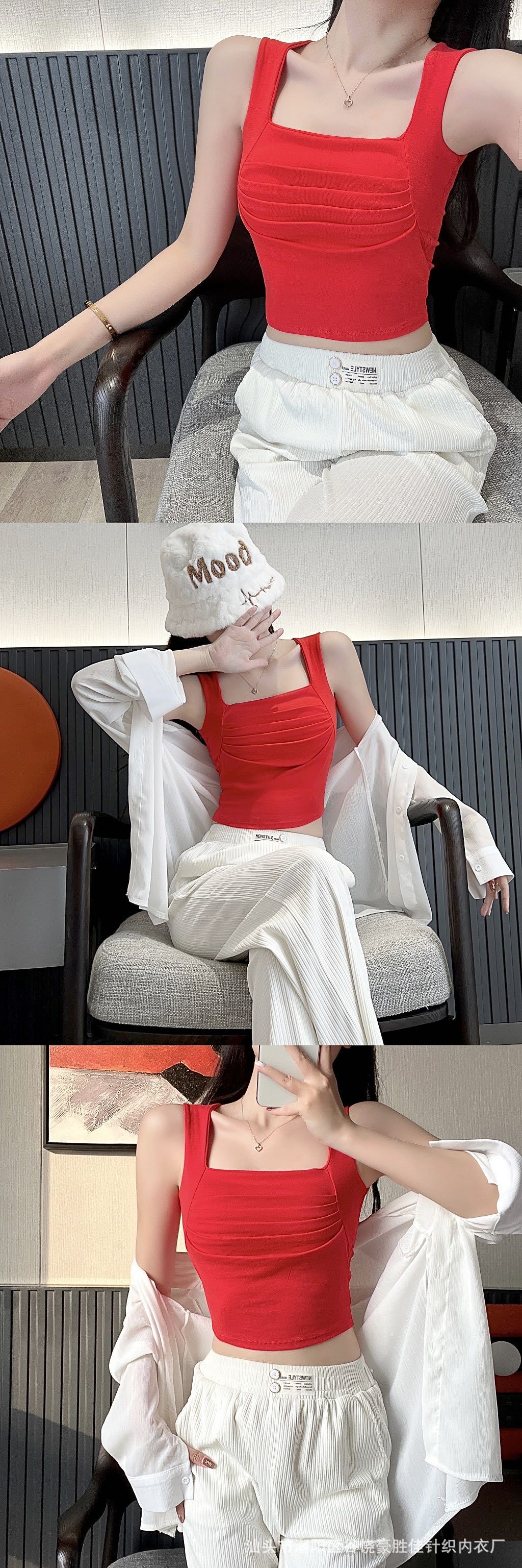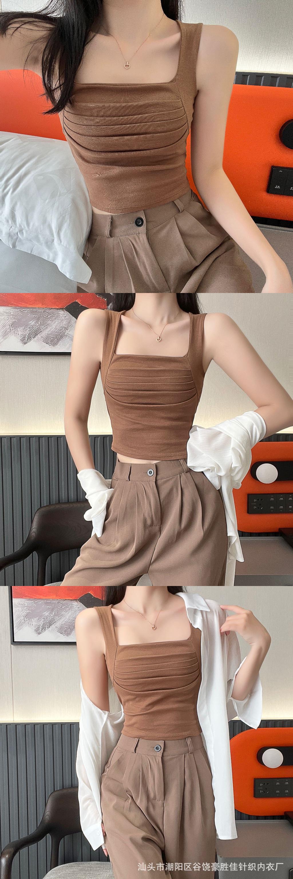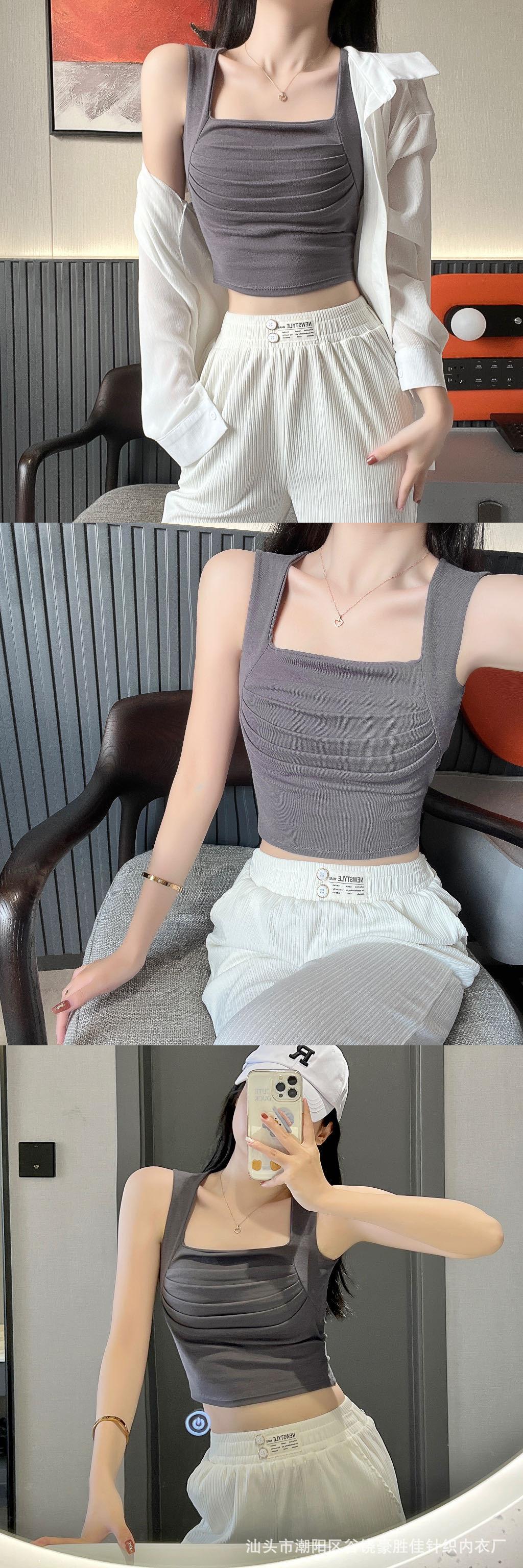 Chaleco deportivo corto con tirantes y diseño plisado para primavera y otoño con copa en el pecho, estilo Spice Girl, para mujer.