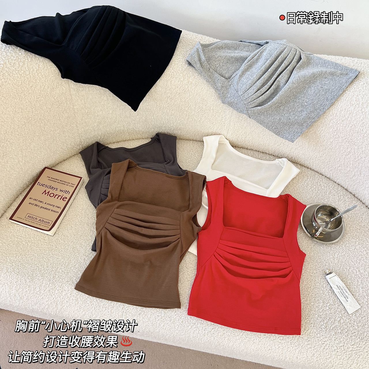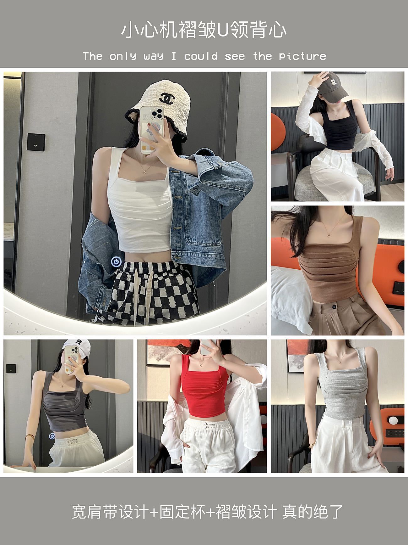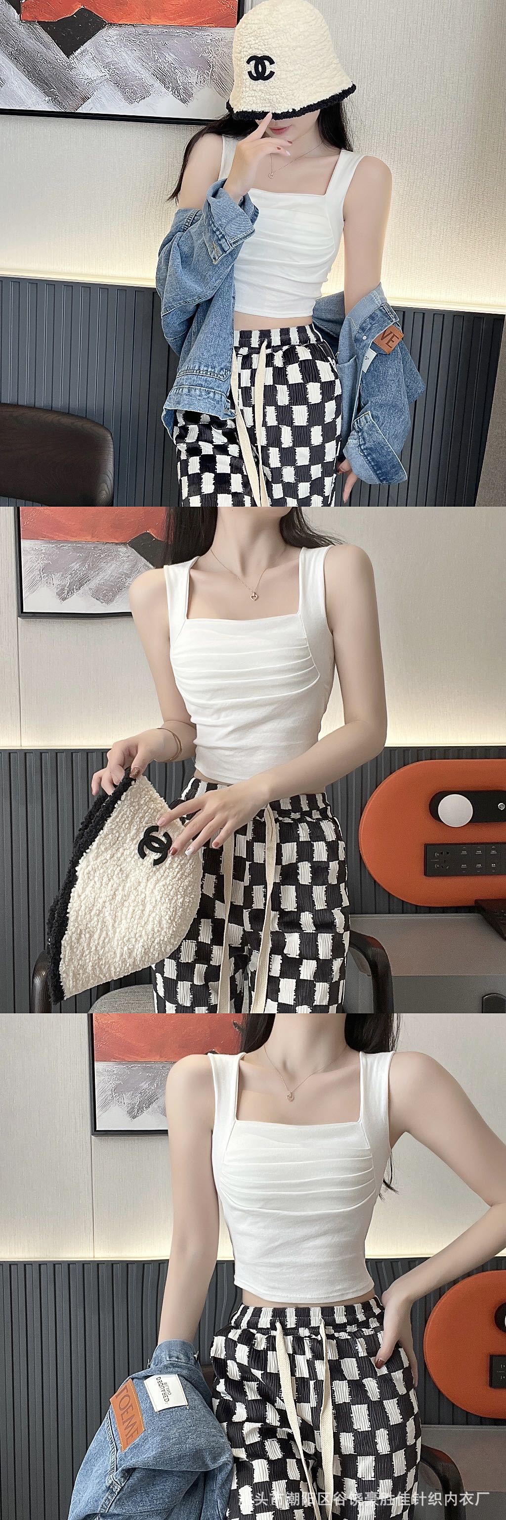 Chaleco deportivo corto con tirantes y diseño plisado para primavera y otoño con copa en el pecho, estilo Spice Girl, para mujer.