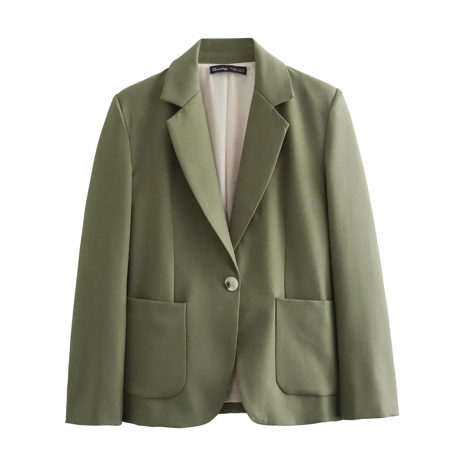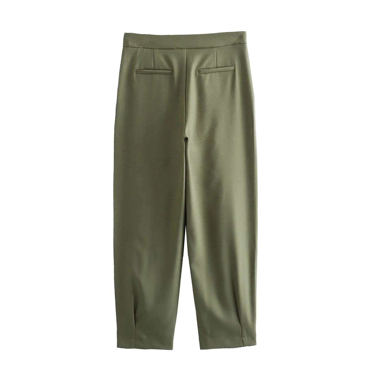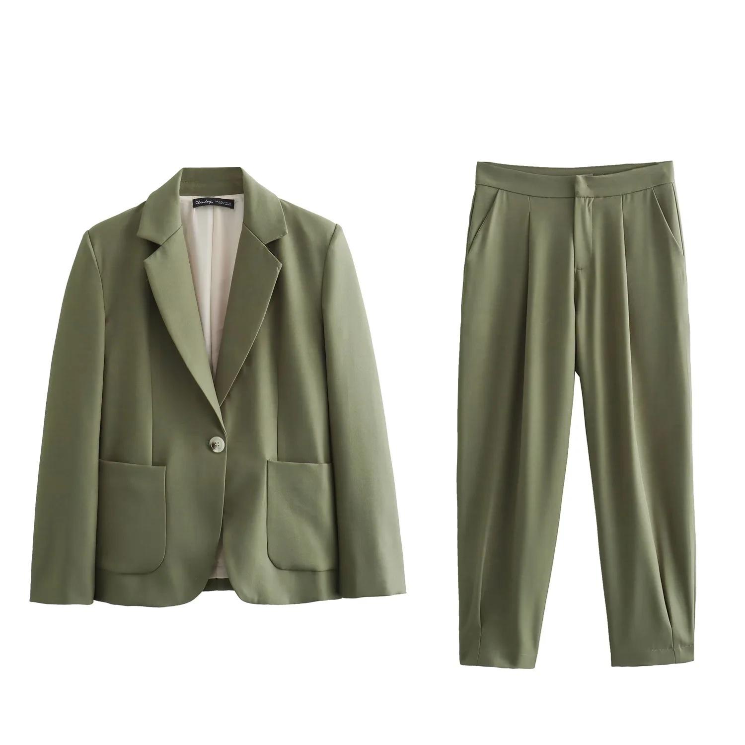 Conjunto de dos piezas de traje informal de dos botones y pantalón plisado de color liso para mujer, estilo europeo y americano