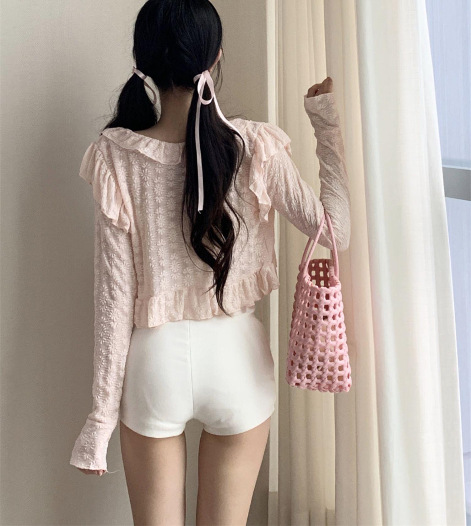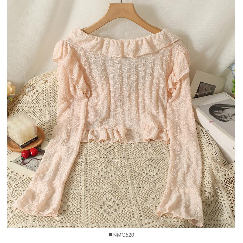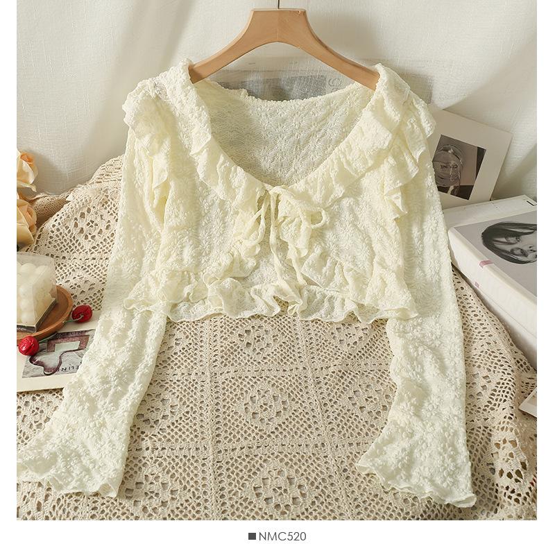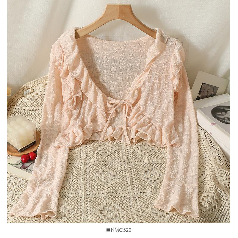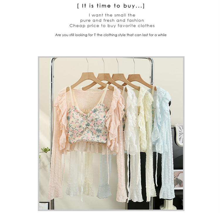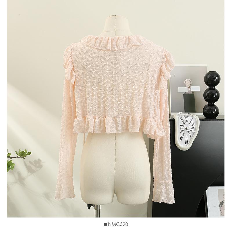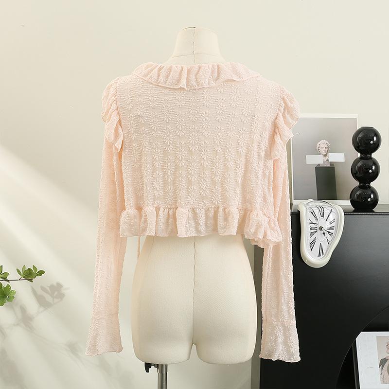 7736 Ruffled Cardigan-White, 7736 Ruffle Cardigan-apricot, 7736 Ruffled Cardigan-Pink, 7736 Ruffled Cardigan-Blue