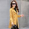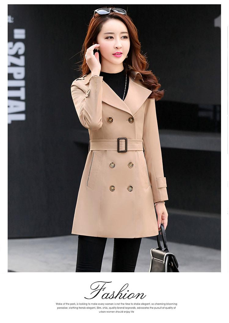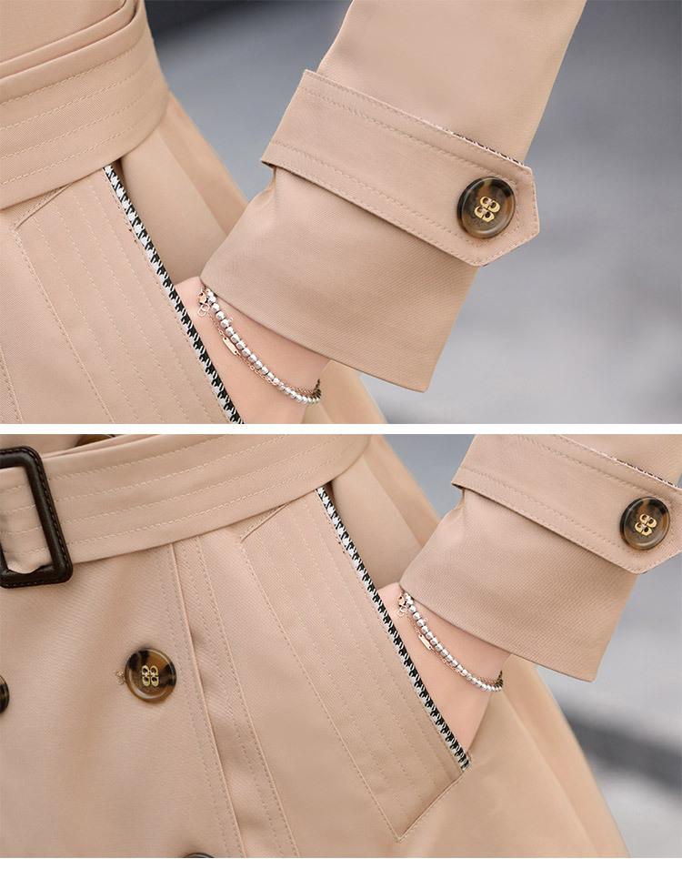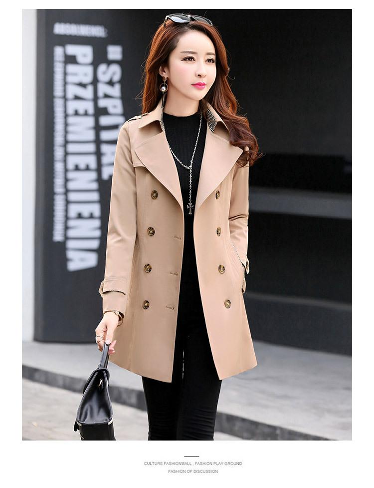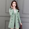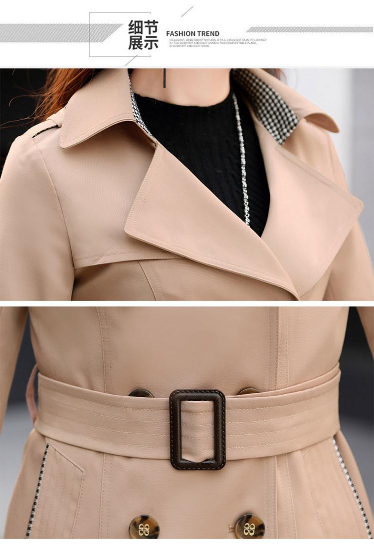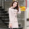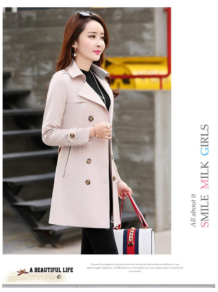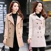 Abrigo Nuevo de Primavera y Otoño para Mujer Leche de Papaya Británico Entallado Adelgazante Doble Botonadura Cortavientos Abrigo de Mujer de Largo Medio