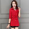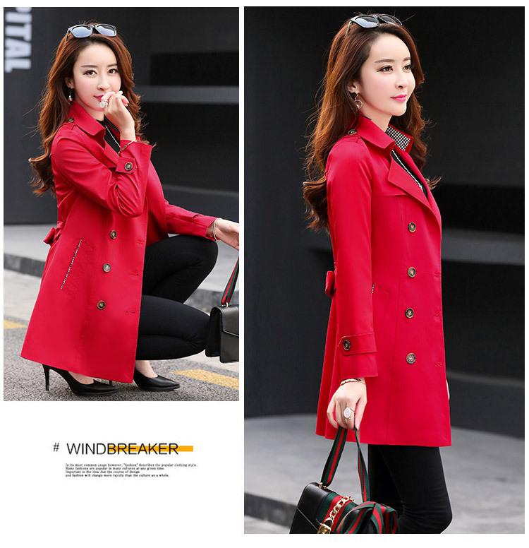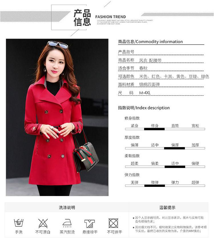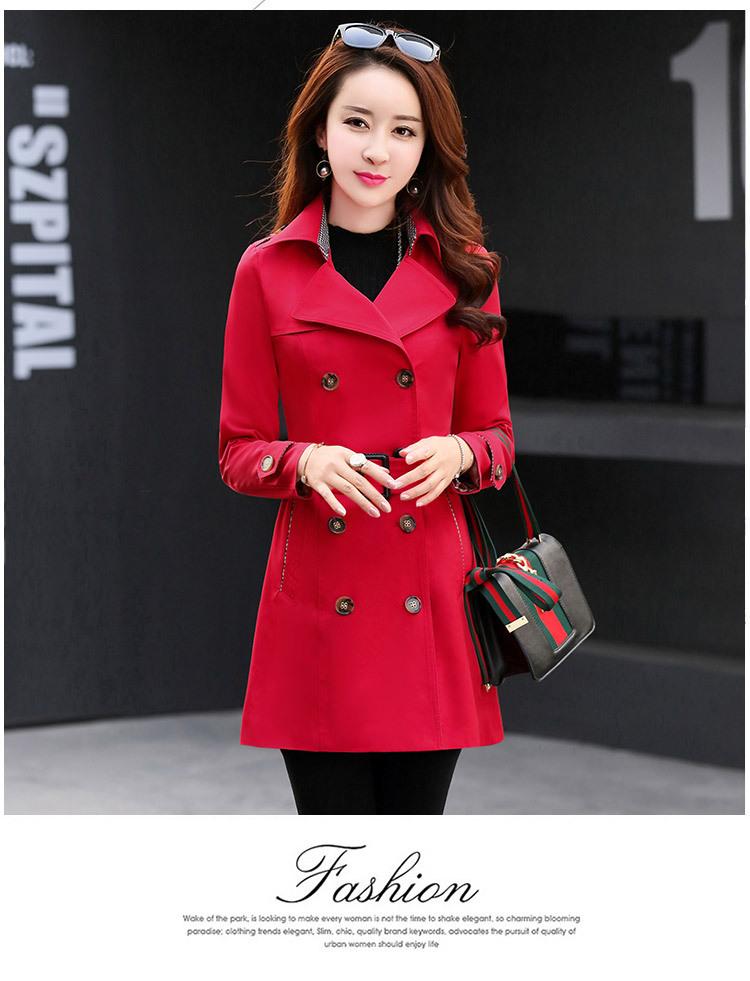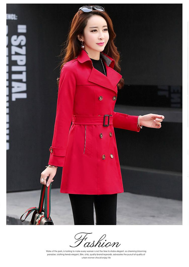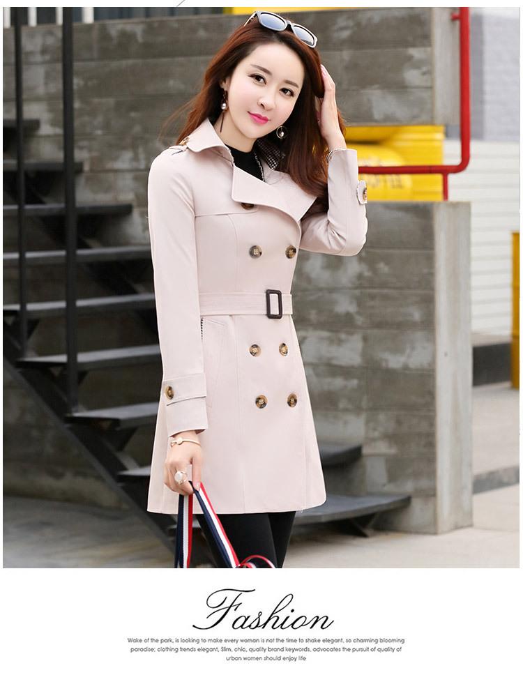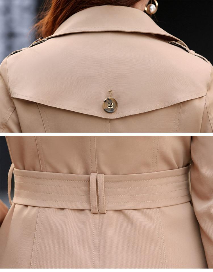 Abrigo Nuevo de Primavera y Otoño para Mujer Leche de Papaya Británico Entallado Adelgazante Doble Botonadura Cortavientos Abrigo de Mujer de Largo Medio