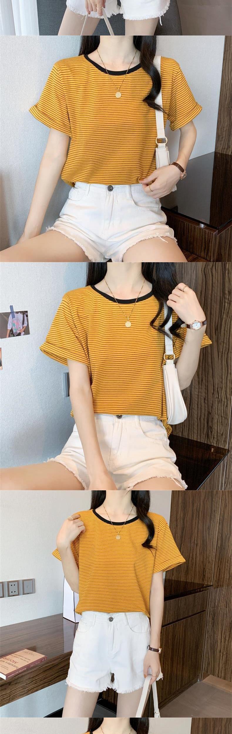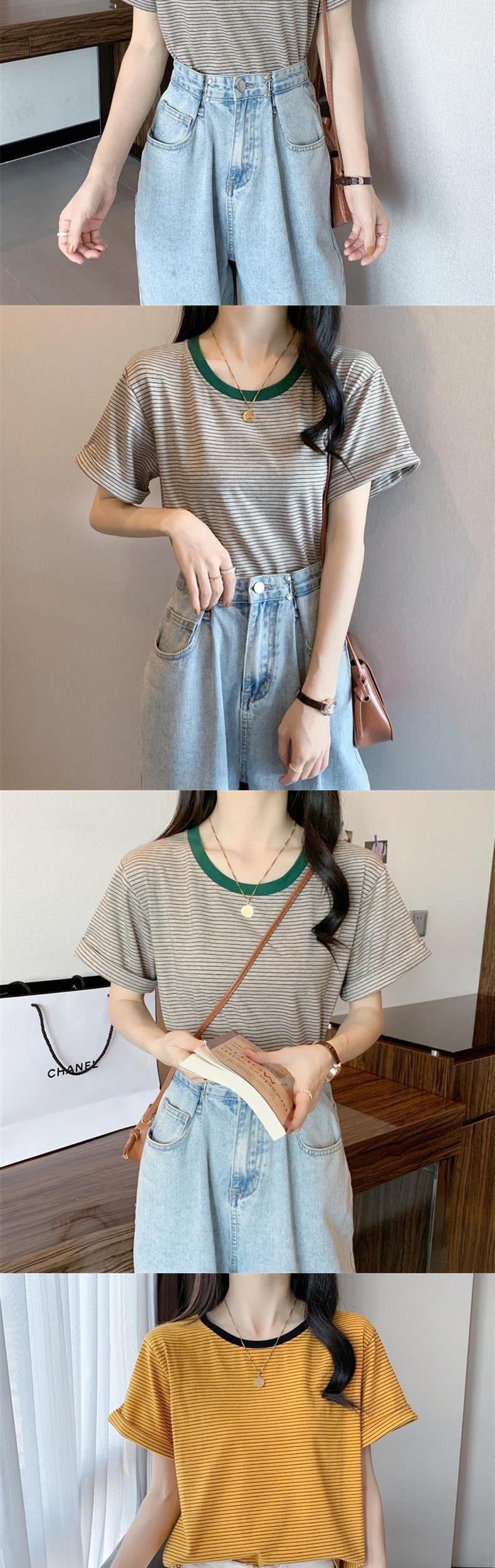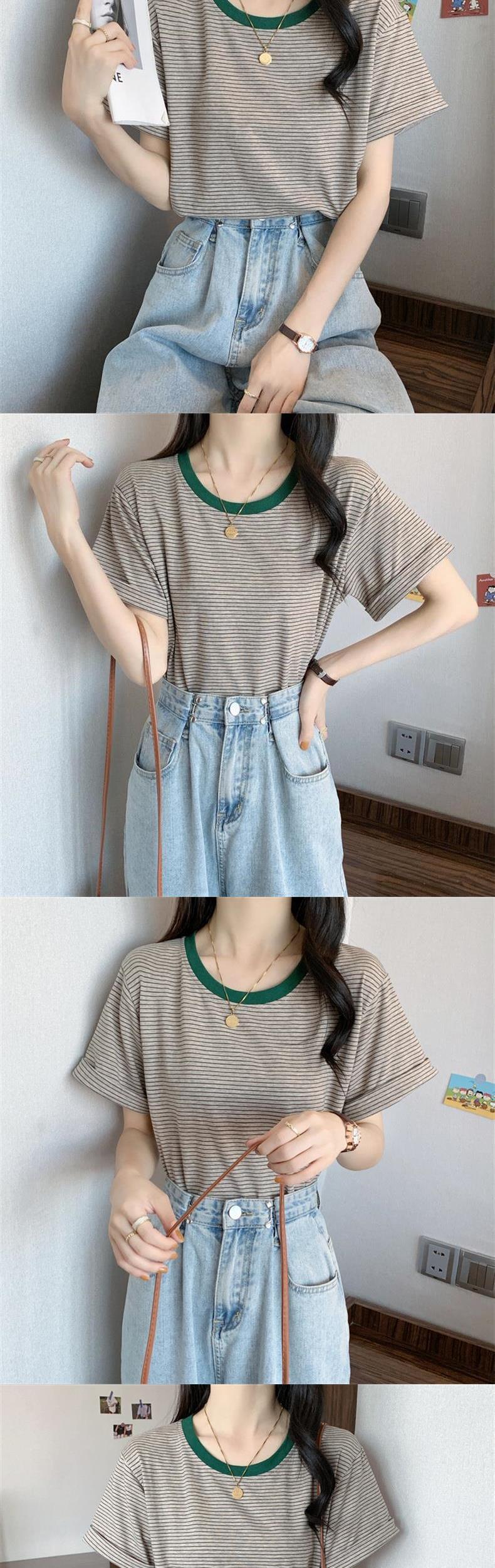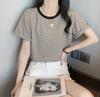 Camiseta a Rayas Manga Corta Ropa de Verano para Mujer 2025 Nueva Cuello Redondo Holgada Estilo Ins Chic Sencilla Top de Estudiante