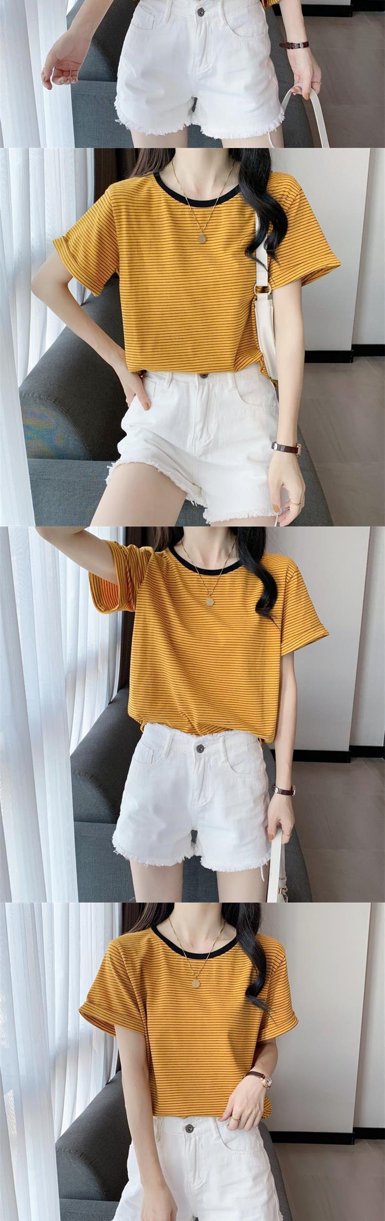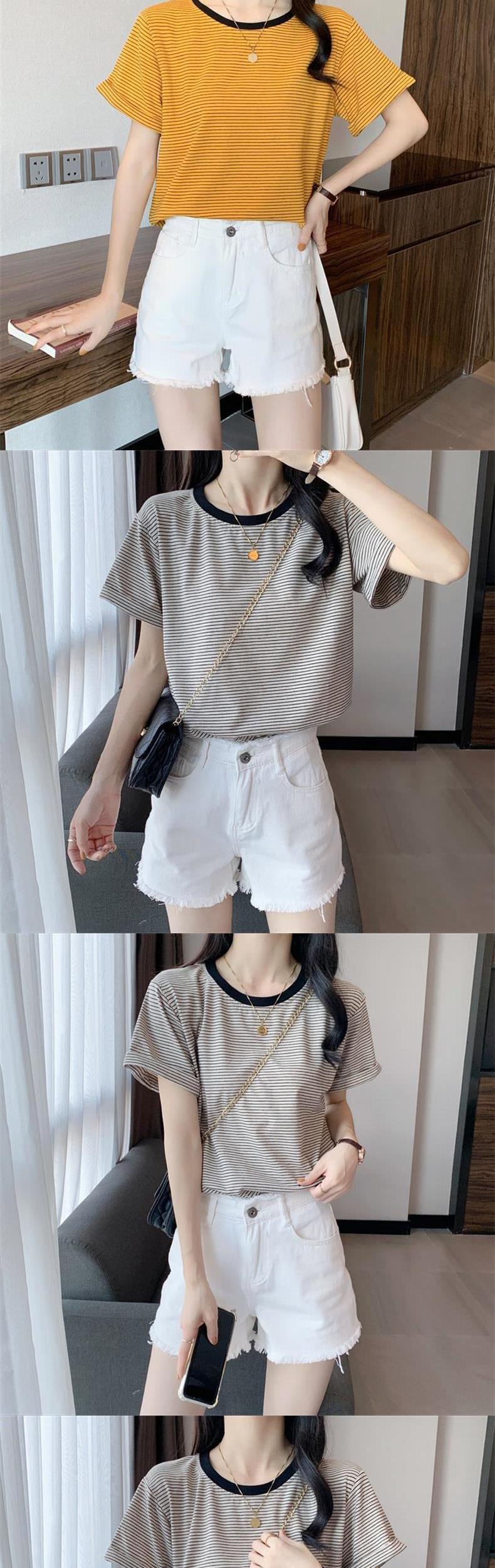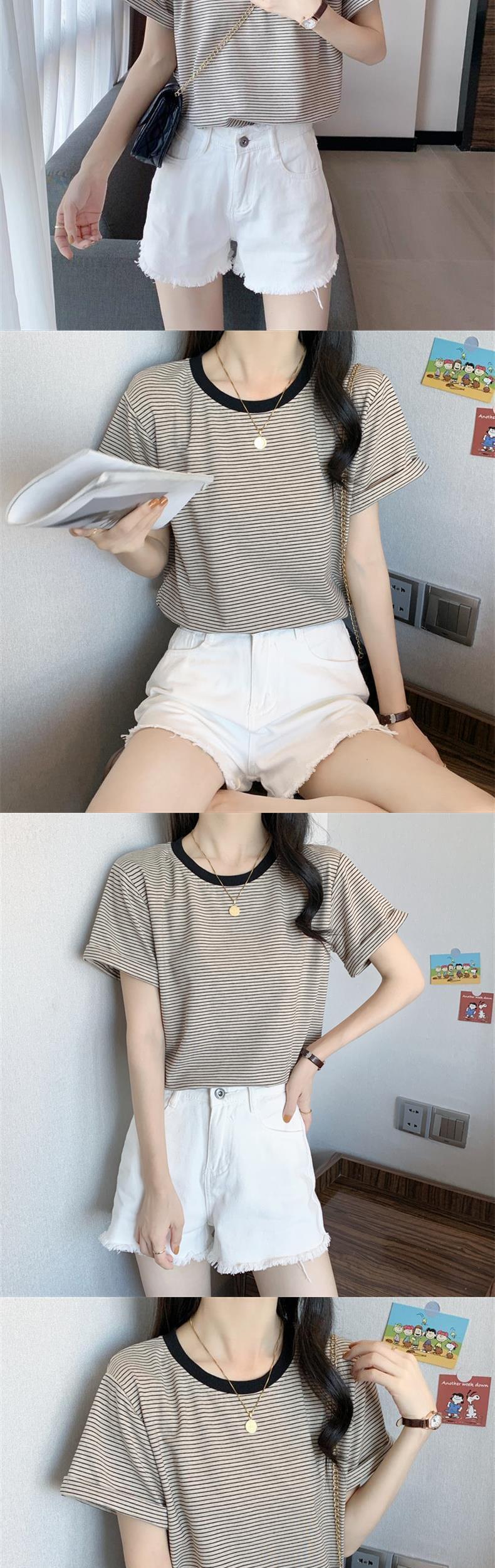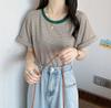 Camiseta a Rayas Manga Corta Ropa de Verano para Mujer 2025 Nueva Cuello Redondo Holgada Estilo Ins Chic Sencilla Top de Estudiante
