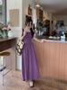 Vestido largo elegante de color liso, plisado, sencillo y sin mangas, estilo vacaciones francés, con falda de tirantes, para mujer.