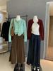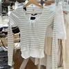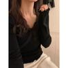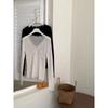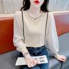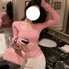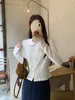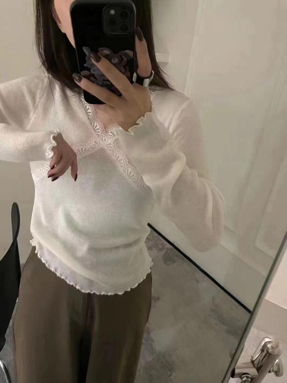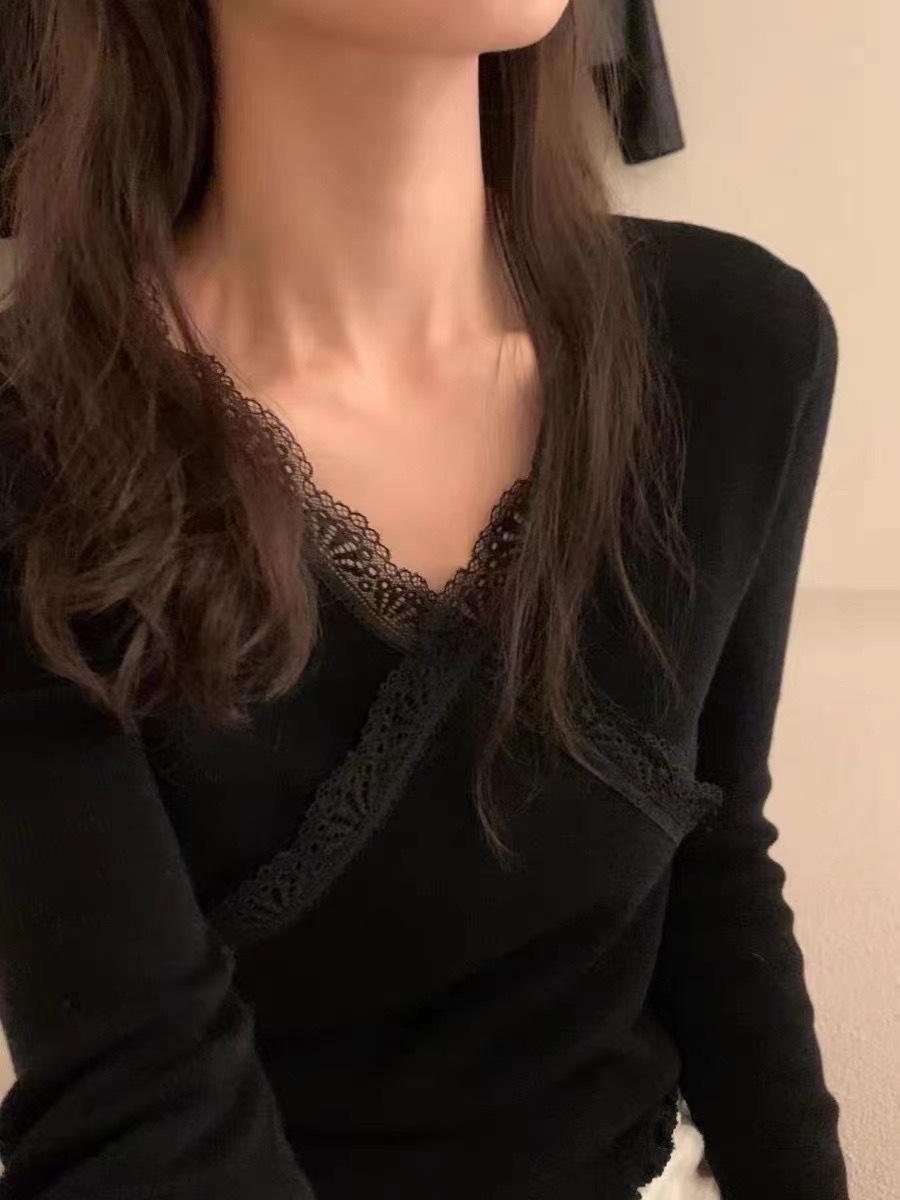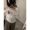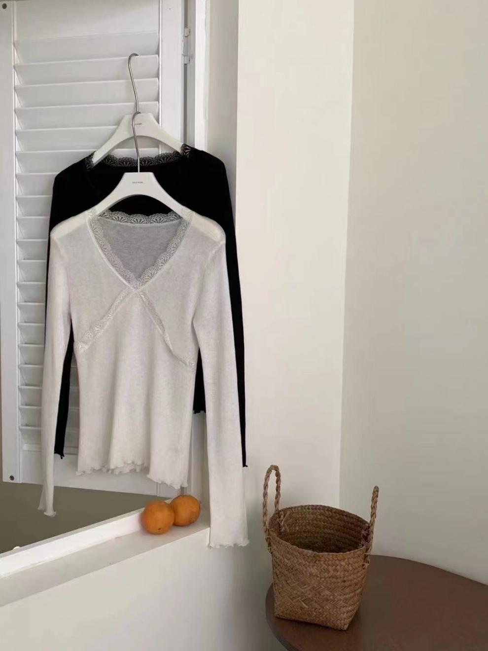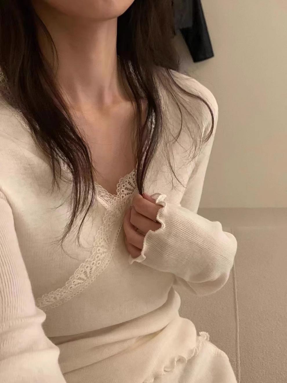 Coreano 2023 otoño camisa de fondo de punto con cuello de encaje y orejas de madera para mujer