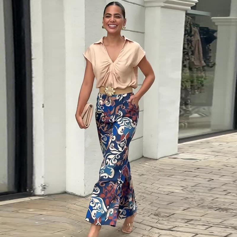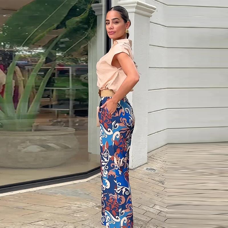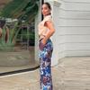 Traje largo estampado informal de estilo superior ajustado plisado de color sólido transfronterizo de Amazon europeo y americano nuevo de verano de 2024