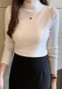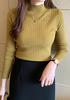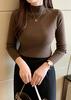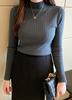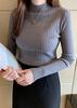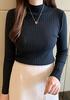 Camiseta básica de cuello medio alto para mujer con estilo nuevo de primavera, otoño e invierno, suéter corto estilo occidental, top de suéter de manga larga