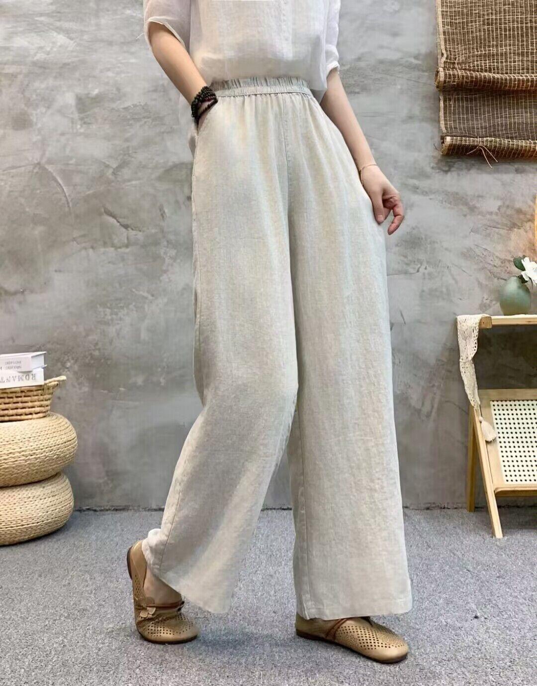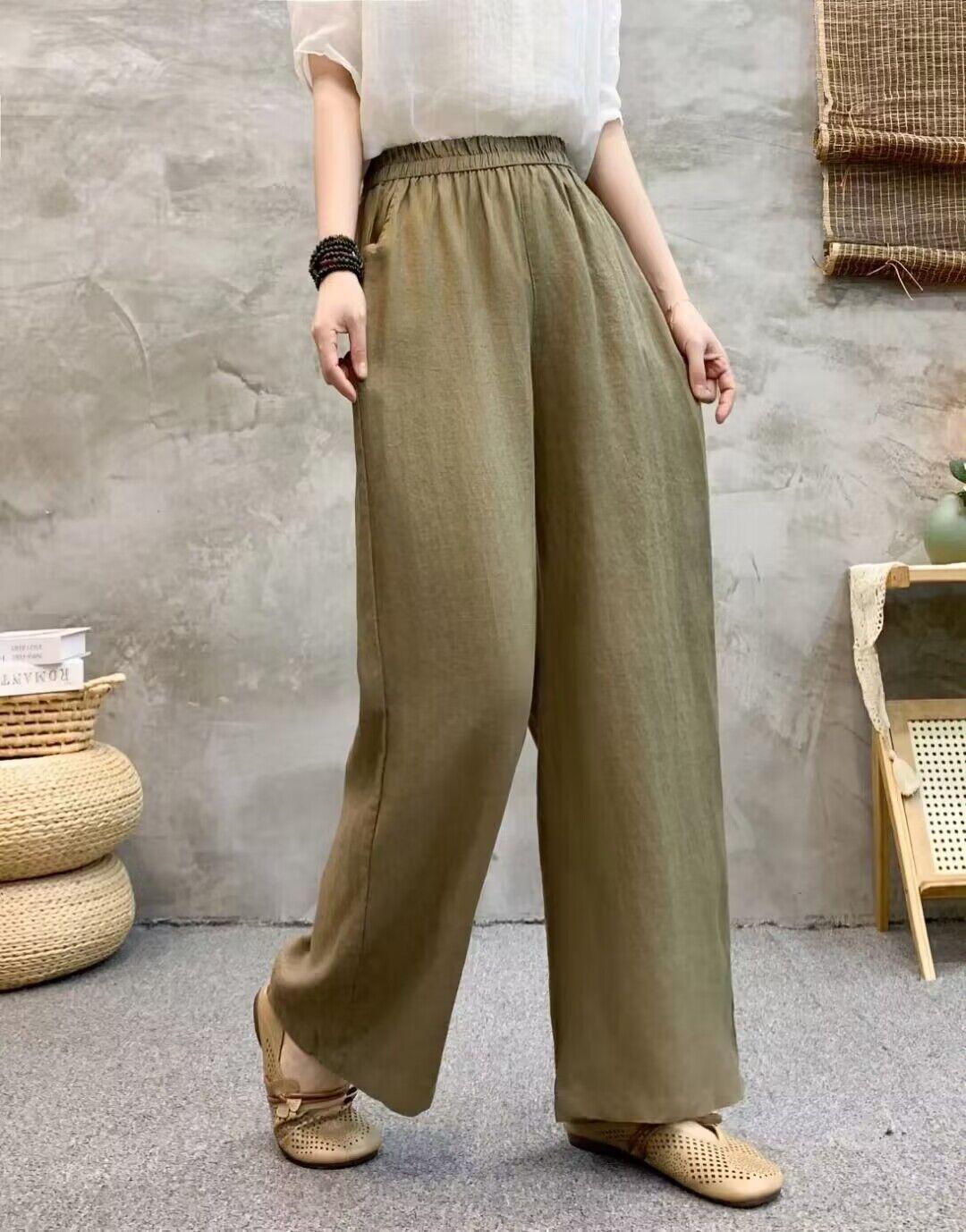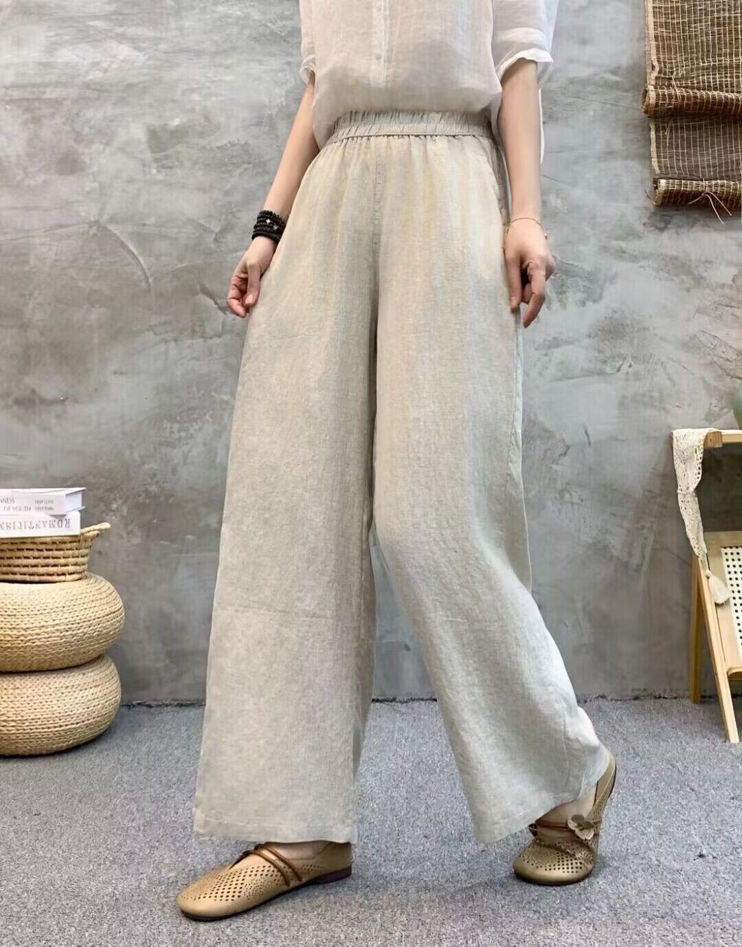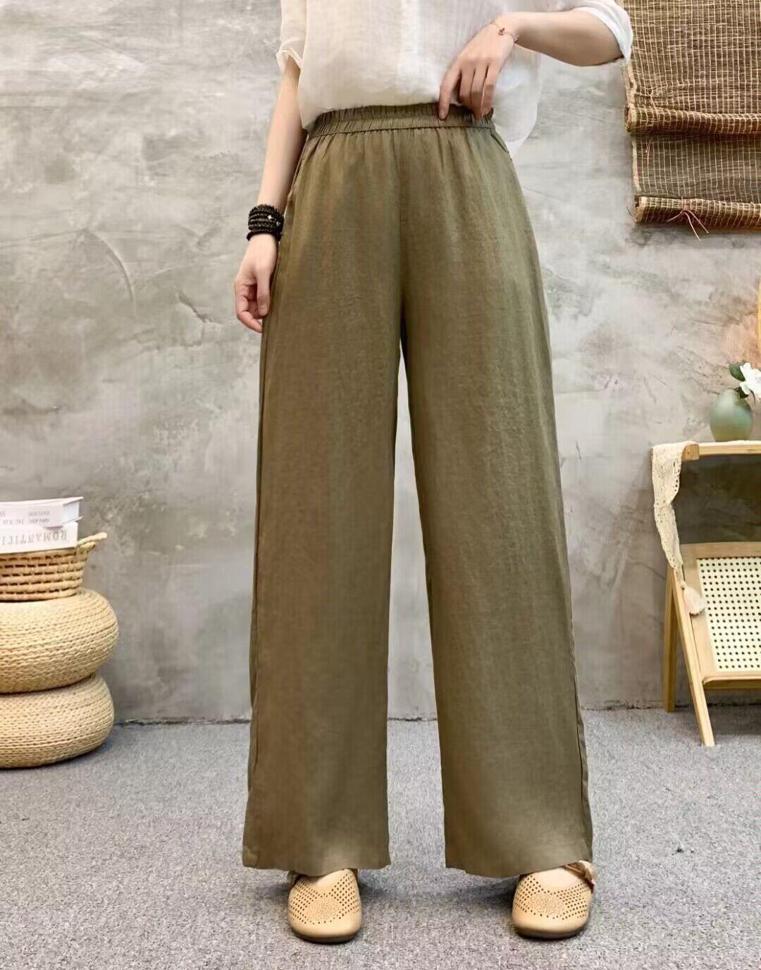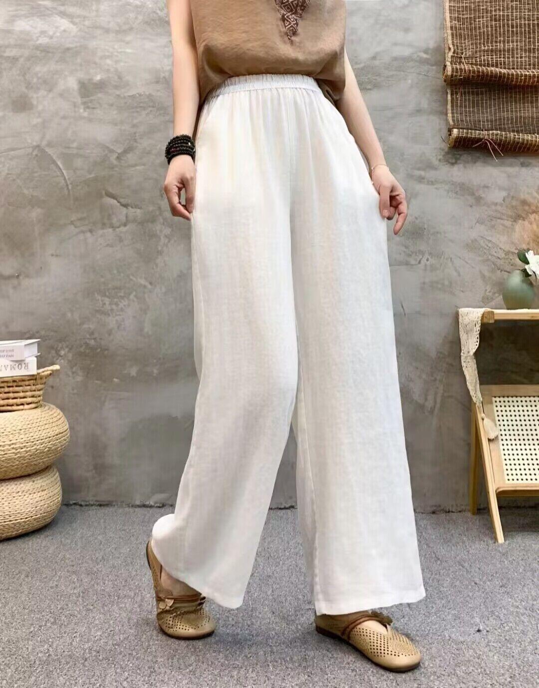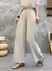 Pantalones rectos de lino fino para mujer, estilo retro, artísticos, holgados, adelgazantes, de cintura holgada, informales, de pierna ancha, novedad de verano de 2024