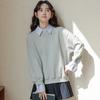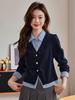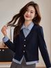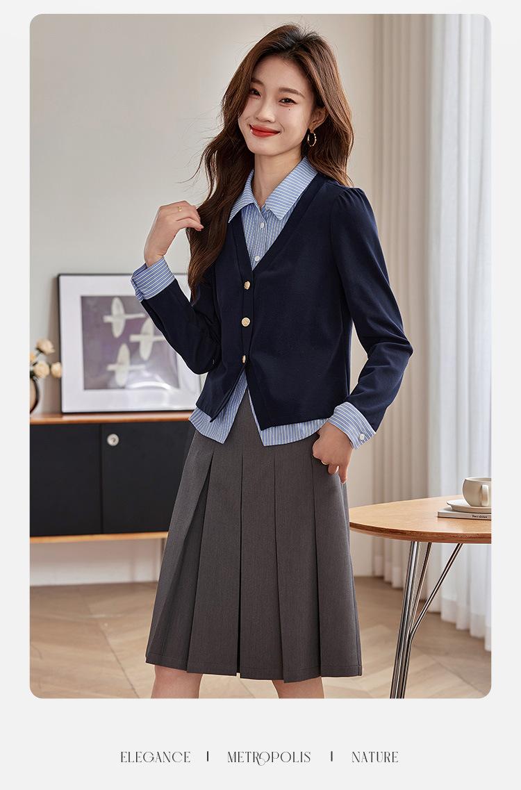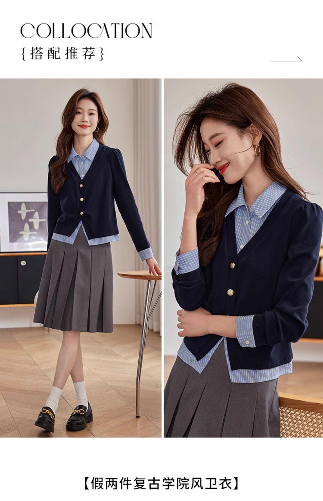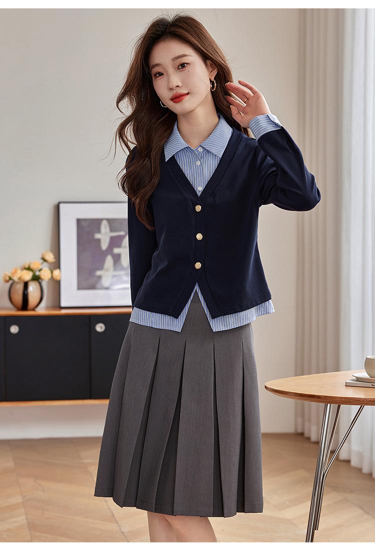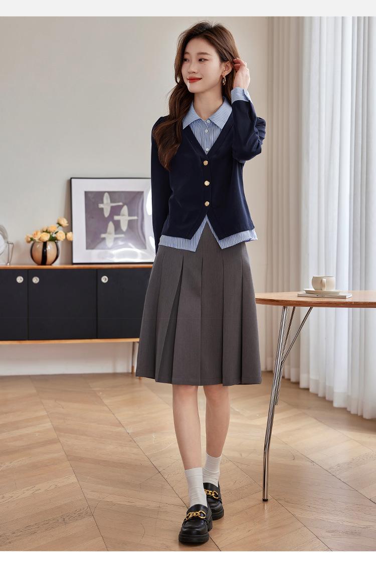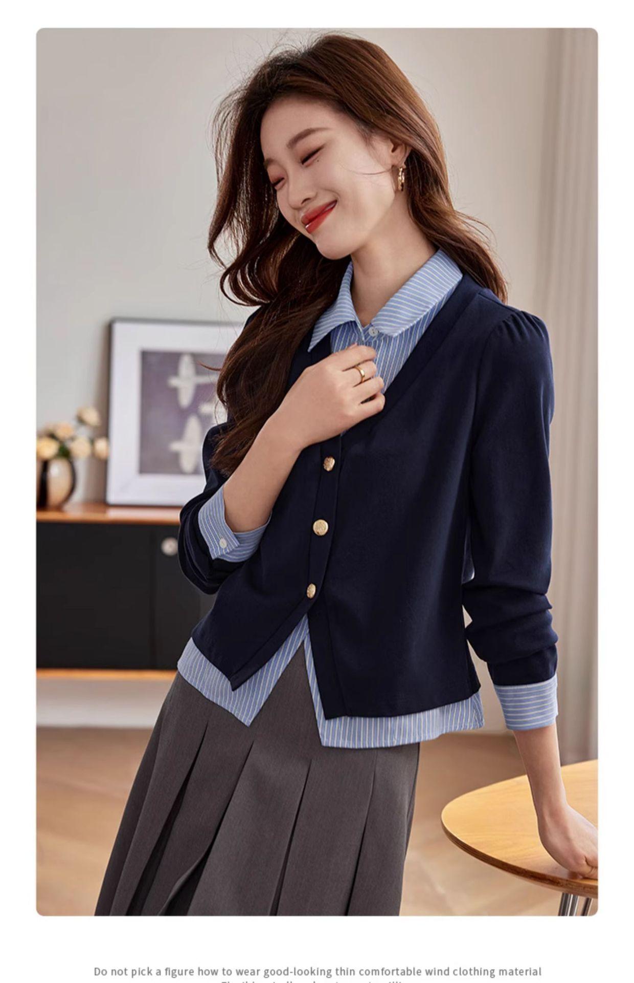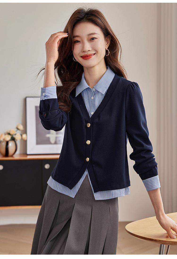Suéter de mujer con cuello de camisa POLO a rayas de dos piezas falso estilo preppy apilado Primavera 2024 Nuevo