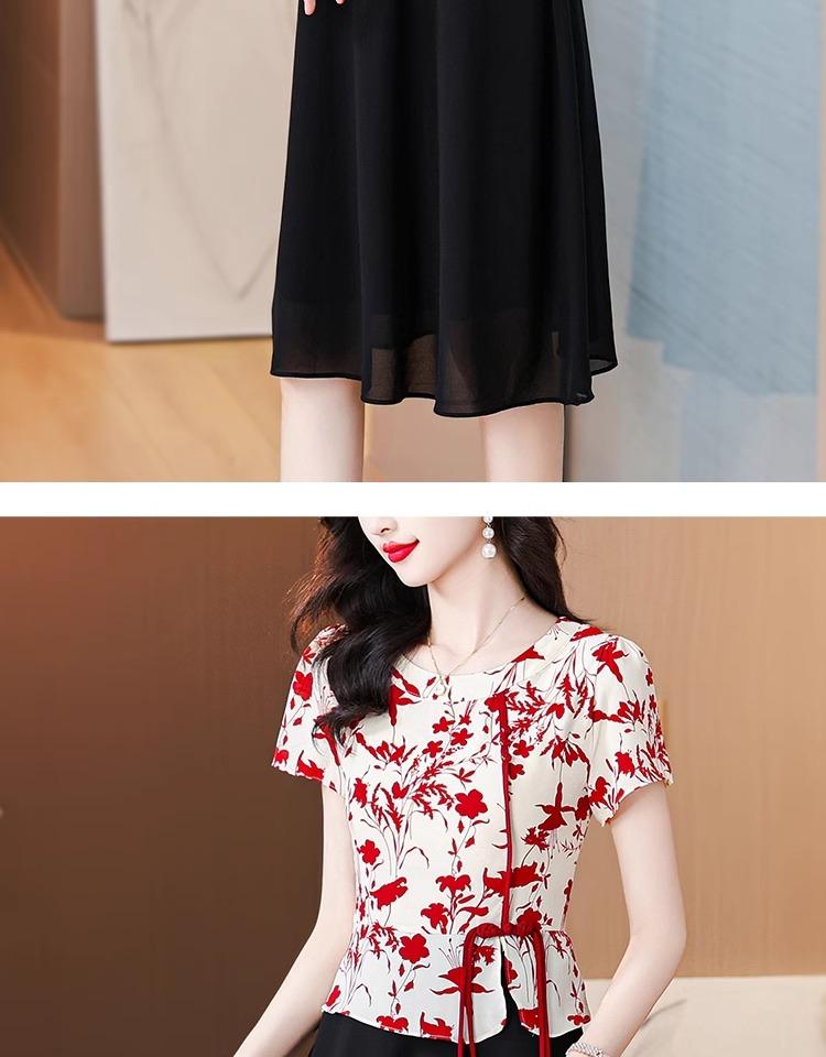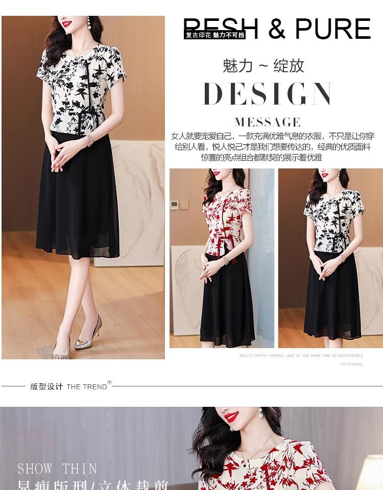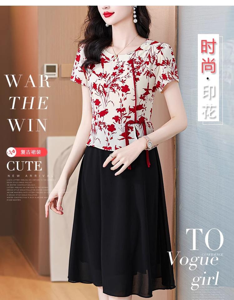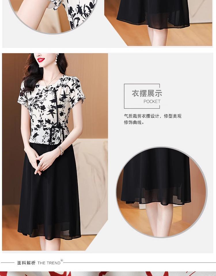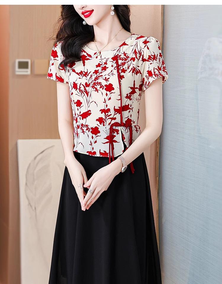Vestido de dos piezas de seda falsa de Hangzhou para mujer, verano 2024, de seda morera, de manga corta, estilo nacional, estilo a la moda.