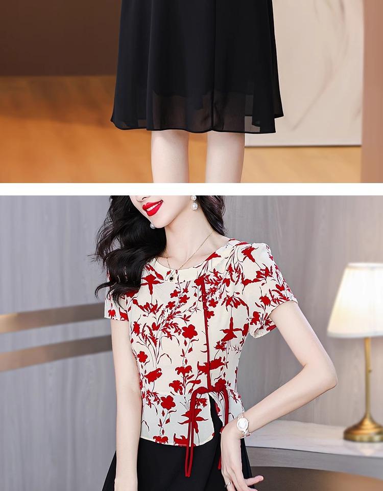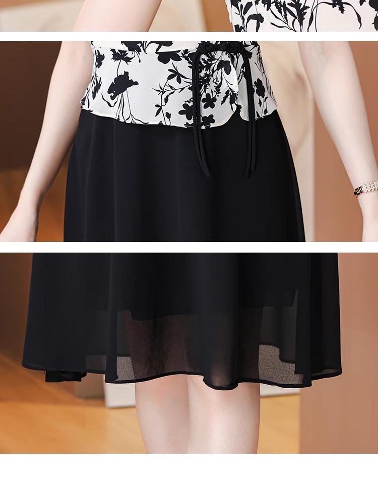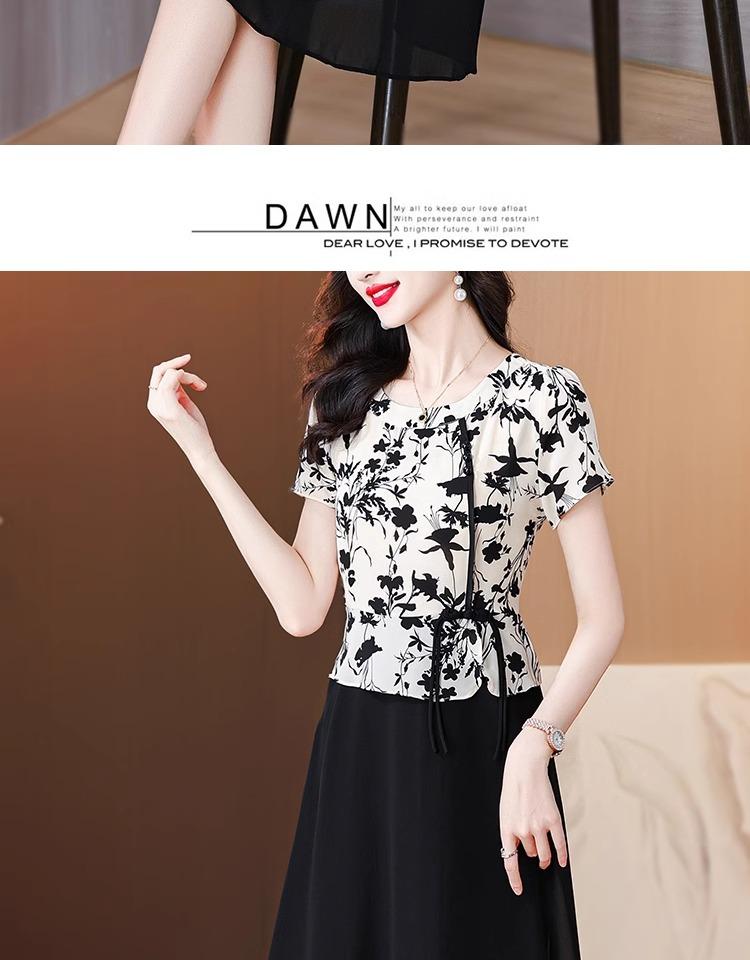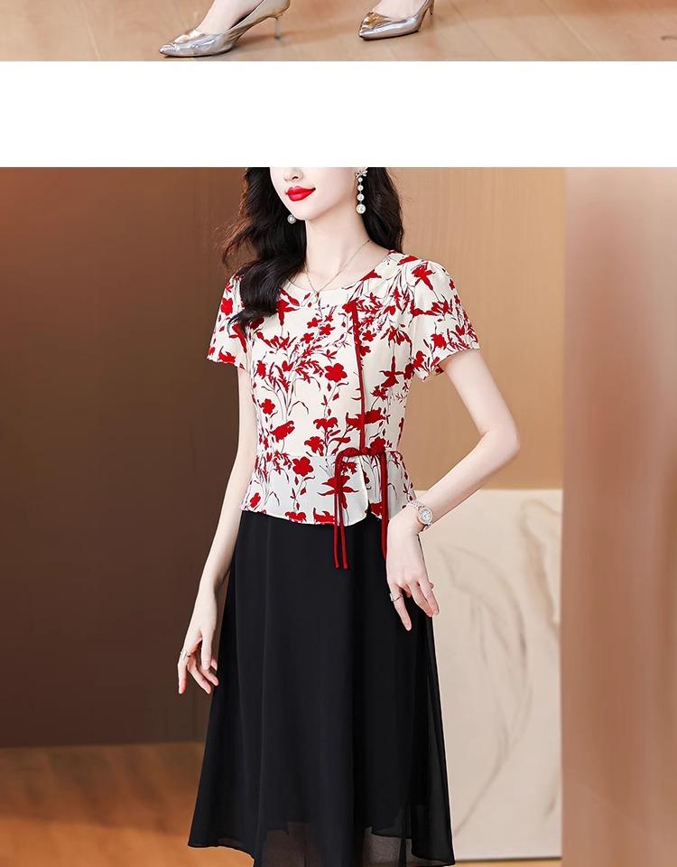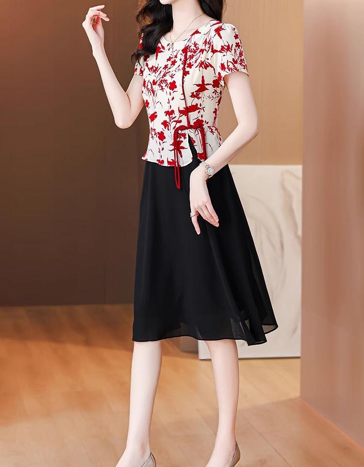 Vestido de dos piezas de seda falsa de Hangzhou para mujer, verano 2024, de seda morera, de manga corta, estilo nacional, estilo a la moda.
