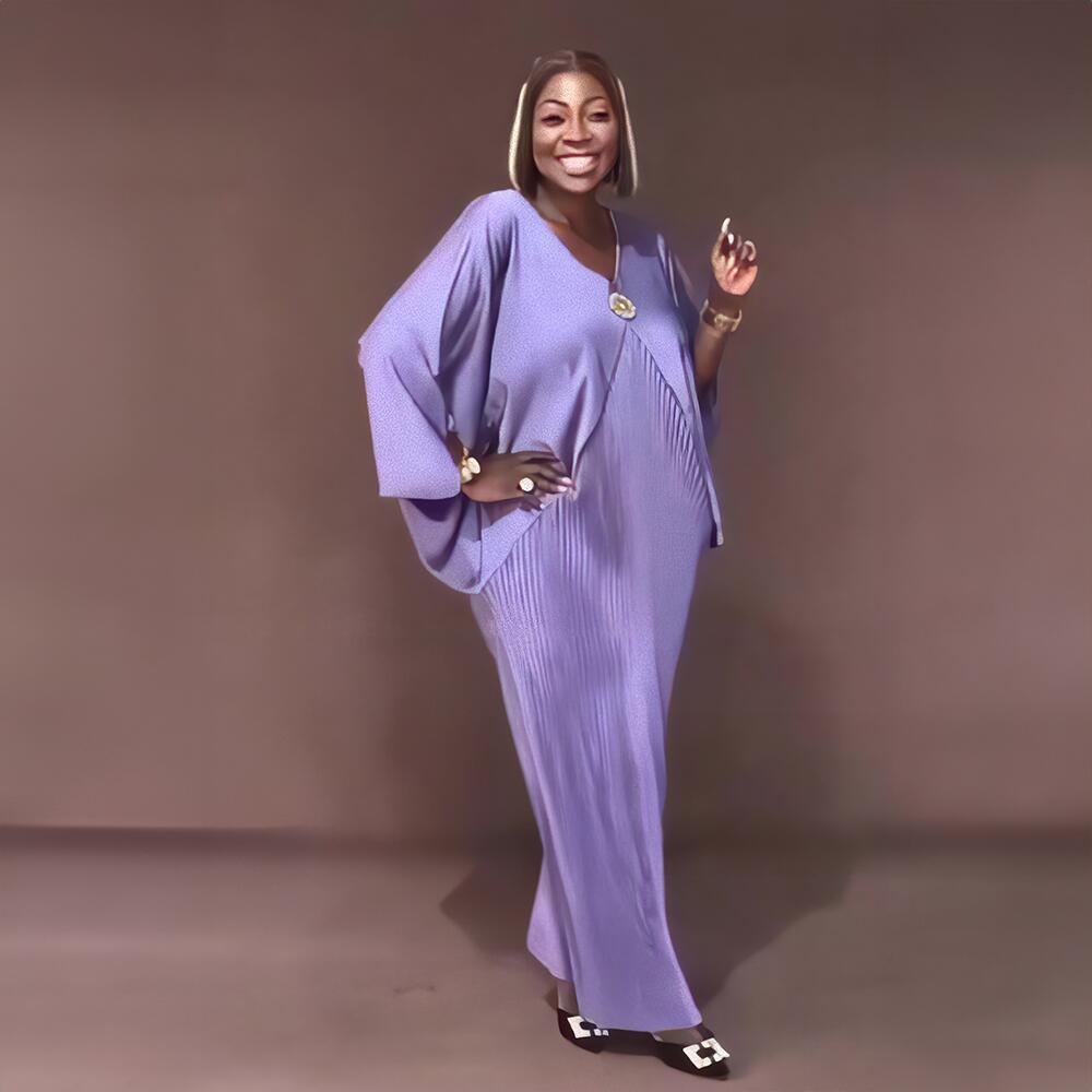 Vestido de Moda Africano BUBU Estilo Turco Plisado Turbante Corsage Vestido de Talla Grande