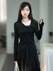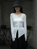 Camiseta de manga larga con protección solar para mujer, de Yohji Yamamoto, con cuello inclinado, corte entallado y base de punto suave, diseño irregular, primavera y verano